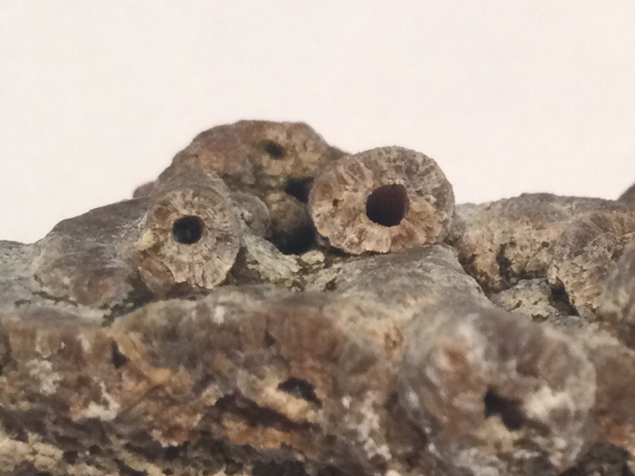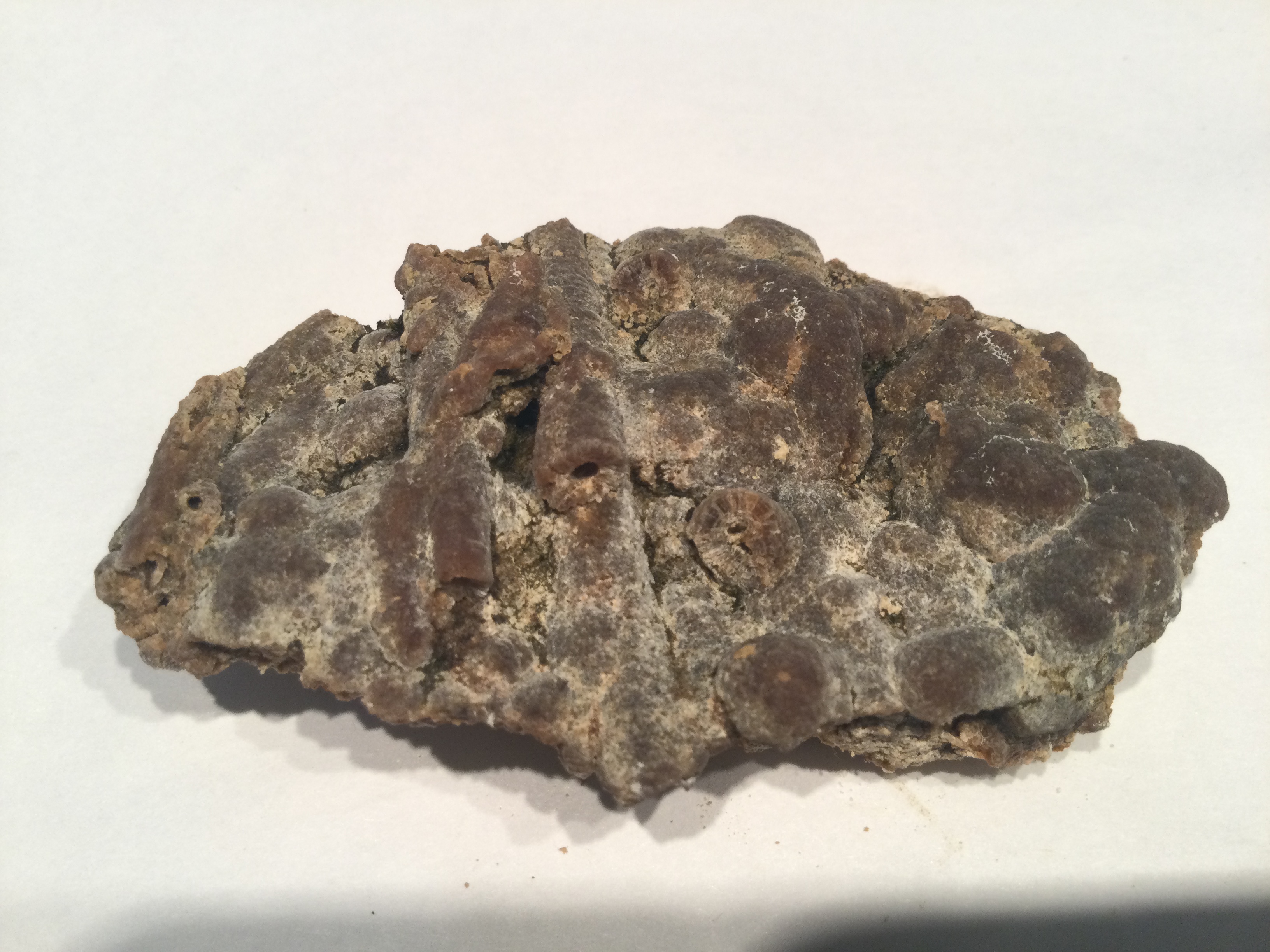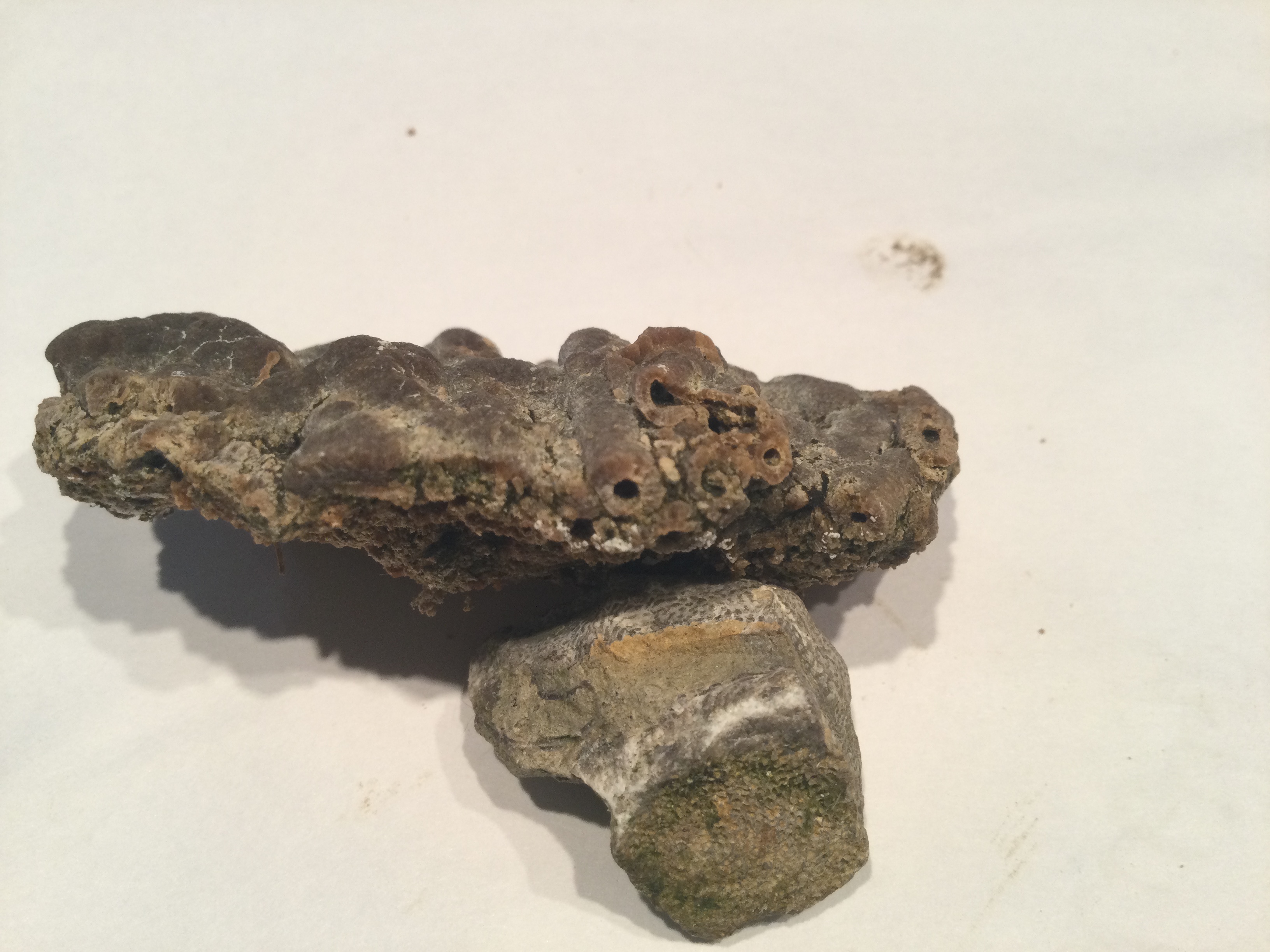 Maar een stukje dat af was gebroken zuiver gemaakt. Daar zit toch wel wat in. Zijn dat geen crinoide steeltjes?