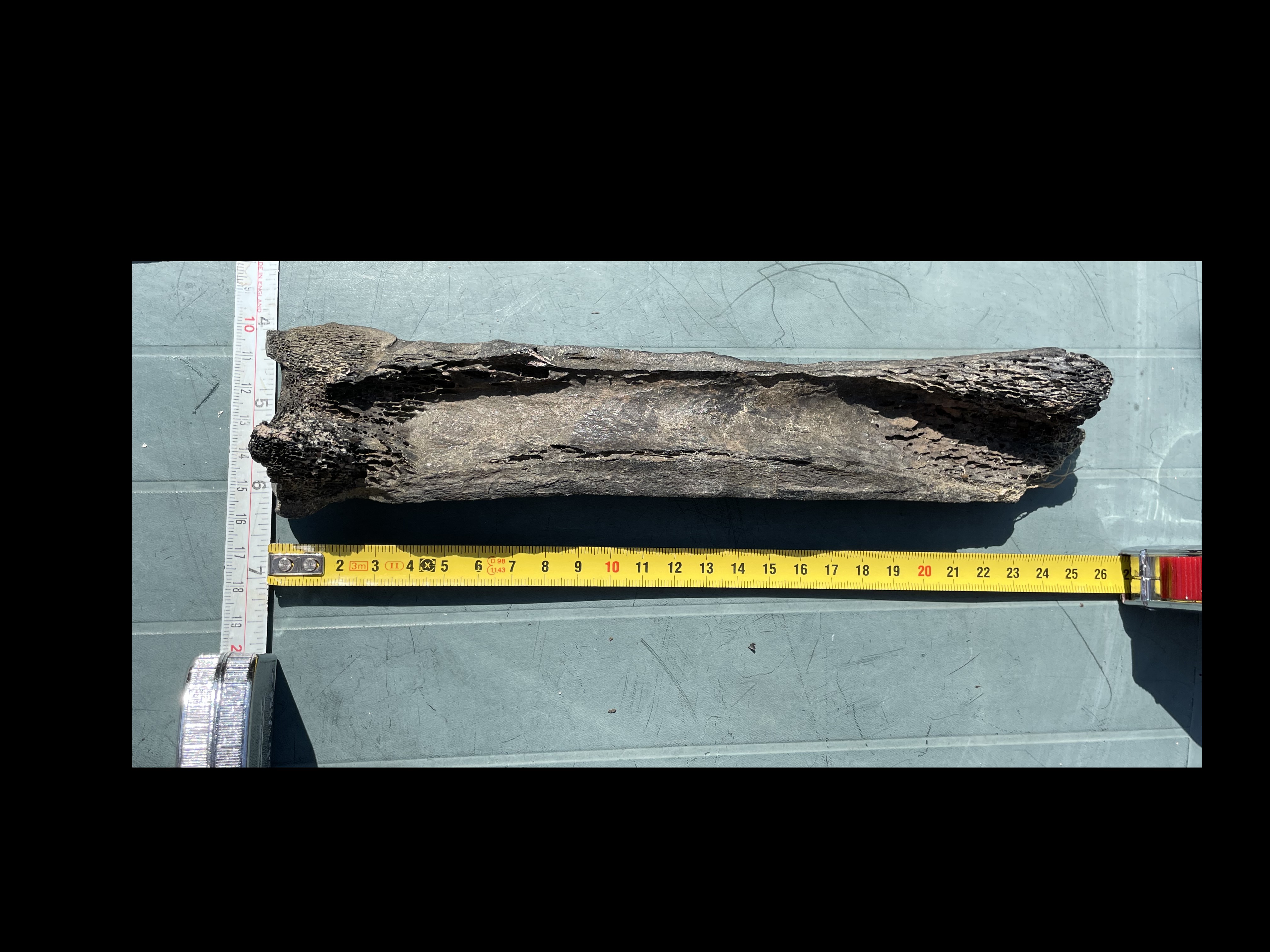 Bijgaand enkele foto's van een groot, gespleten bot dat op 22 juli is gevonden op Schiermonnikoog. Heel zwart en zwaar.