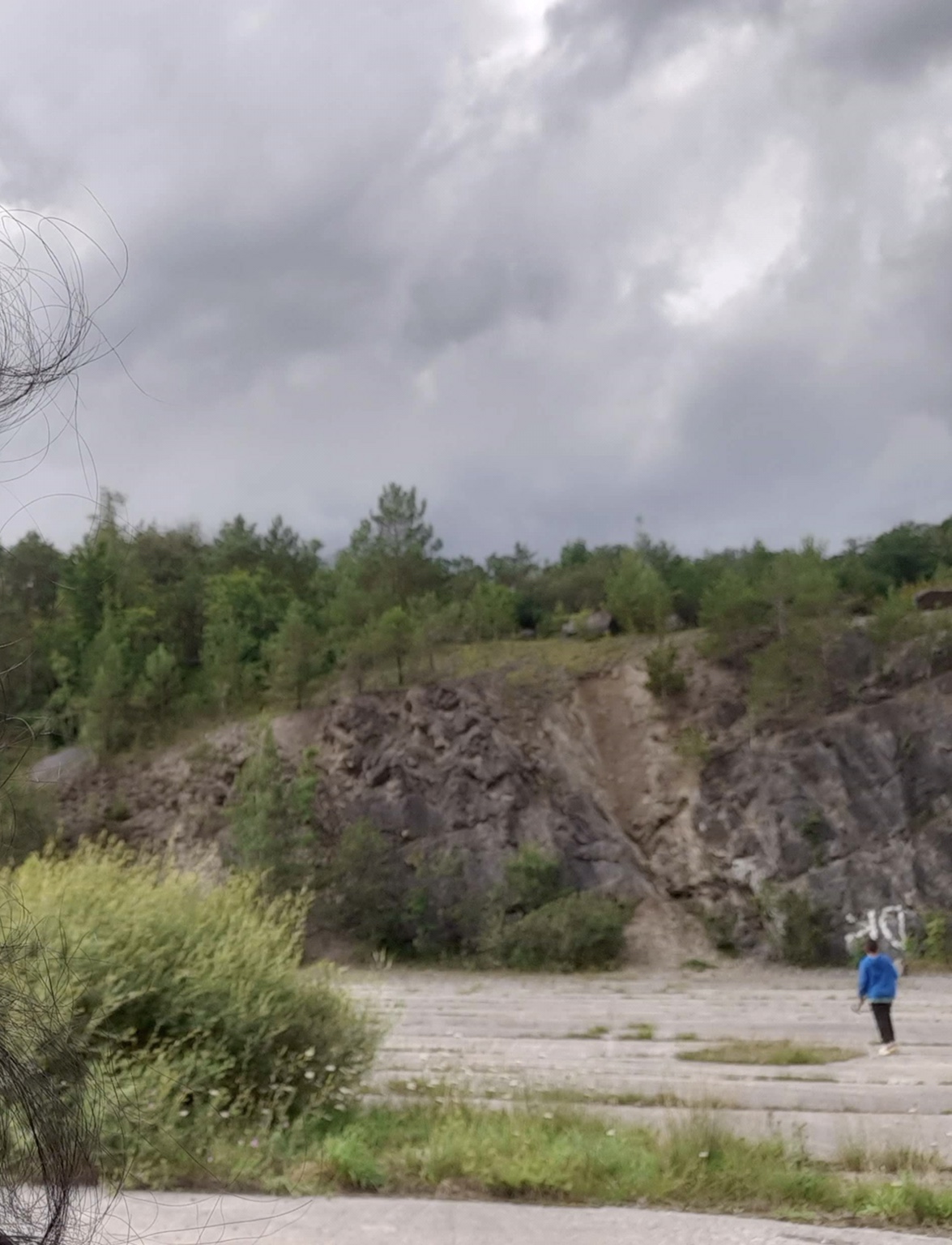 Als je in eerste instantie aankomt wordt je al overrompeld door de massiviteit van het gesteente. Wat een krachten om die lagen zo verticaal te schuiven. Voor je op de wand staat een grote OK in witte letters.(zo heb ik het toch geïnterpreteerd...) Je denkt dat je daar moet gaan zoeken omdat er ok staat. Maar in werkelijkheid denk ik dat deze wand al heel veel bezocht is en bovendien begint er begroeiing te komen. Niet zo ok dus.