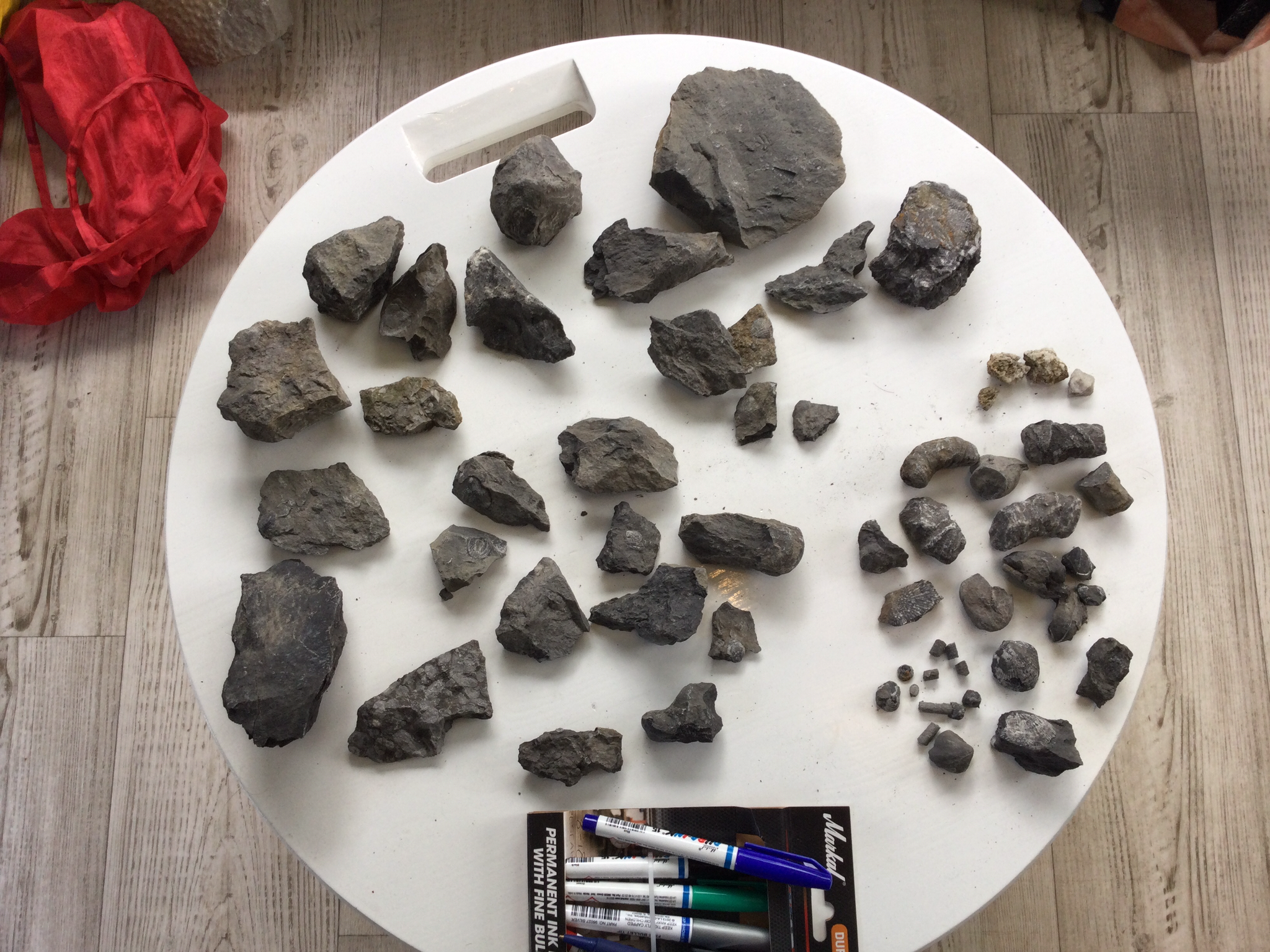 In Resteigne hebben we vooral crinoïde fragmenten, brachiopoden en fragmenten trilobieten gevonden. Ook wat koralen.