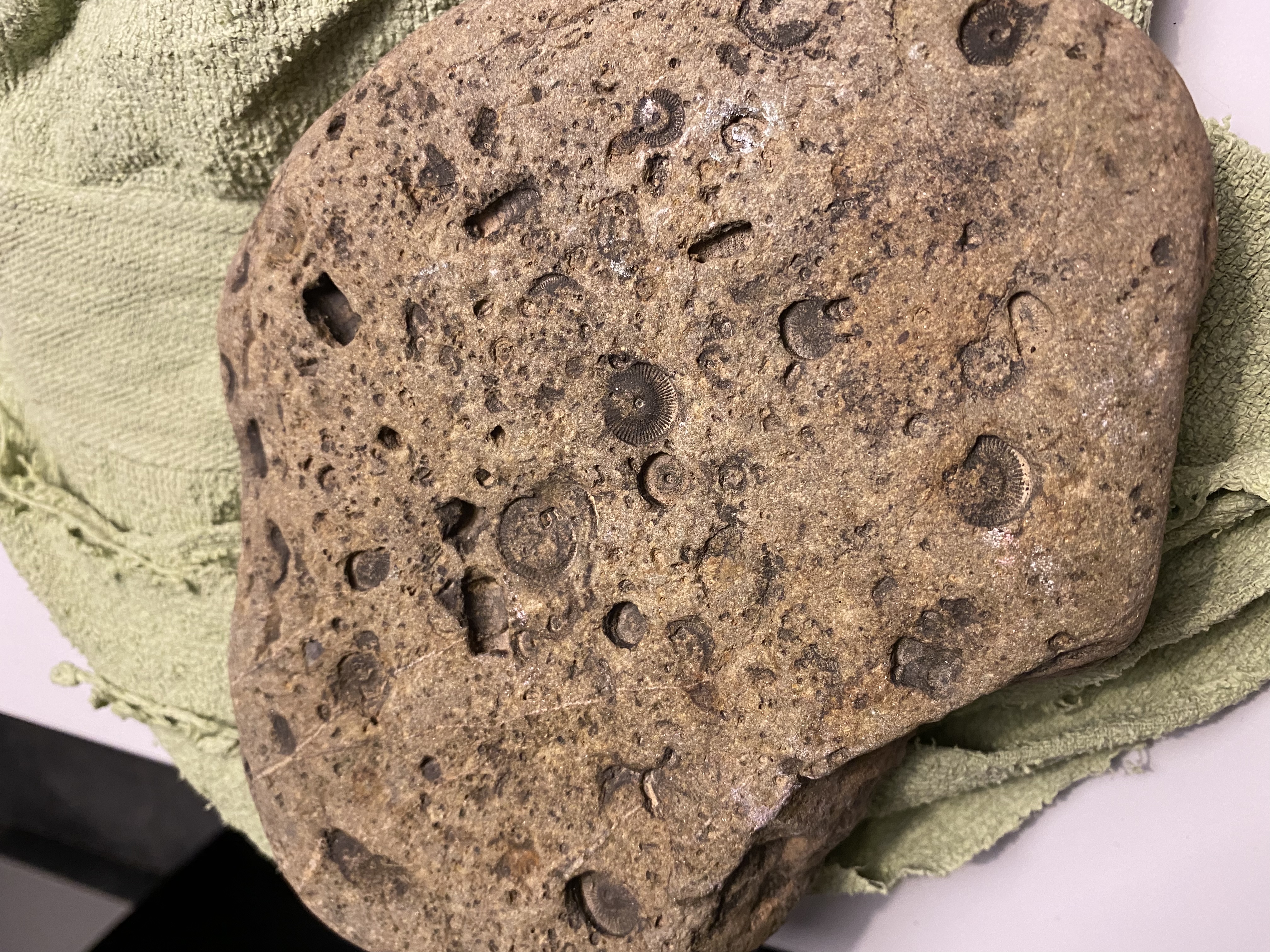 Ik ben nieuw hier en een leek qua fossielenkennis. Ik heb er echter wel interesse in. Vandaag tijdens het wandelen vond ik dit fossiel. Wie kan dit determineren? Het is een stuk van 10 op 10 cm.