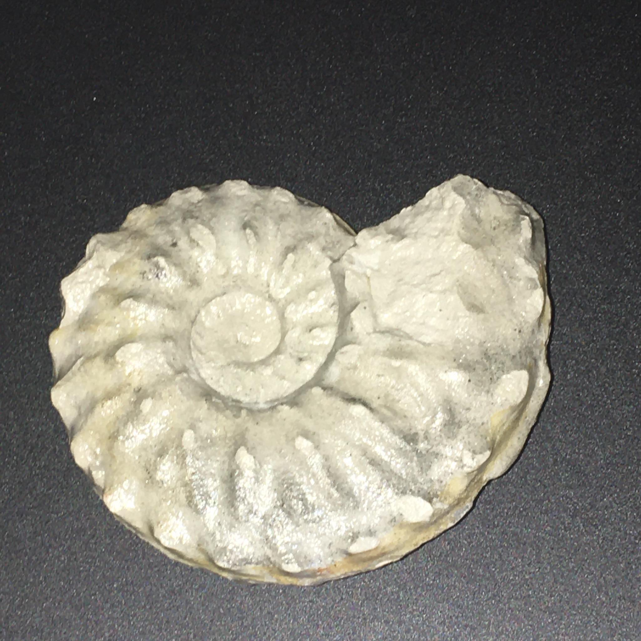 ik heb deze twee fossielen gevonden te Cap Blanc Nez, en ik vroeg me af of jullie me zouden kunnen helpen met het identificeren van deze twee fossielen, dus welke ammoniet en welke nautilus ik heb.