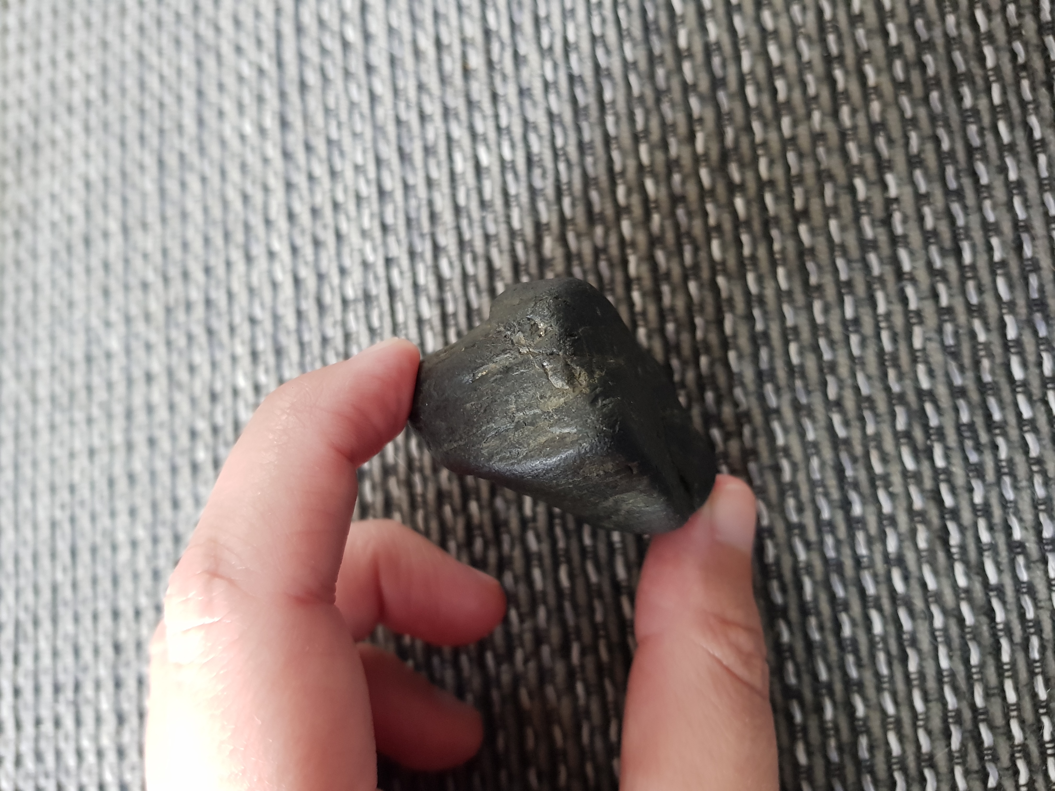 Ik heb ook nog eens een ander stukje gevonden, ook kunststof. Ik denk dat dat een gewichtje is van een net. Dat is wel zwaar.