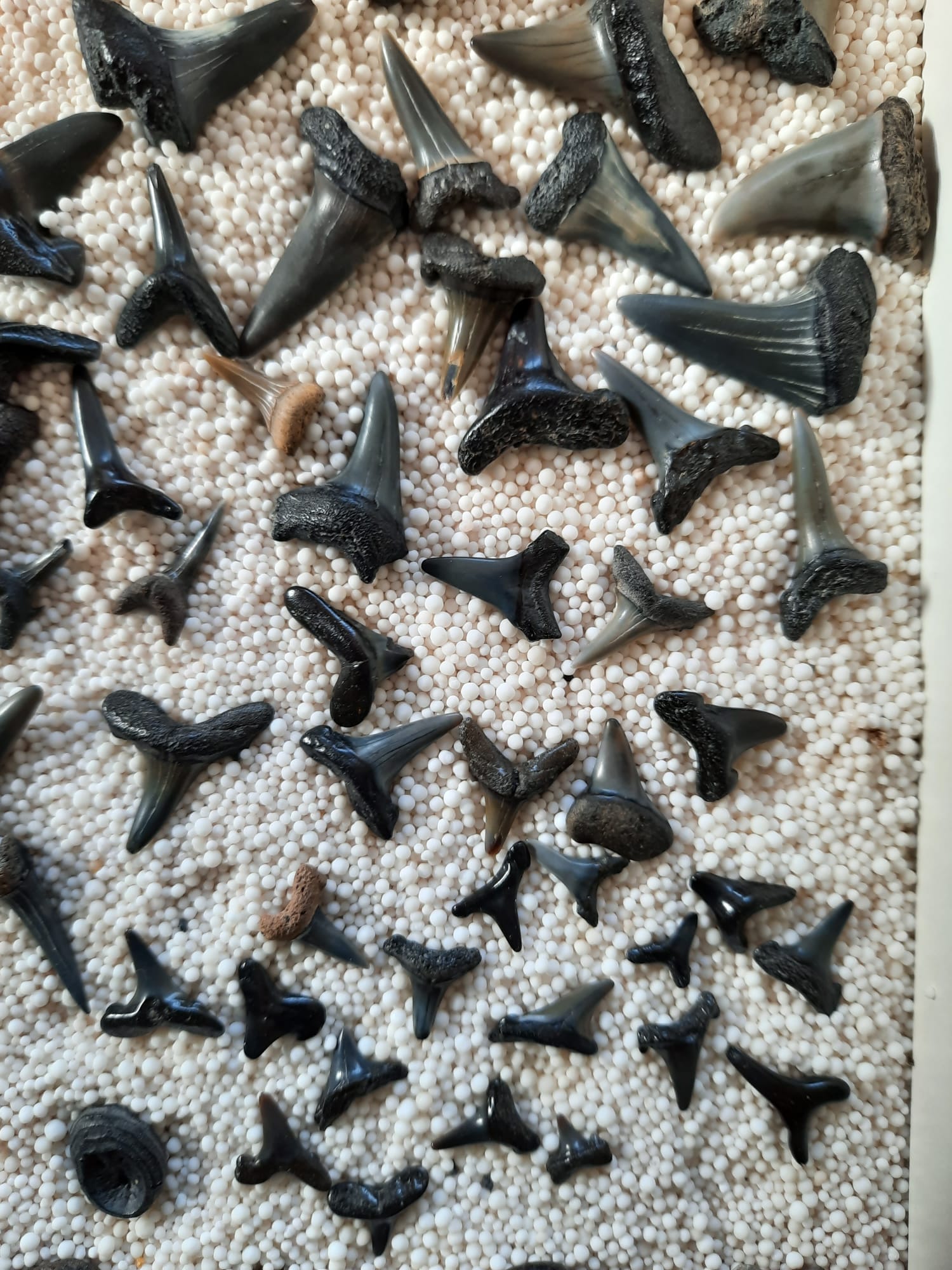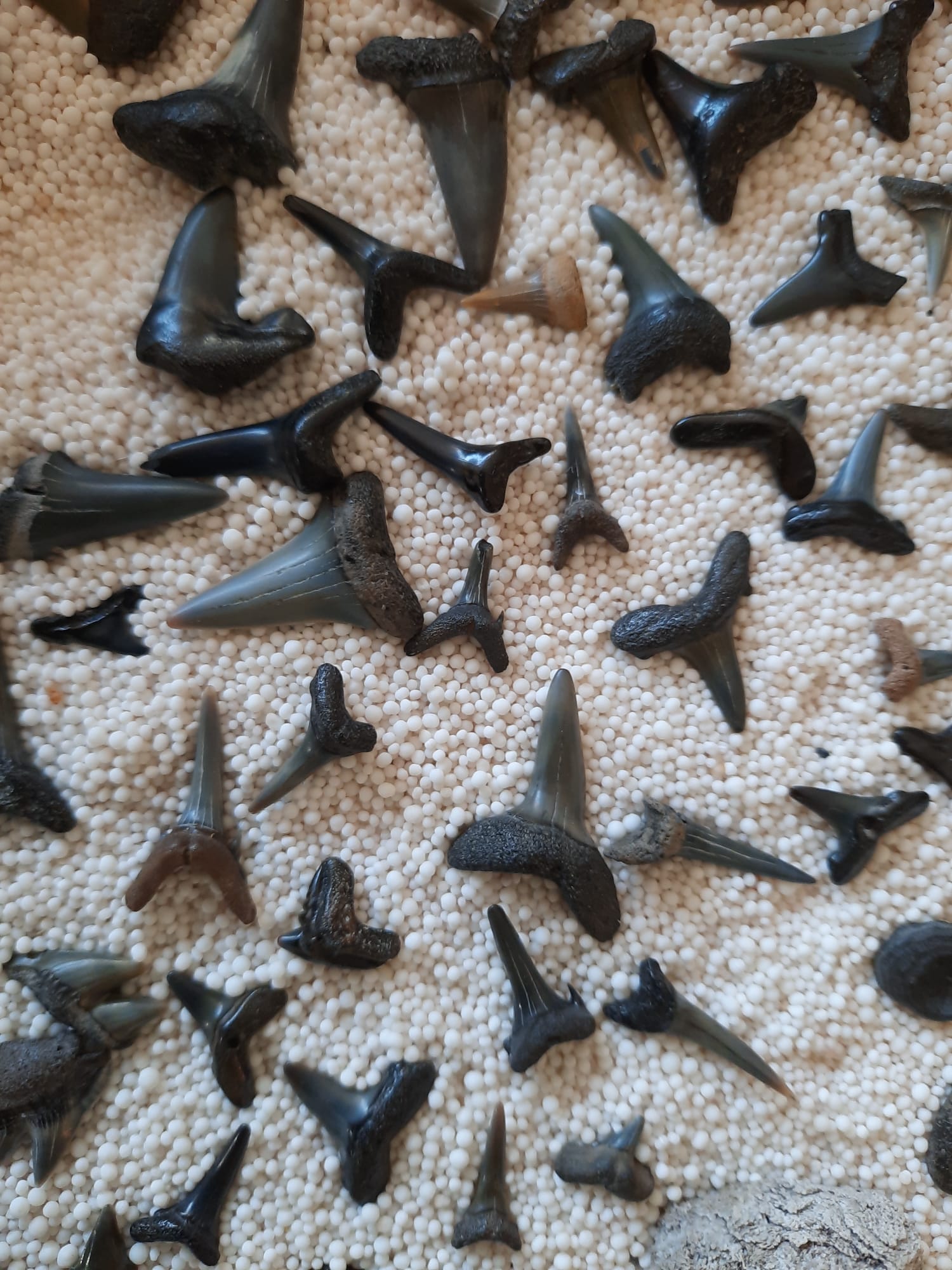 De tandjes die ik heb zijn niet gedetermineerd, waardoor ik niet weet of er bijzondere of zeldzame exemplaren tussen zitten. Het is mijn bedoeling om één of twee van dergelijke tandjes uit mijn 'collectie te ruilen tegen een enkele grote tand. Vorige week zijn er nog 2 tandjes bijgekomen, afkomstig van de Kaloot.