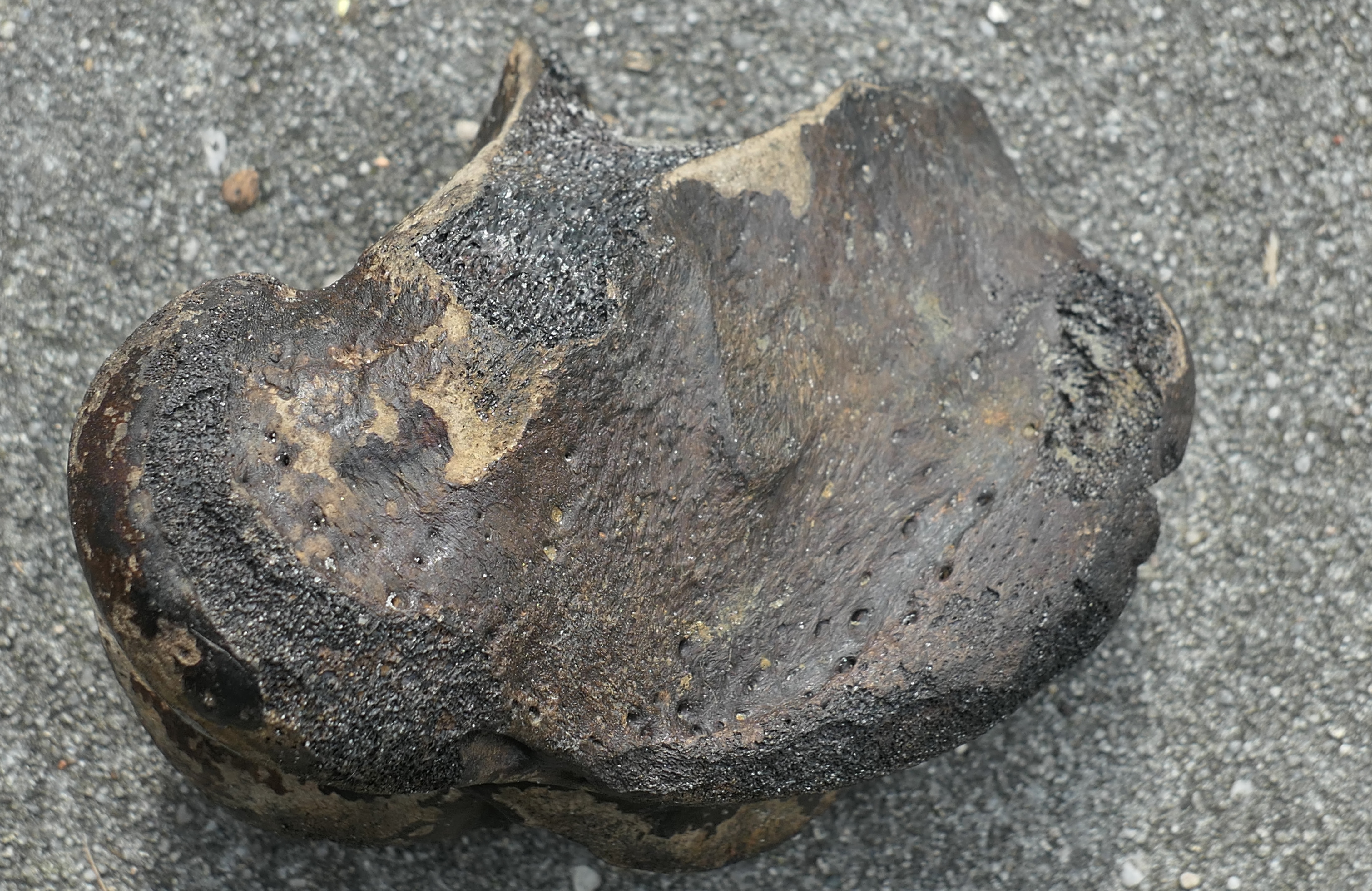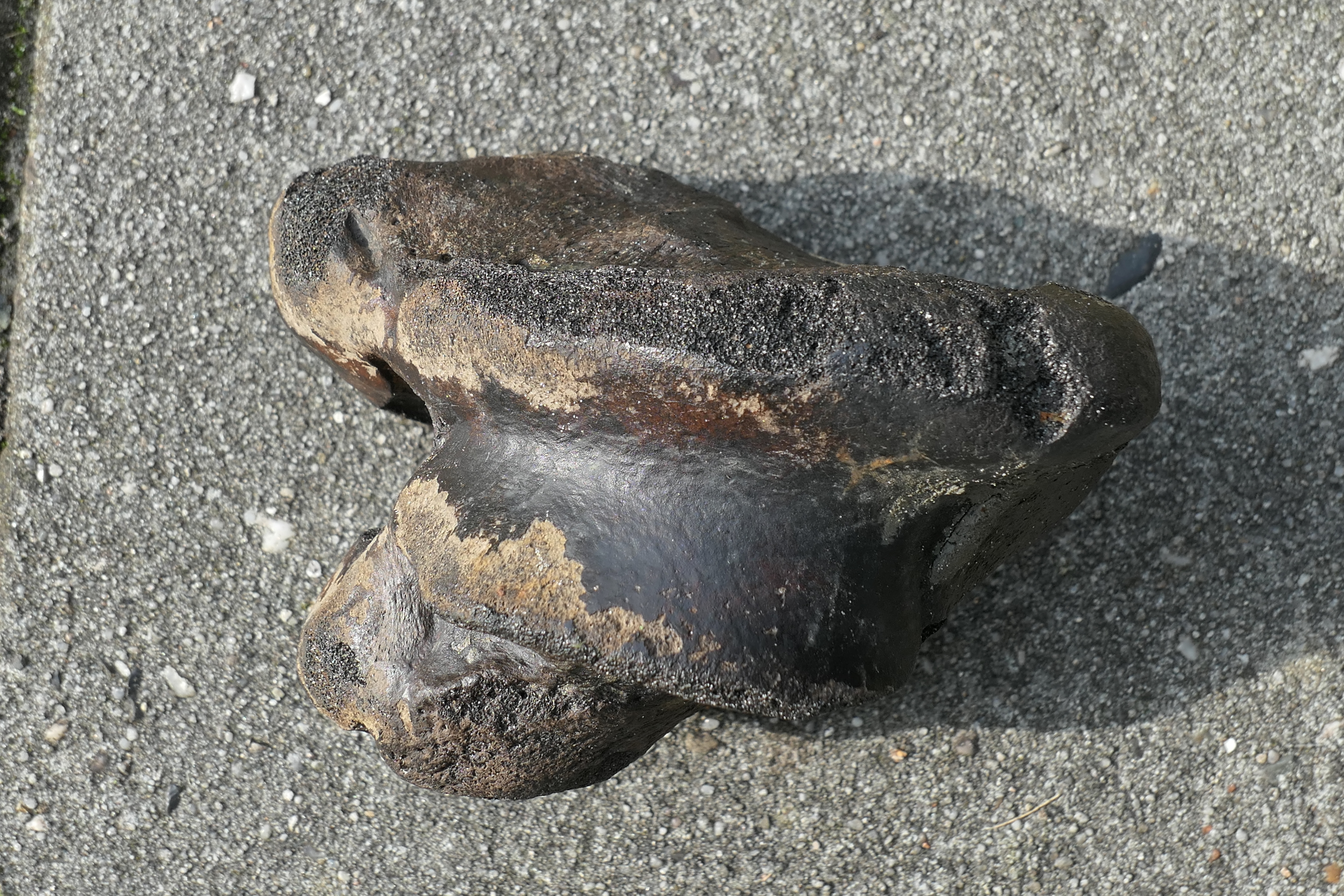 Dit grote botstuk is vandaag gevonden op het strand van Schiermonnikoog. Zelf denk ik aan een deel van het linker dijbeen van een (oud?) paard.