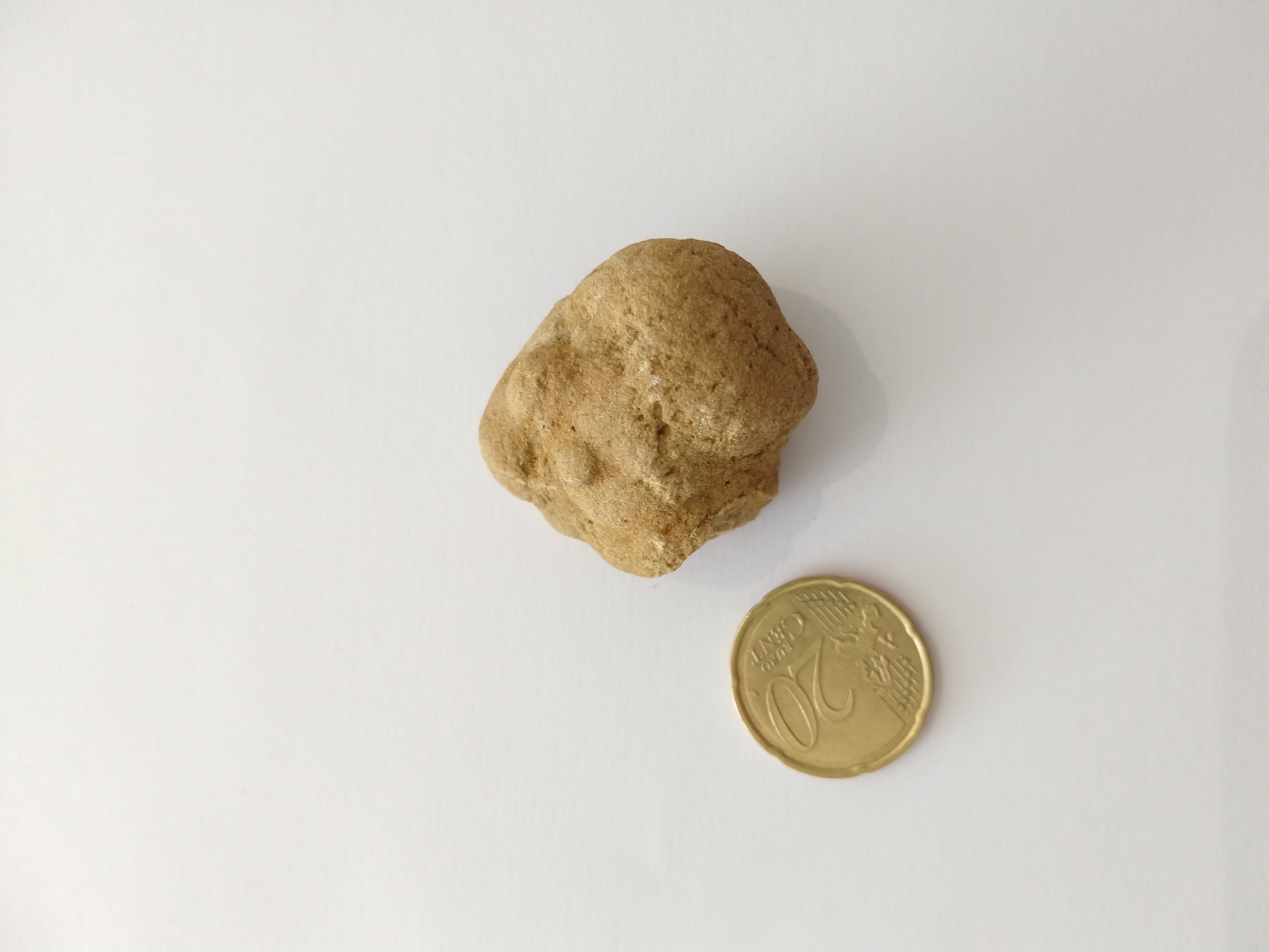 3) Deze vreemde steen lijkt op een bot? Deze is gevonden langs een mergelklif. De witte kleur is nog zand/mergel en de bruine kleur is versteend. (Foto 4 & 5)