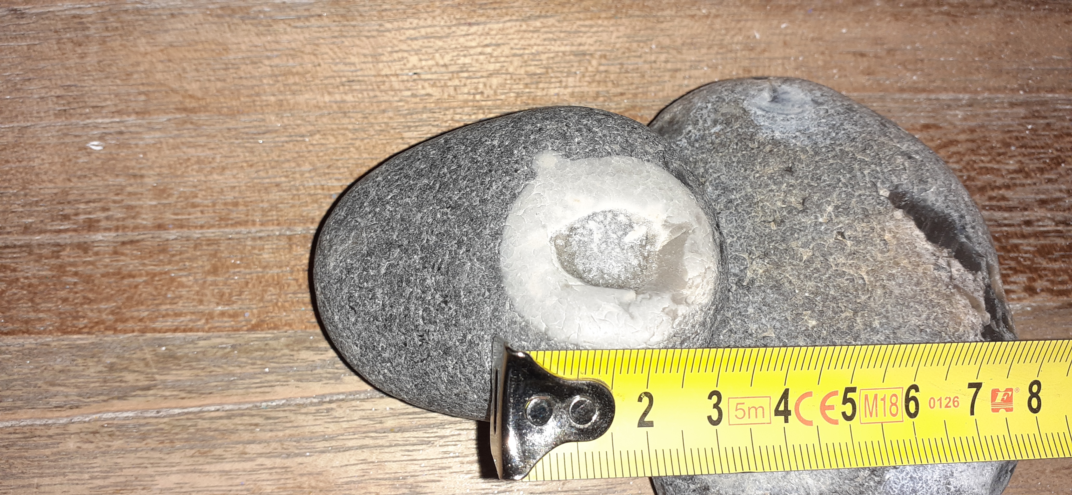 Zou de steen een koraalsoort kunnen zijn? Door het cirkelvormige uiterlijk waarbij het centrum aan de binnenrand gedeeltelijk is opgevuld met kwartskristallen, dacht ik in de richting van een afdruk van een doorsnede van een koraalsoort (Rugosa?)