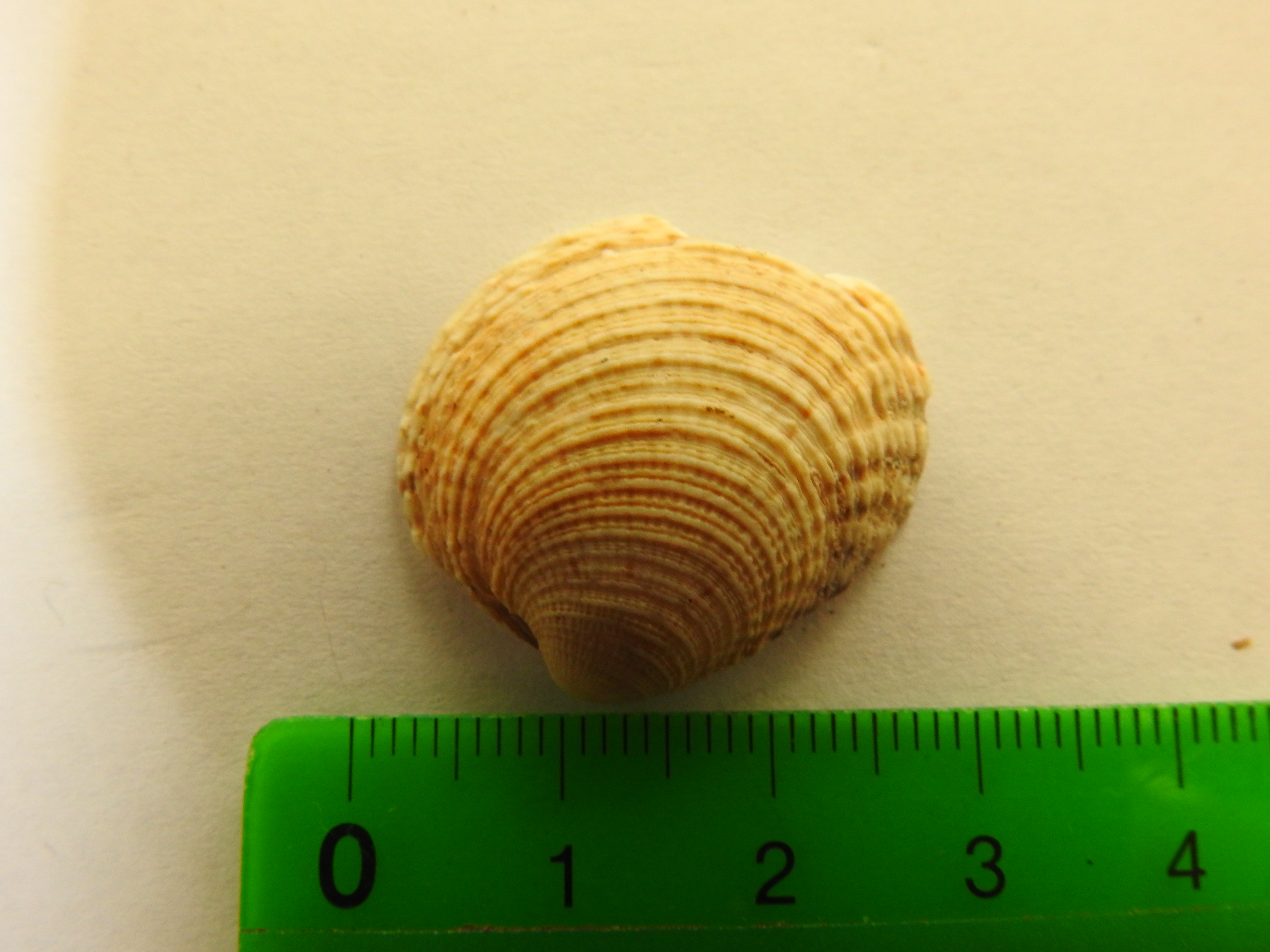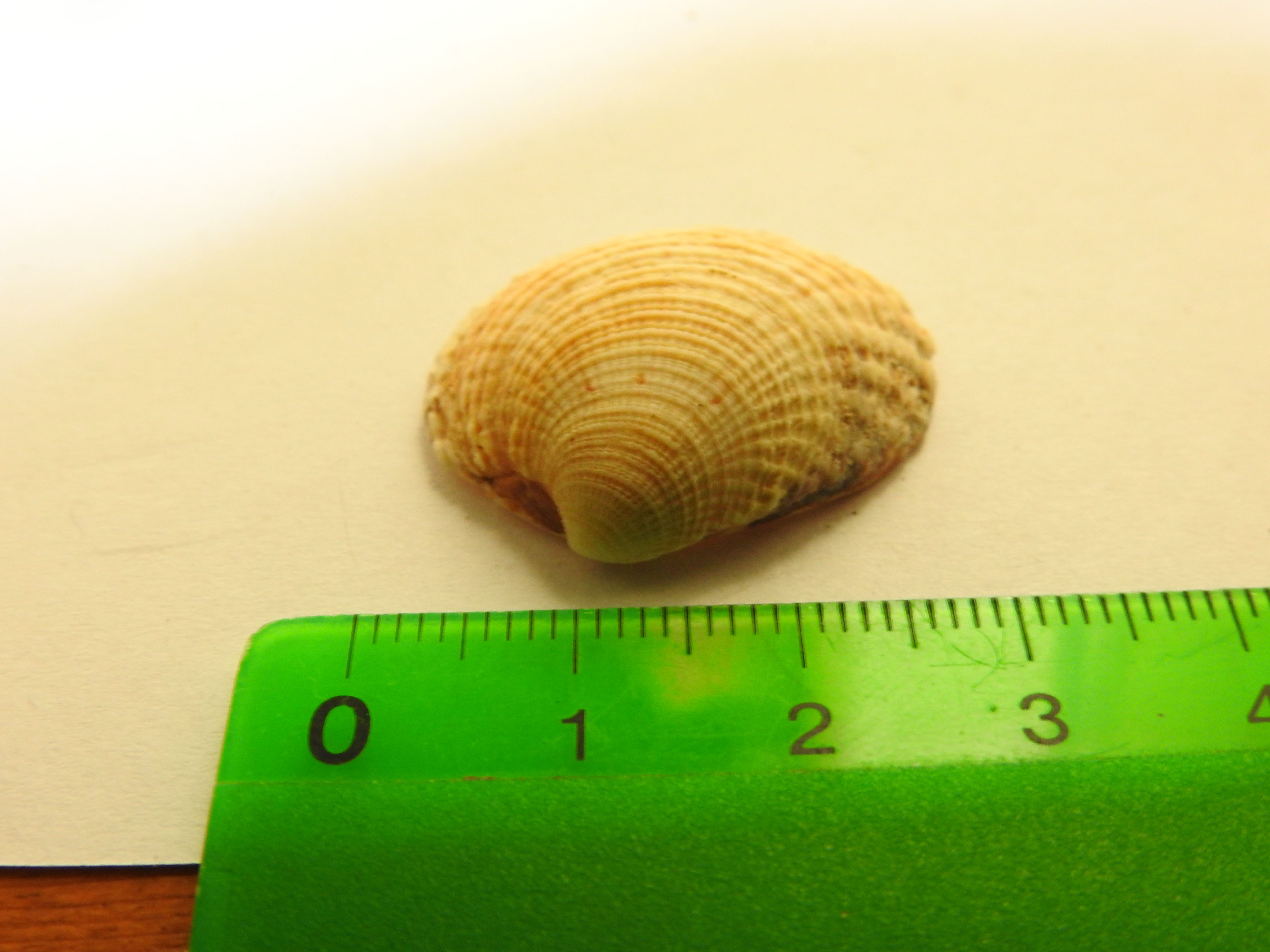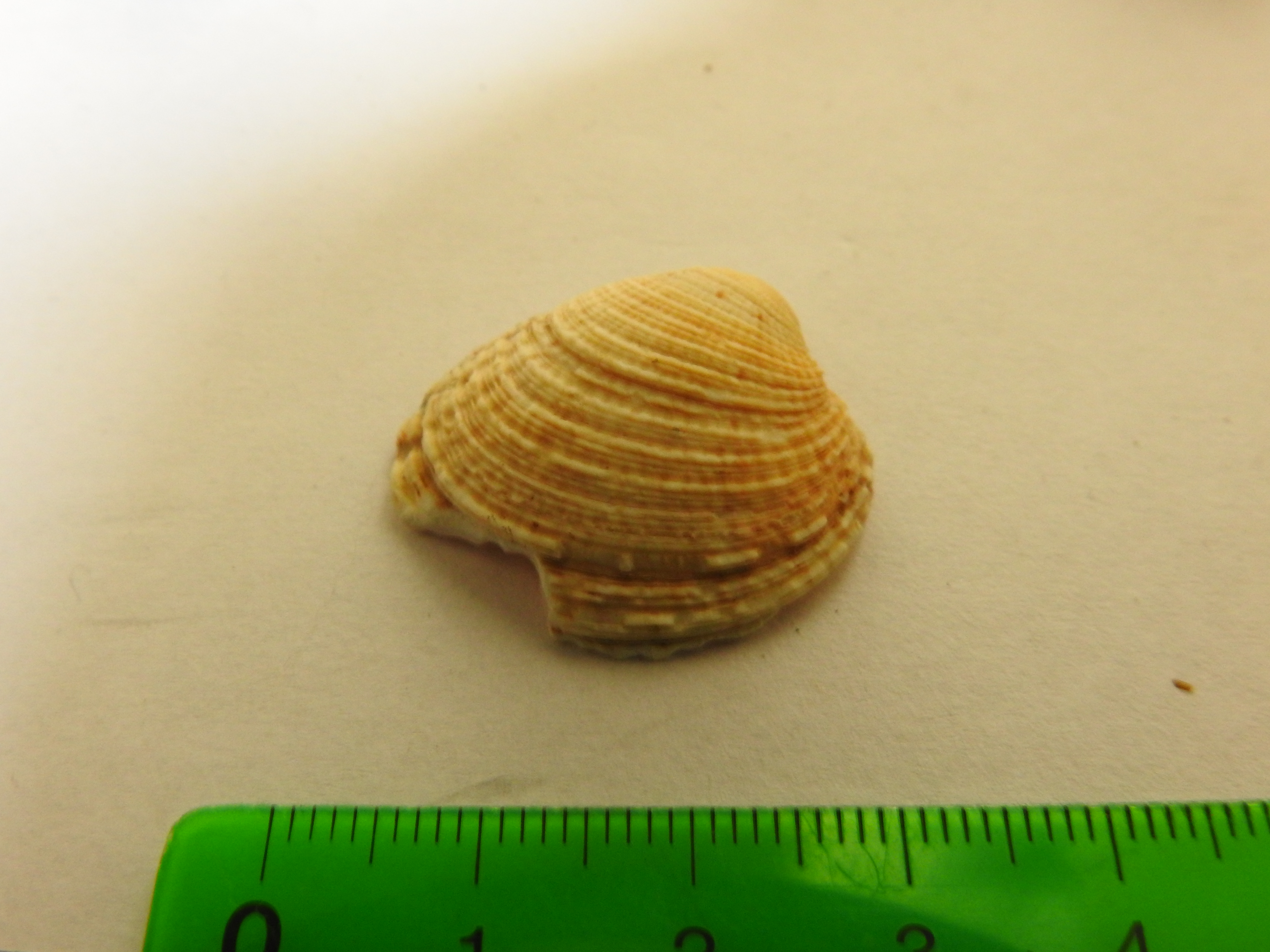 Schelp twee komt uit de familie Arcidae, waarschijnlijk Arca noae.