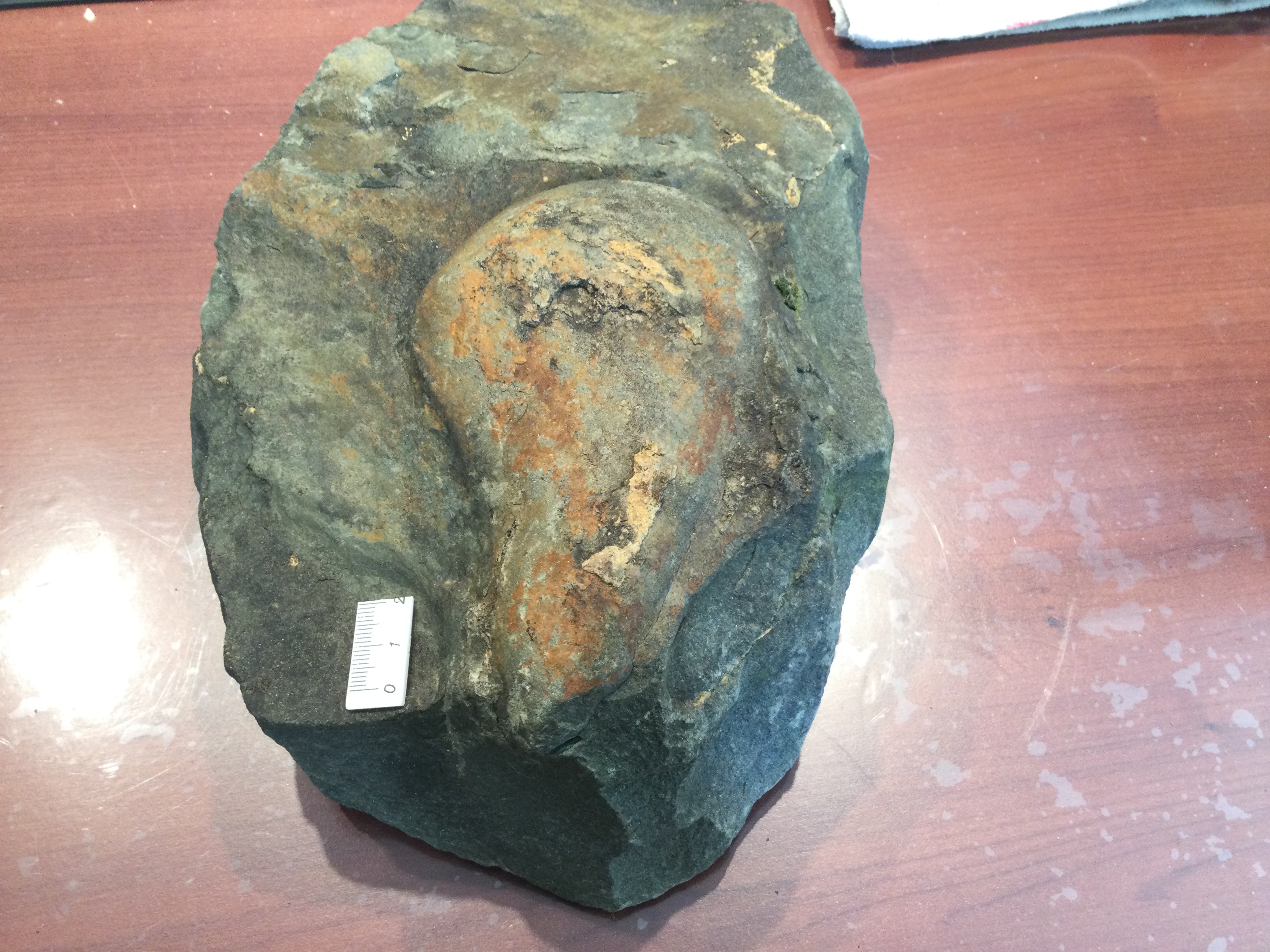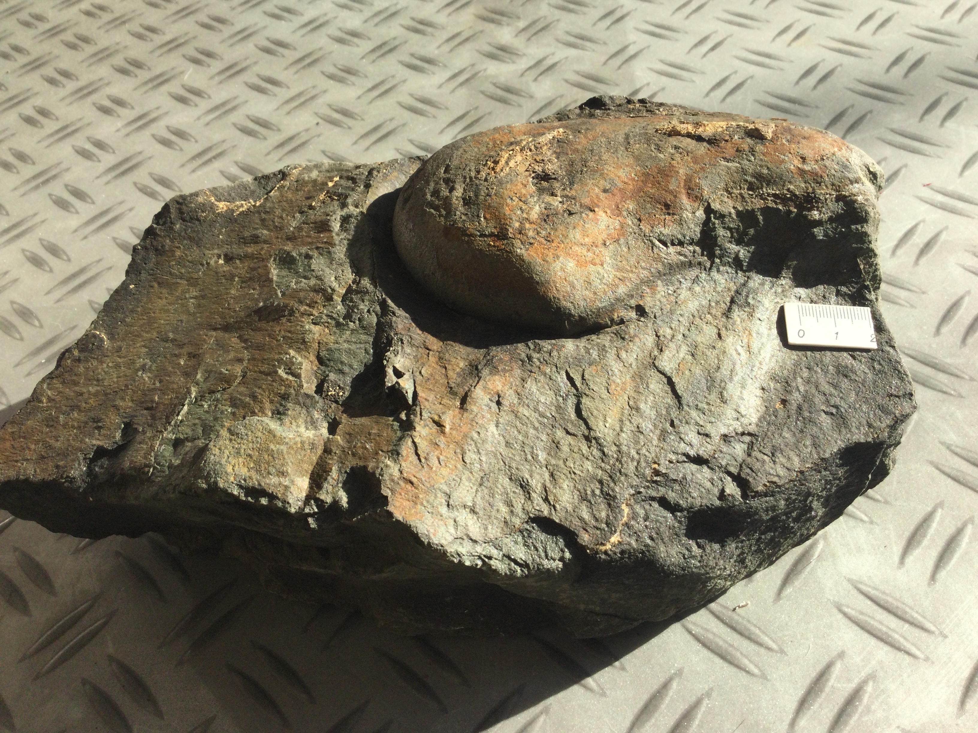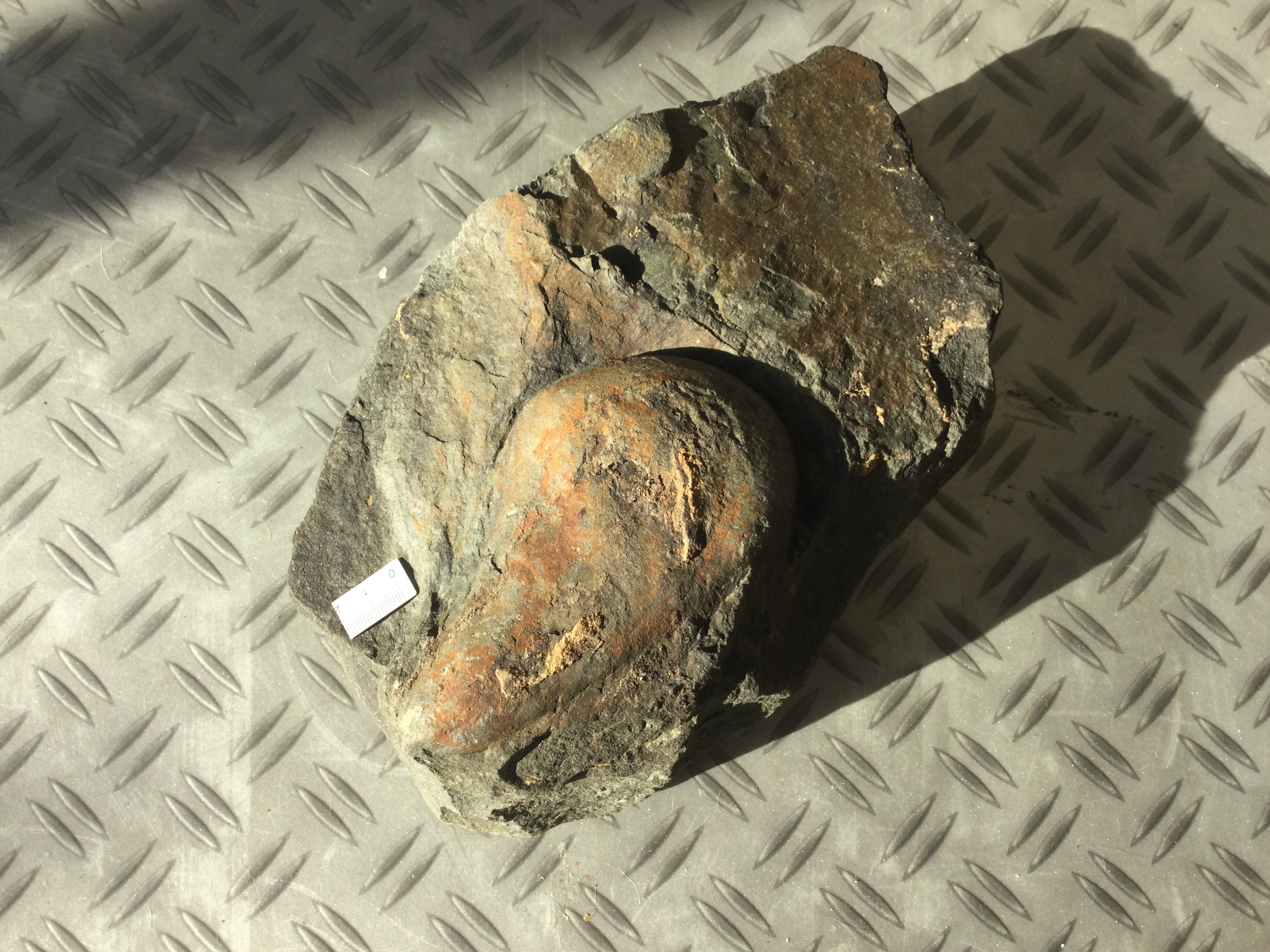 Dit ding daar gevonden. Zou het een bivalve zijn? Toch zeker geen sideriet concretie met toevallig deze vorm?