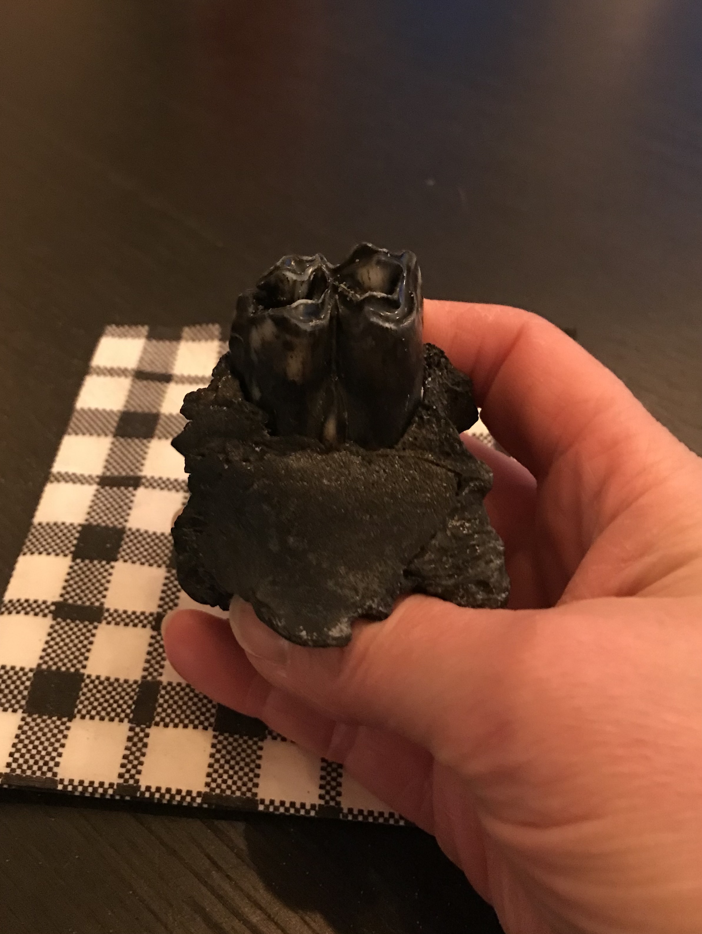 Ik denk ook een stukje bovenkaakse kaak met kies van rund.