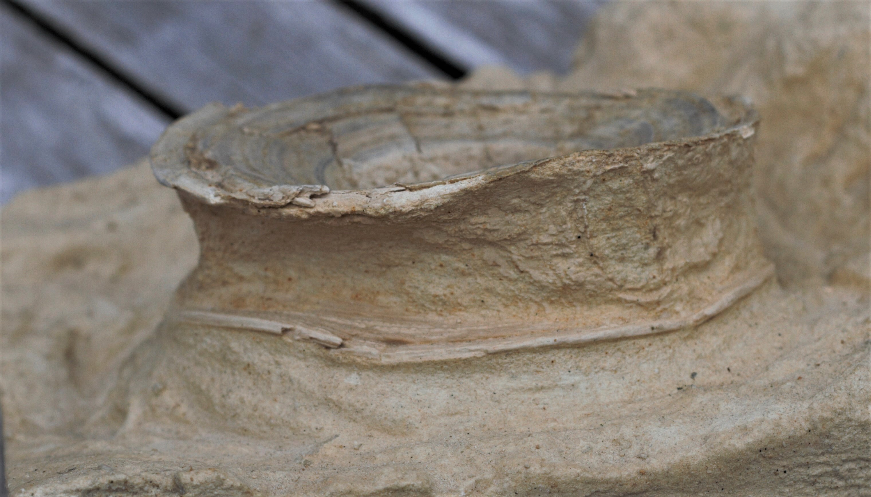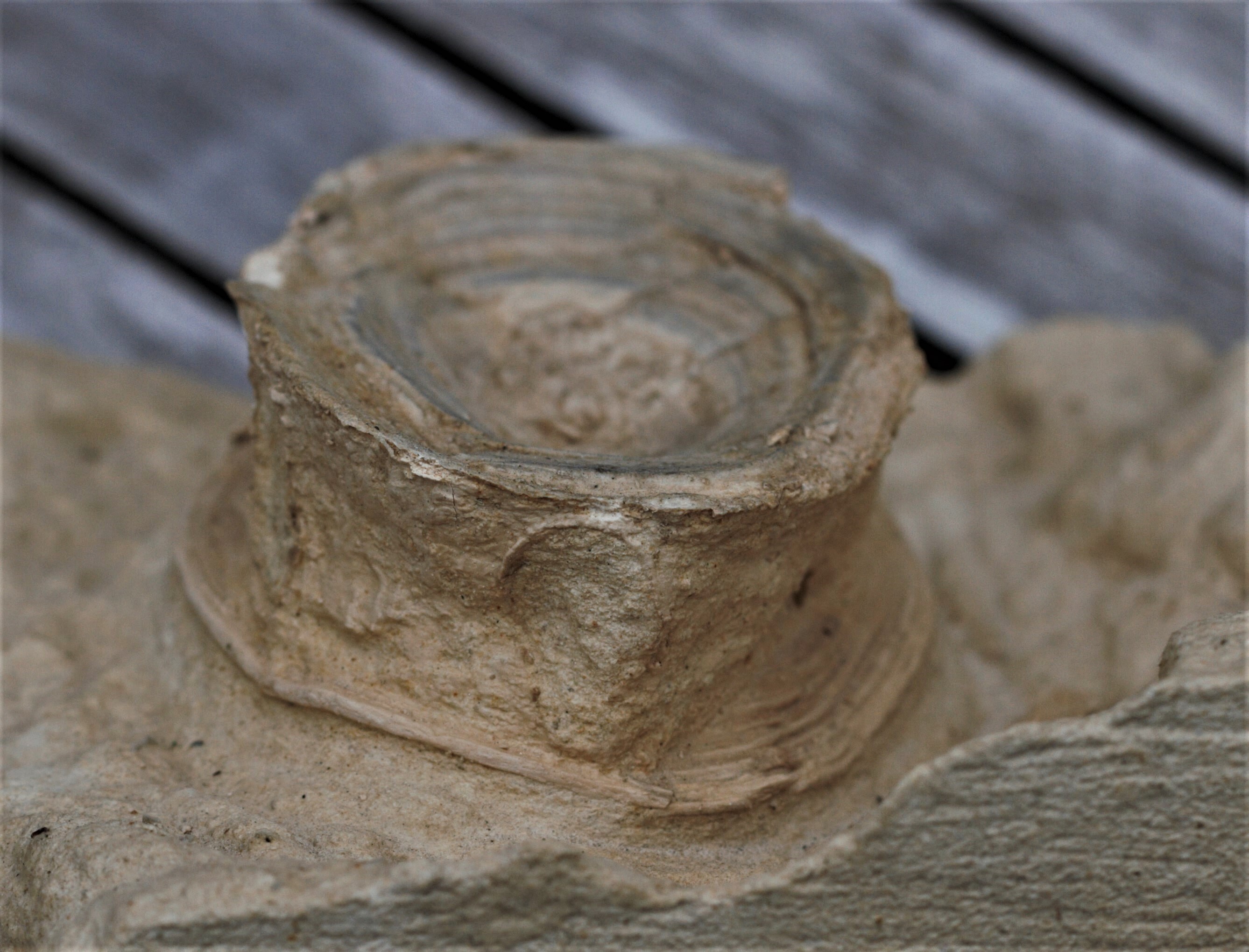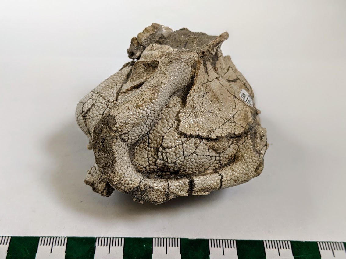 We hypothesize that this specimen, owing to its fantastic size, is an otic capsule of the extinct megatoothed shark Otodus/Carcharocles angustidens - the ancestor of O/C megalodon. Collected by Dr. Boessenecker from the uppermost Chandler Bridge Formation in 2018.[/i]