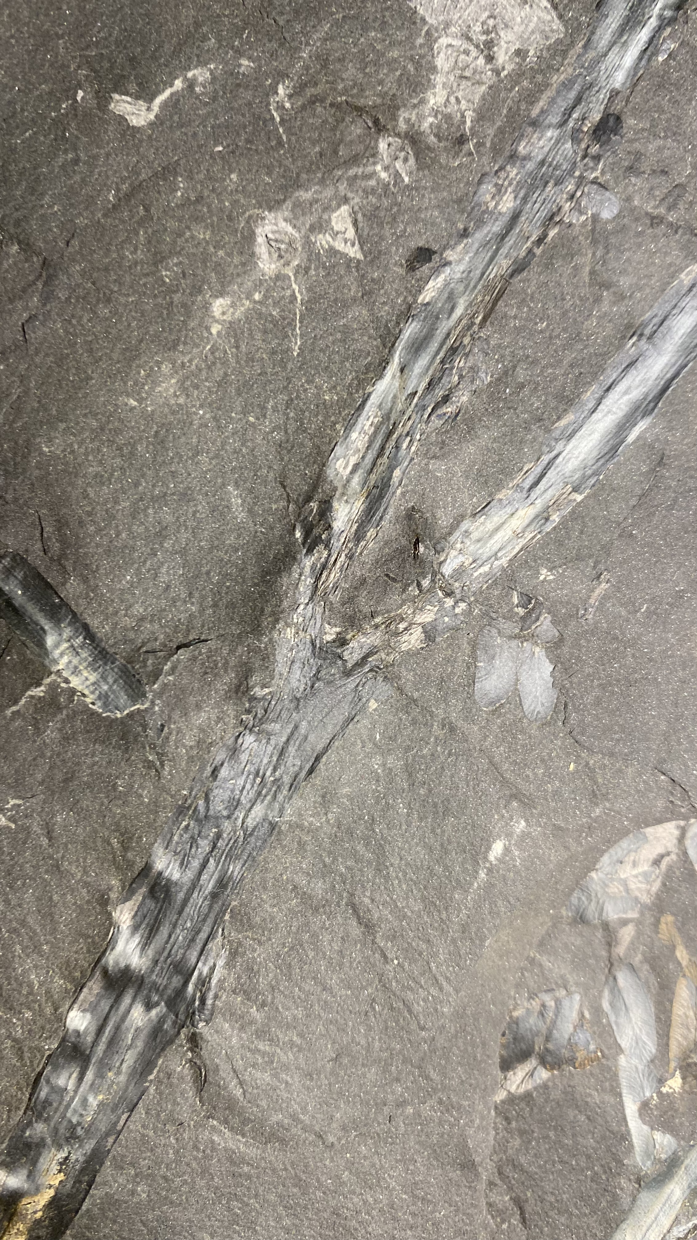 DIe direspltising, is dat die laatste foto? want die zijn zeker dezelfde plant.Carboon schreef: ↑23 sep 2022, 17:25 Bedankt voor de extra foto's. De pinnules die je kunt zien behoren zeker tot een neuropteride plant. Het is echter onduidelijk of deze pinnules ook in organische connectie staan met de "zich vertakkende tak". Deze tak is vrij apart, met zowel een bifurcatie als een splitsing in drieën. Dit laatste heb ik nog niet eerder in neuropteride bladvormen gezien. Kan natuurlijk zijn dat tak en pinnules niet bij elkaar horen? Sowieso een leuk stuk!
