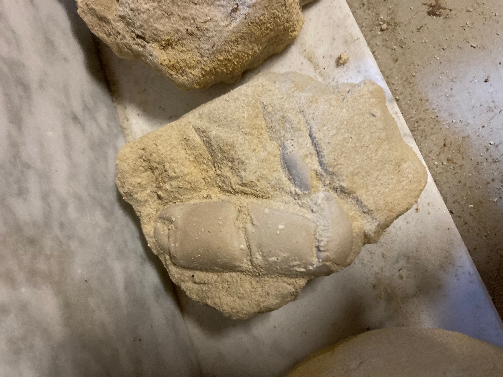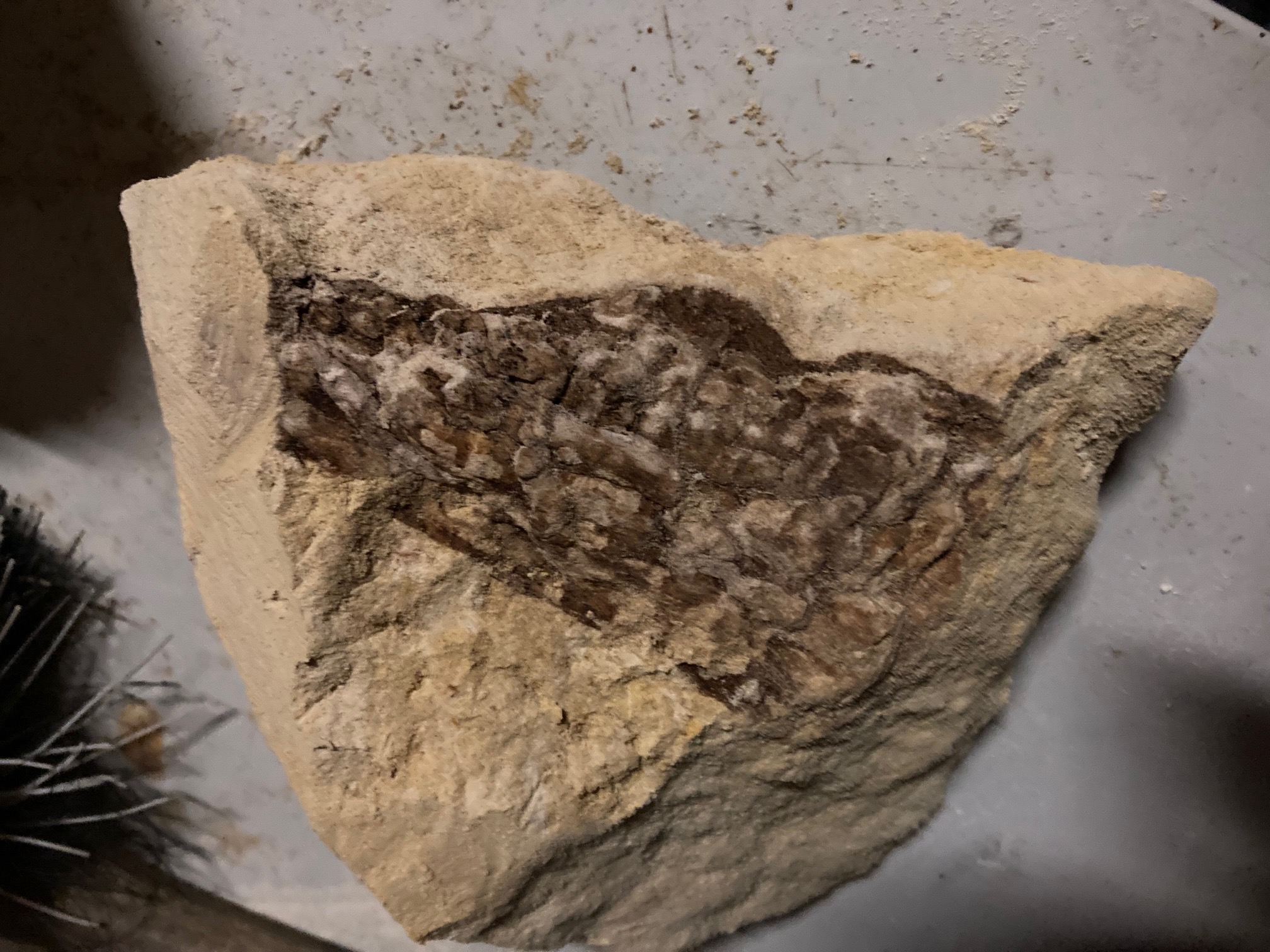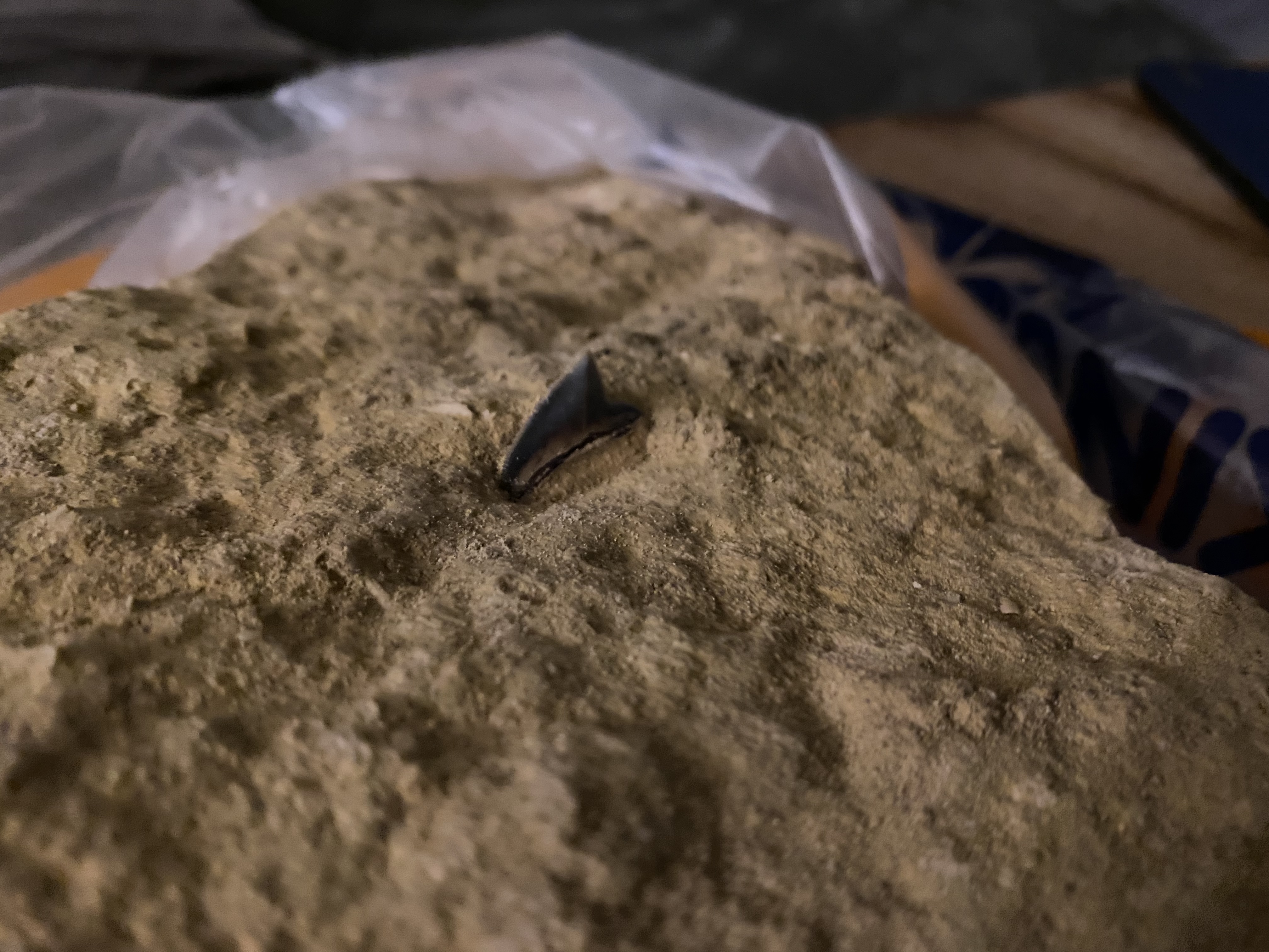 Ik heb wat kreeftenpotjes gevonden en een kreeftenschaar, 3 kapotte zee-egels, en een haaientand van de Squalicorax Pristodontus daar ben ik heel erg blij mee. De kreeftenschaar: