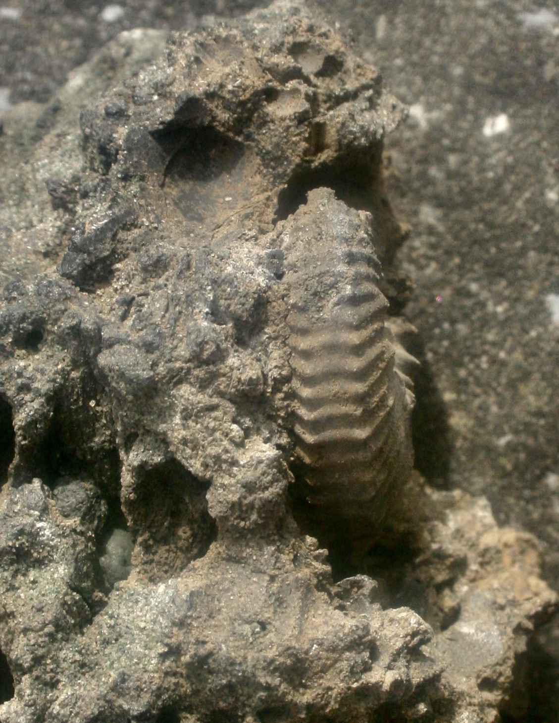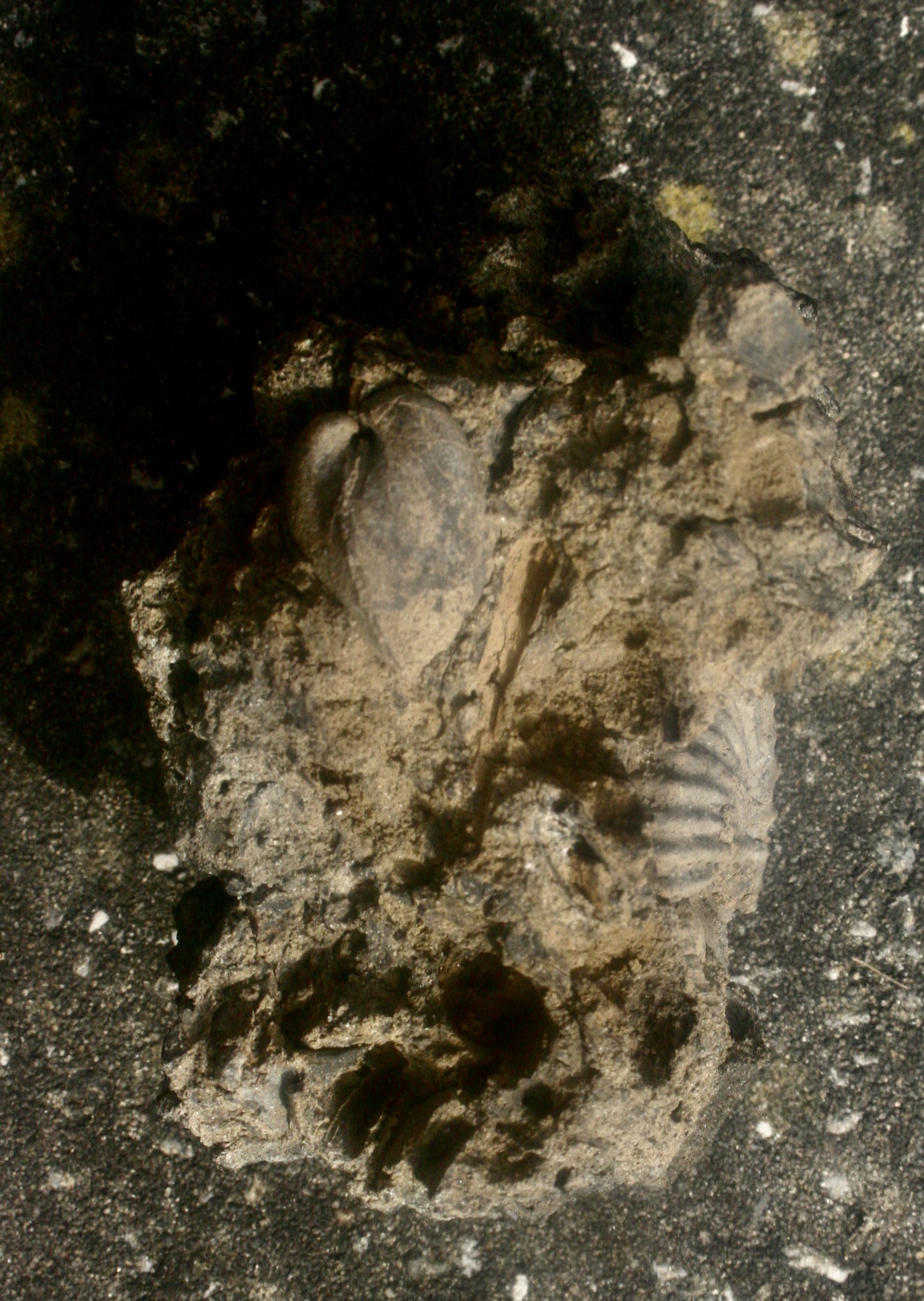foto 5 : de steen lag reeds jaren in een lade en ik wilde de bivalve wat meer vrij leggen. ik was verbaasd en blij toen de ammoniet te voorschijn kwam