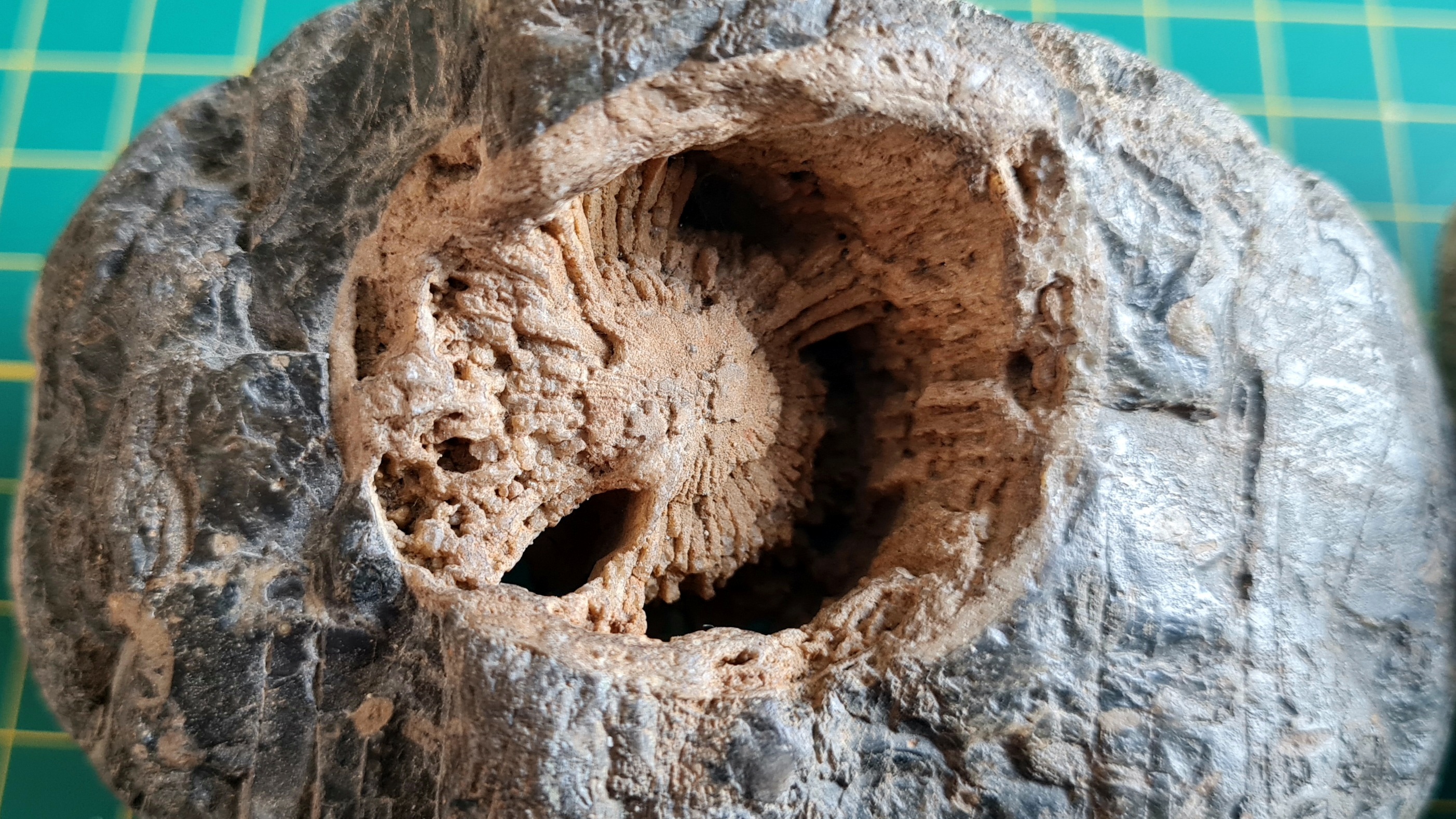 Al in al vind ik het koraaltje en de "ammoniet" niet echt lijken op Vaalser Groenzand. Heb jij deze in situ gevonden?
