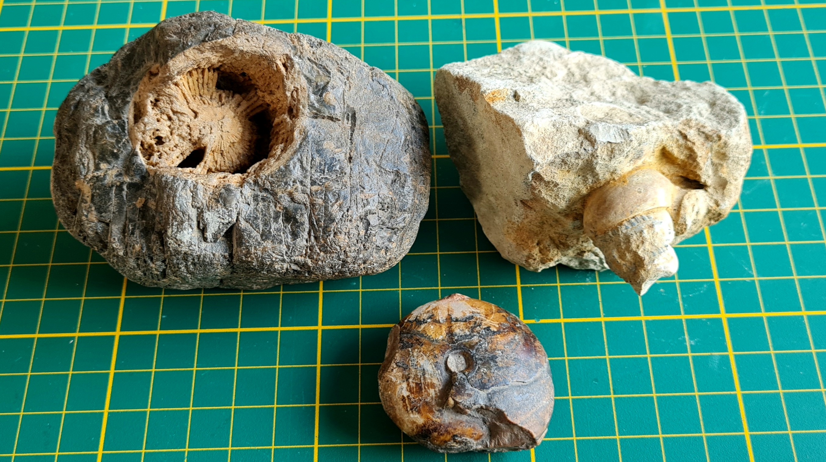 Ik heb enkel fossielen van de Vaalserberg, Vaalser groenzand / Formatie van Vaals Kan iemand mij helpen deze fossielen te determineren? Een ammoniet, maar uit welke familie / geslacht? En een Spons en Gastropode? Wie help me opweg ;)