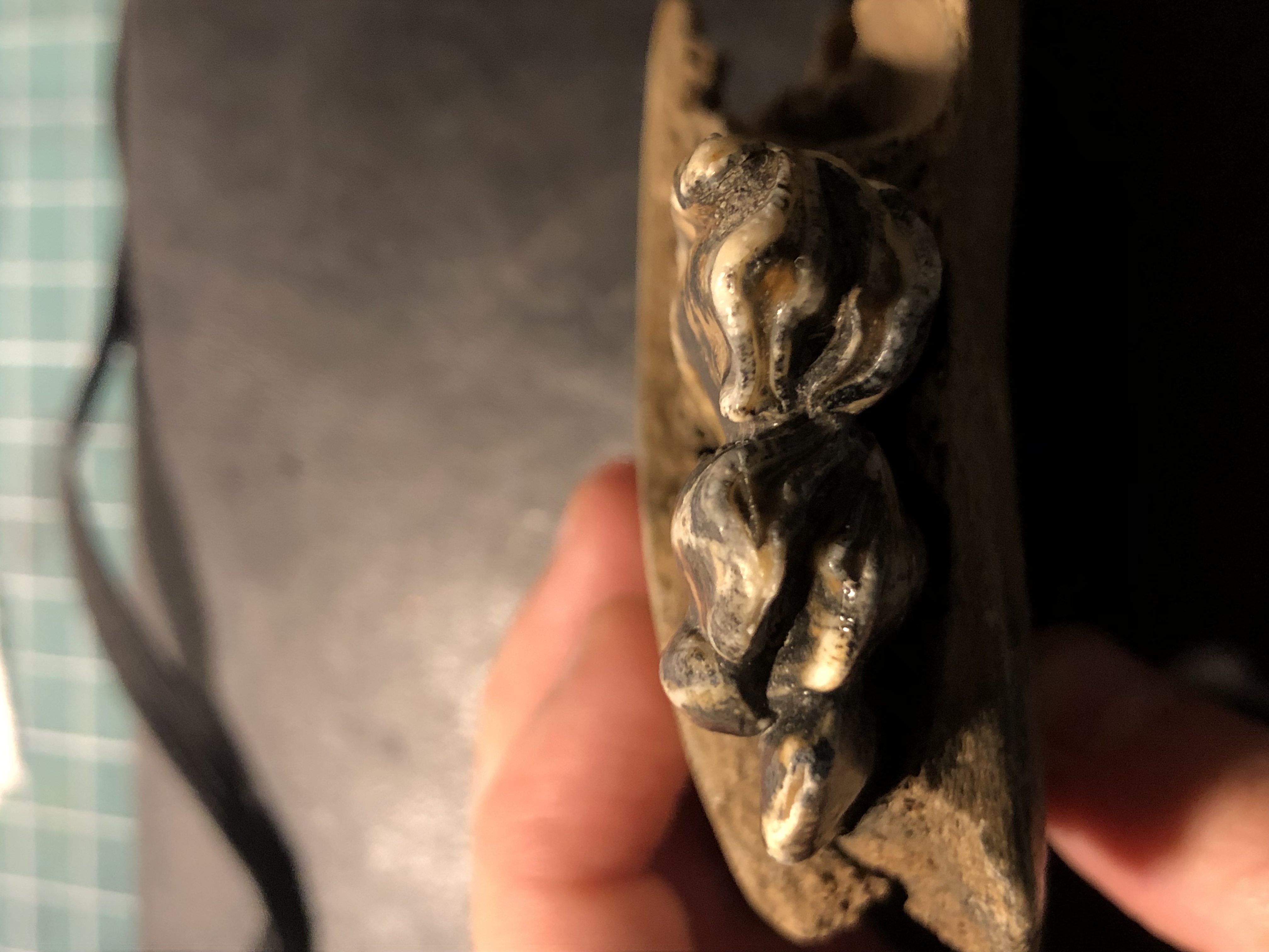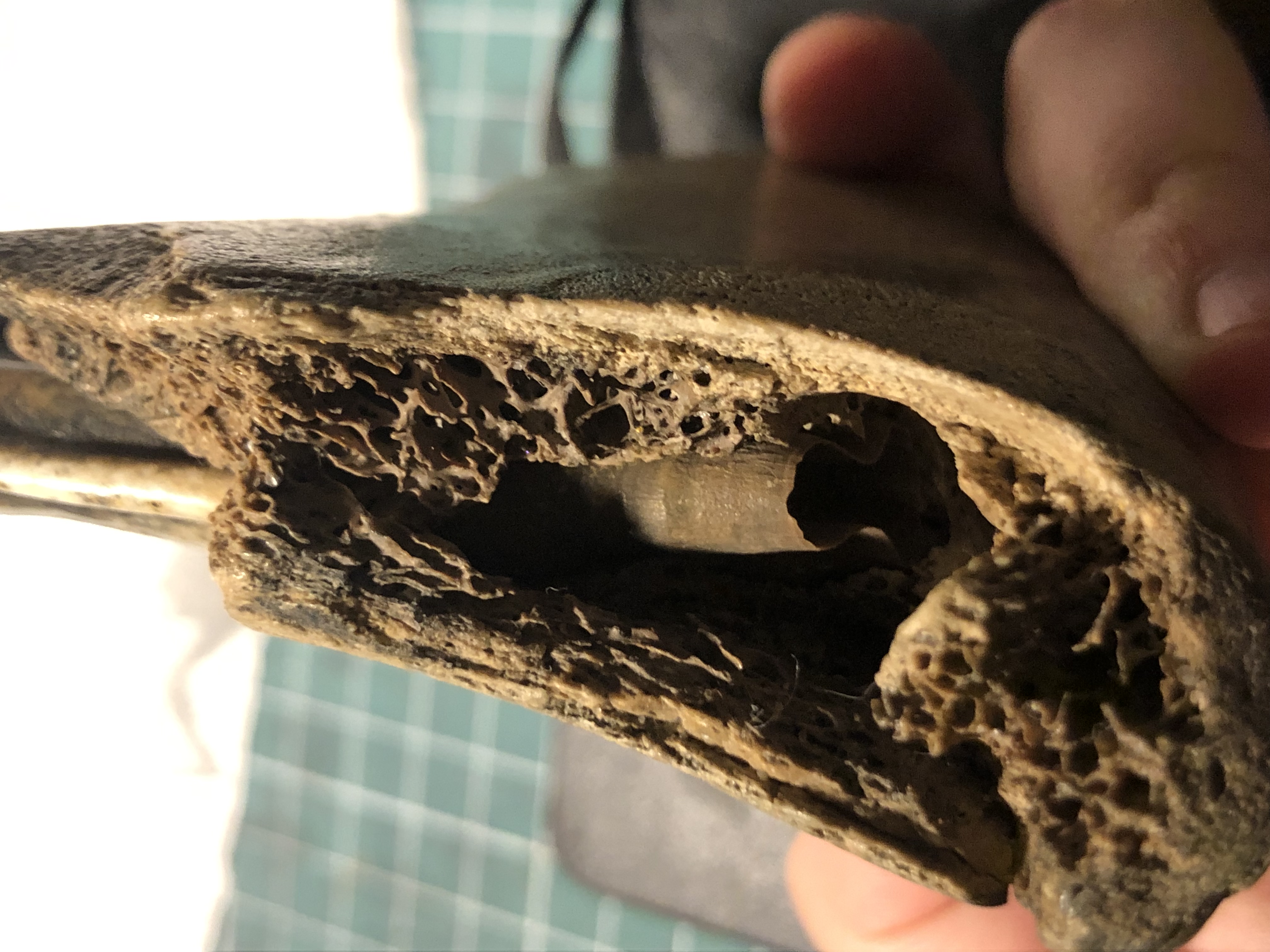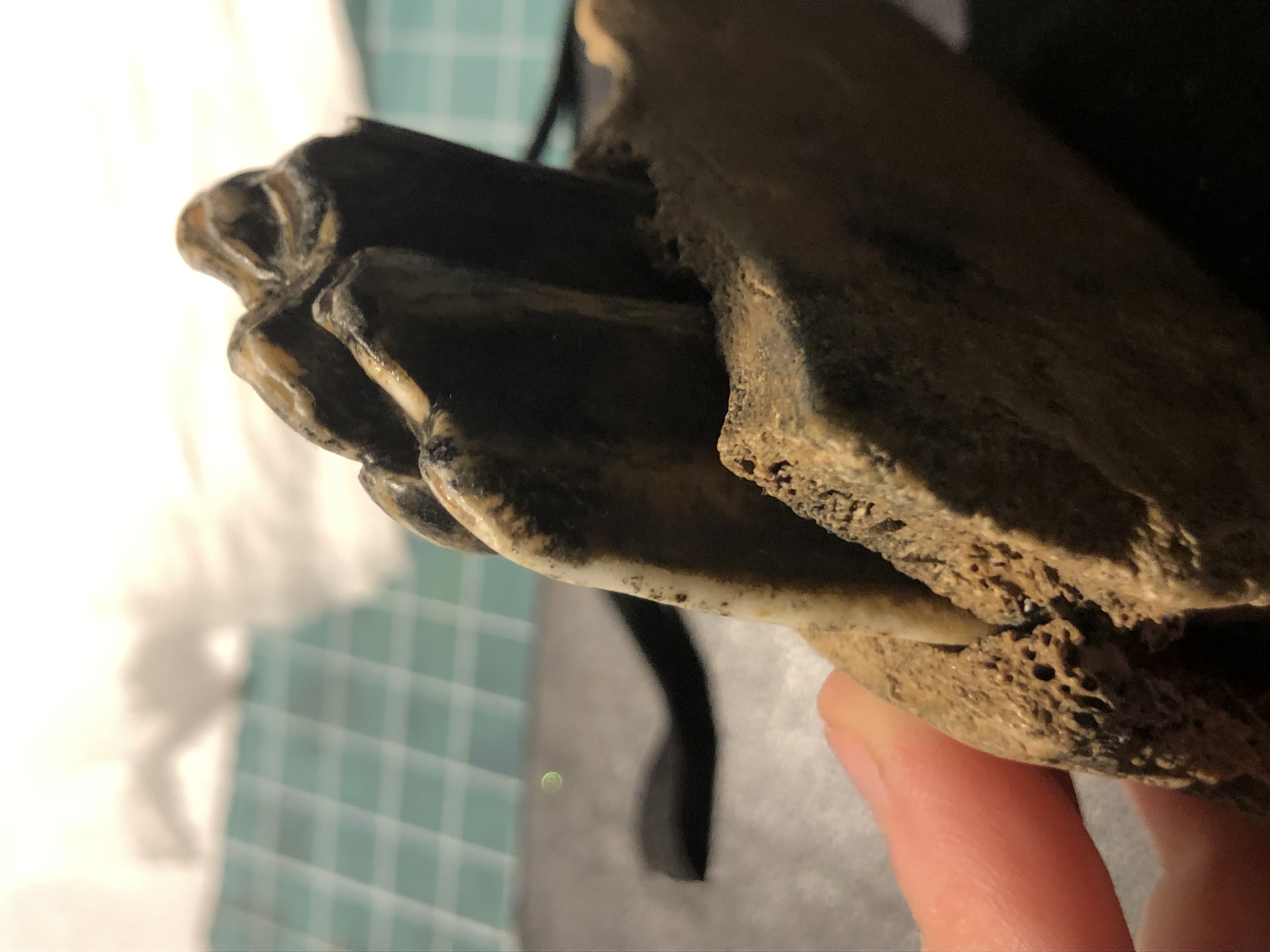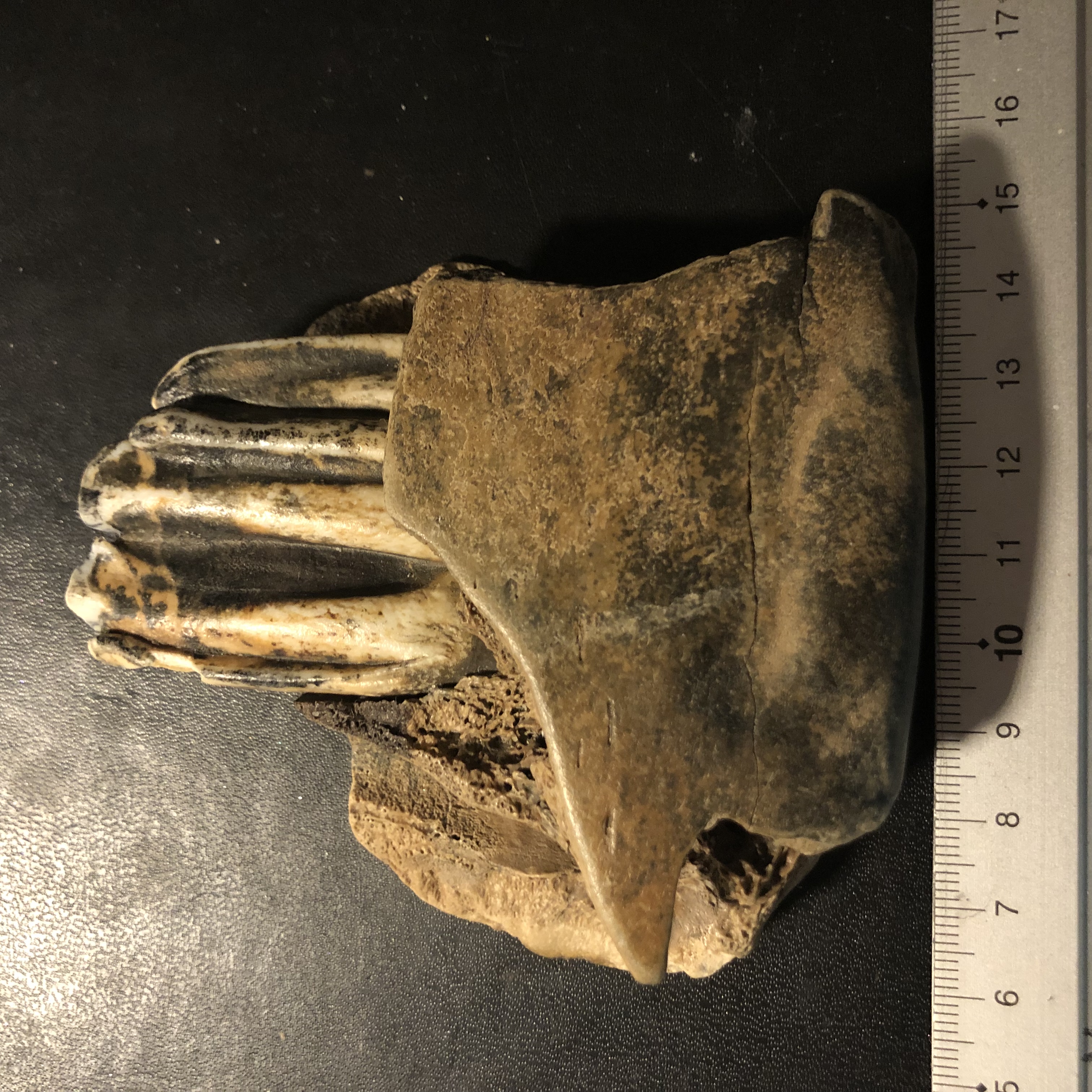 Ik vermoedde dat het van een gras-etend zoogdier was, mogelijk bizon/koe-achtig, maar ik heb geen ervaring en geen zekerheid. Heeft iemand ervaring met doggerlandfossielen en botresten uit de ijstijd?