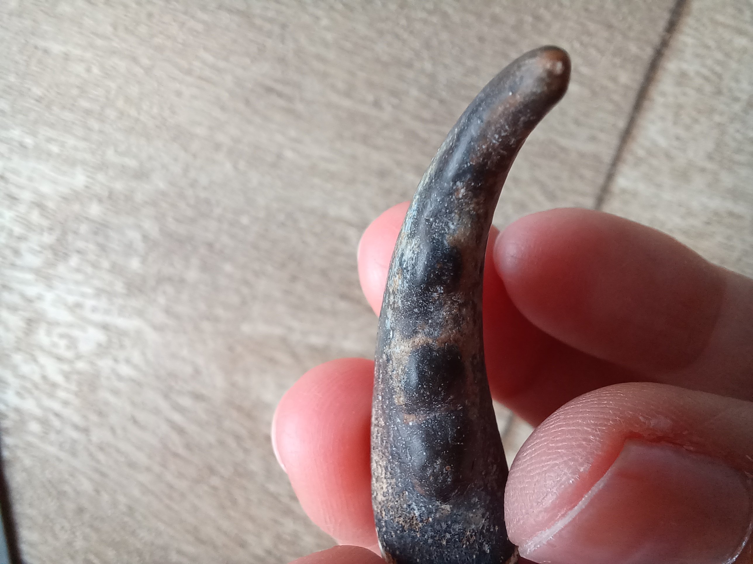 Google lens komt uit op iets van een Dino tand, maar dat lijkt ons onwaarschijnlijk..