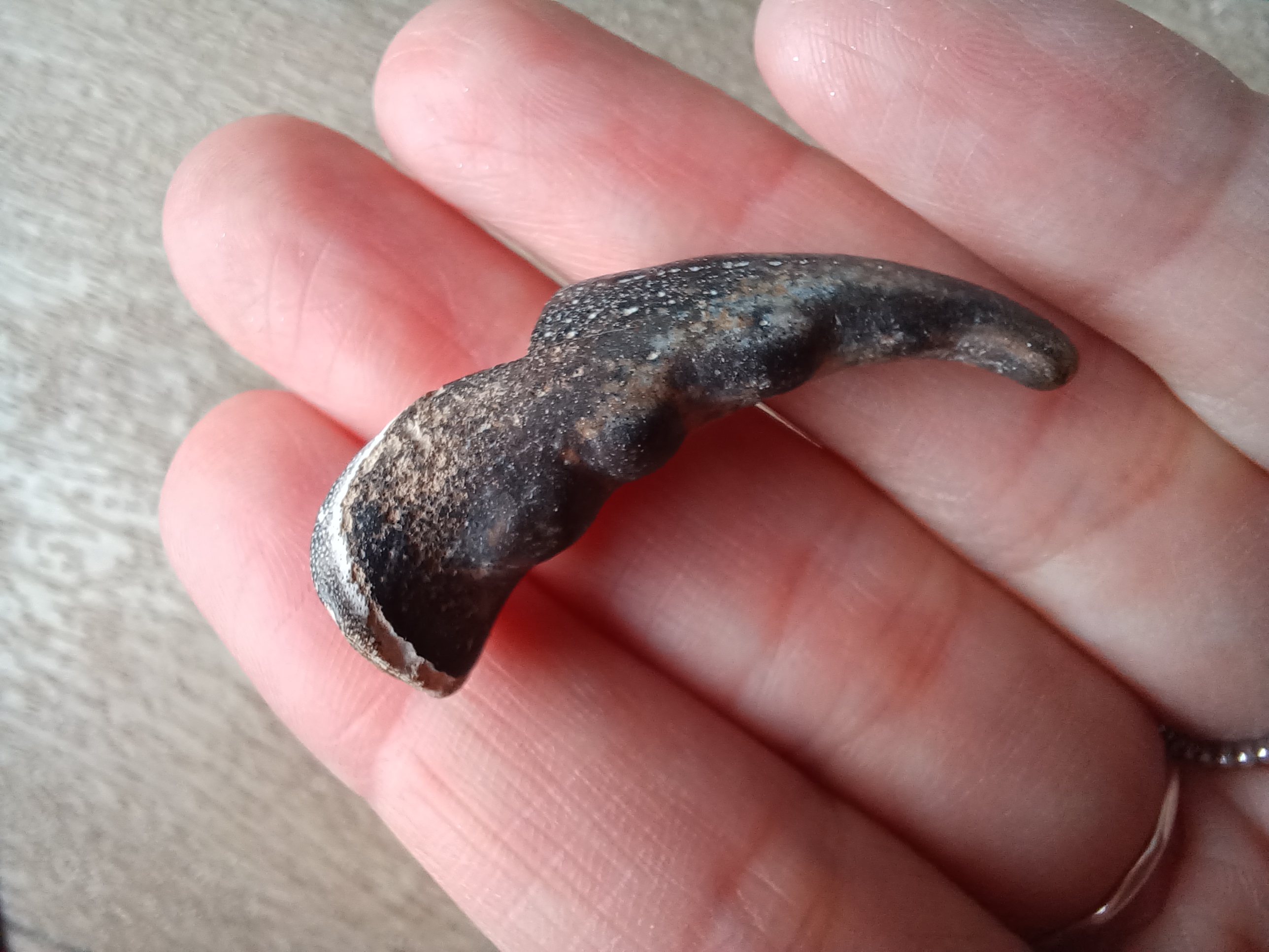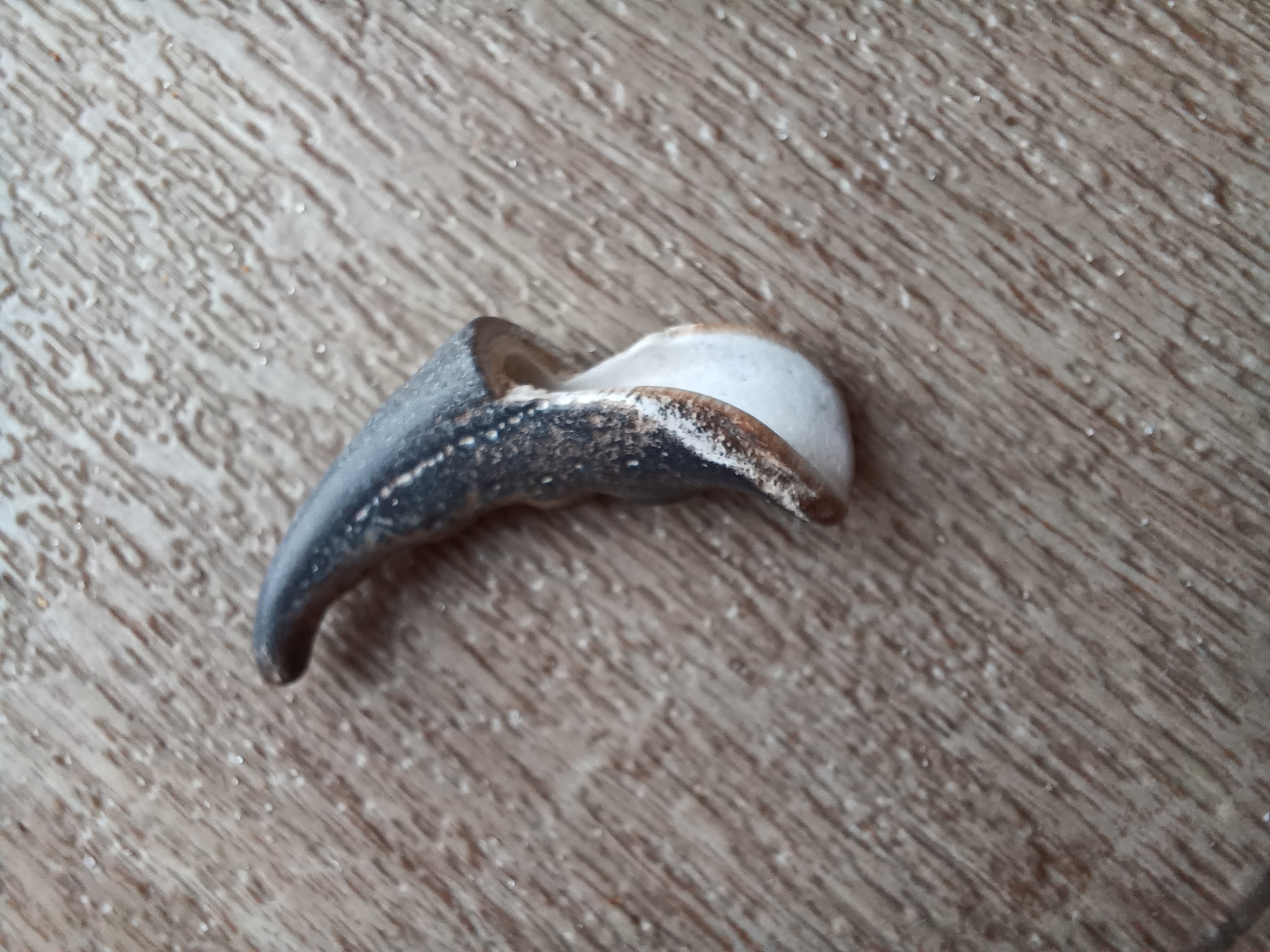Het lijkt op iets van een stukje krabben schaar, het is hol en een cm of 4 lang.