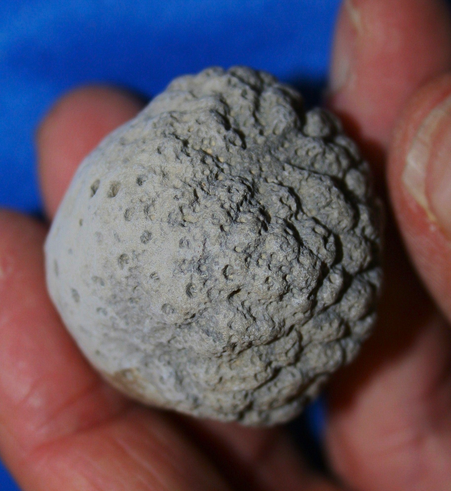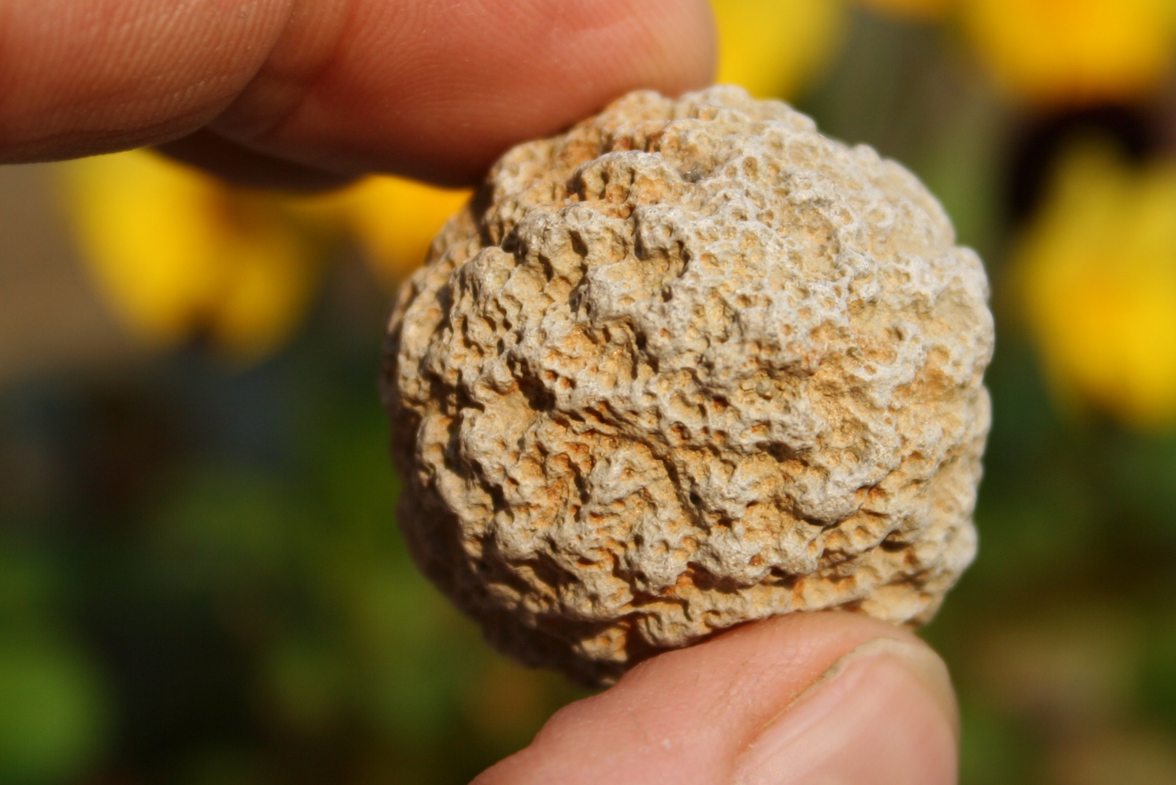 Deze laatste foto is van een exemplaar uit de collectie van Johan Buntsma en ligt nu in de collectie van Natura Docet in Denekamp. Deze laat rechtsboven iets van een 'bloem' zien, maar is links zover geërodeerd dat je een C. globosa vermoedt. Geeft aan hoe lastig het soms is om deze sponzen goed te benoemen.