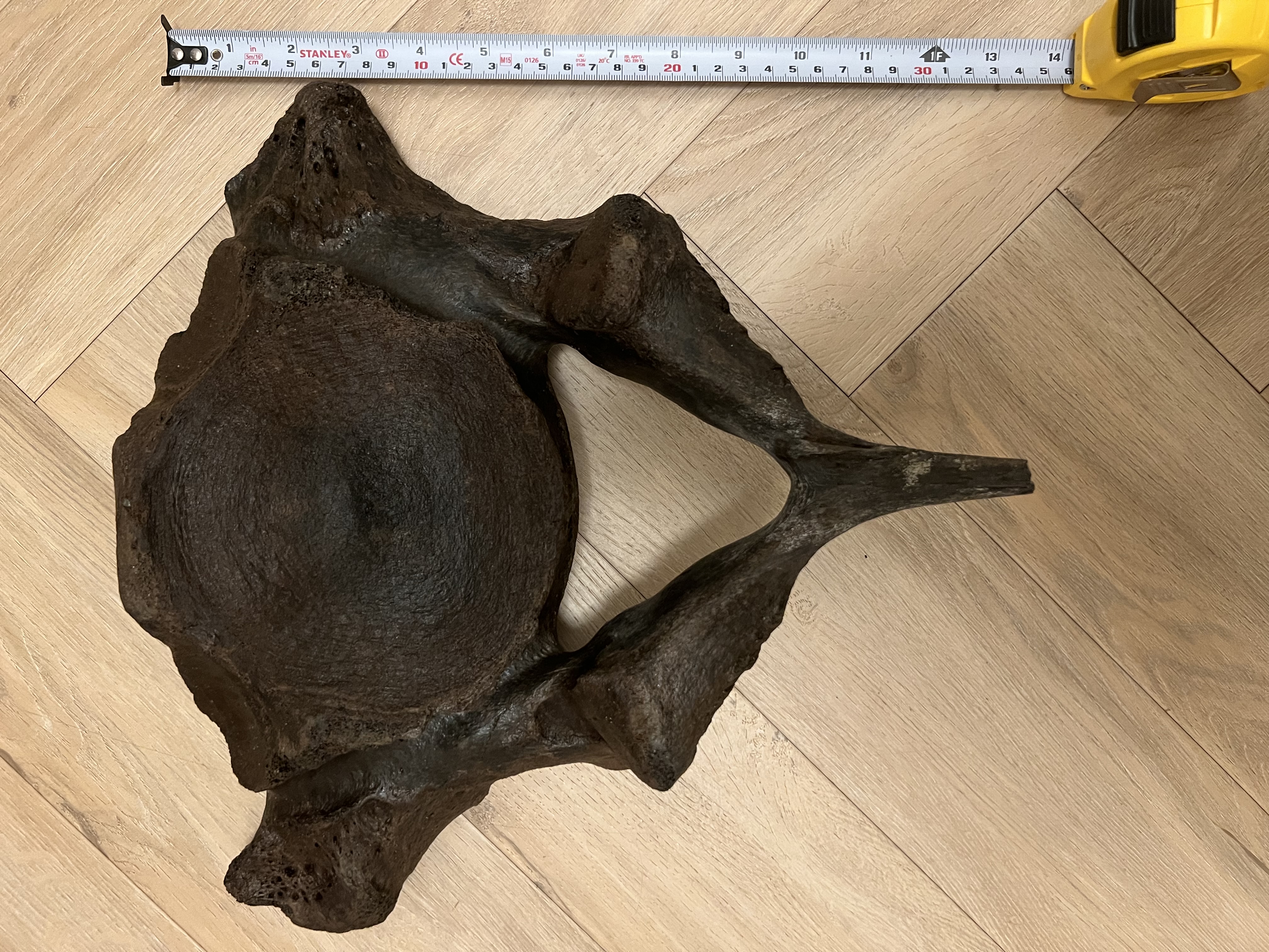Zeker een mooie wervel van en mammoet! Deze is, gezien de platheid, van de nek (cervicale vertebra).
