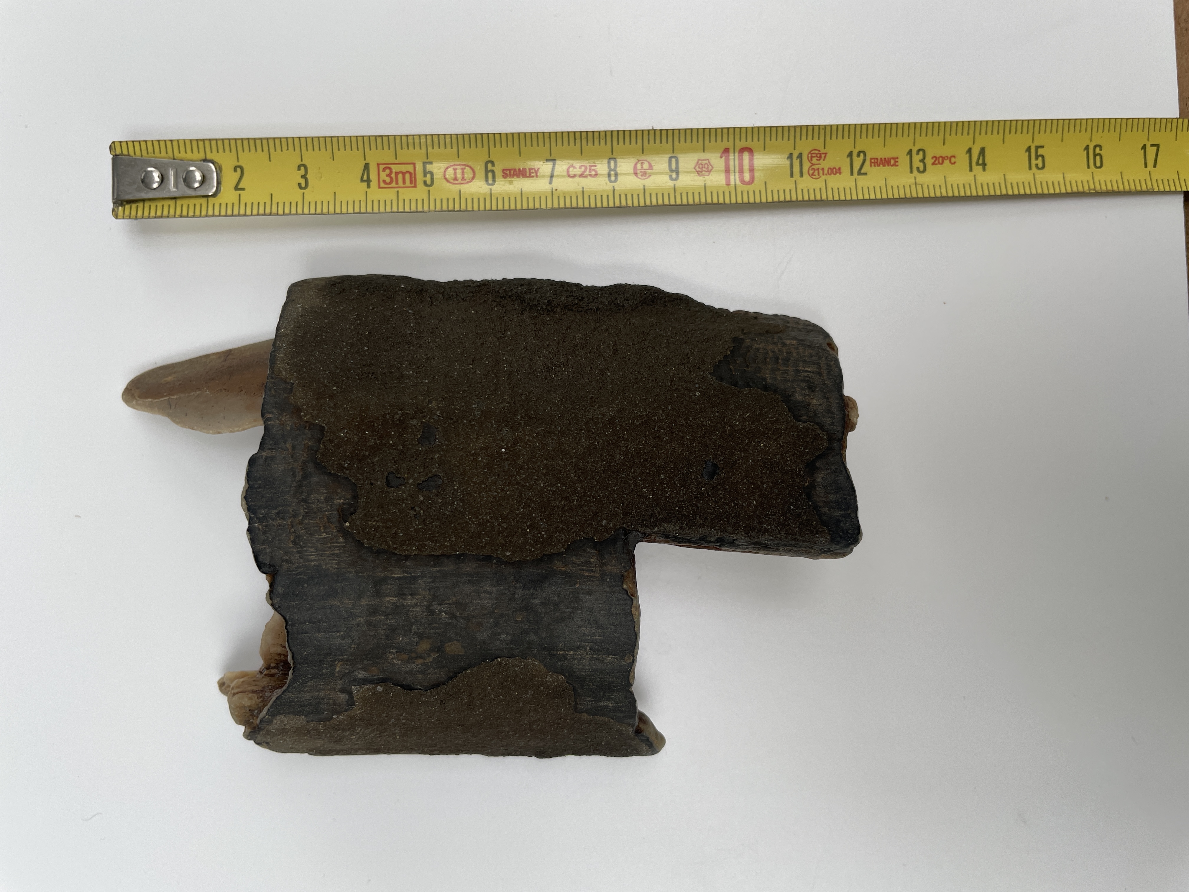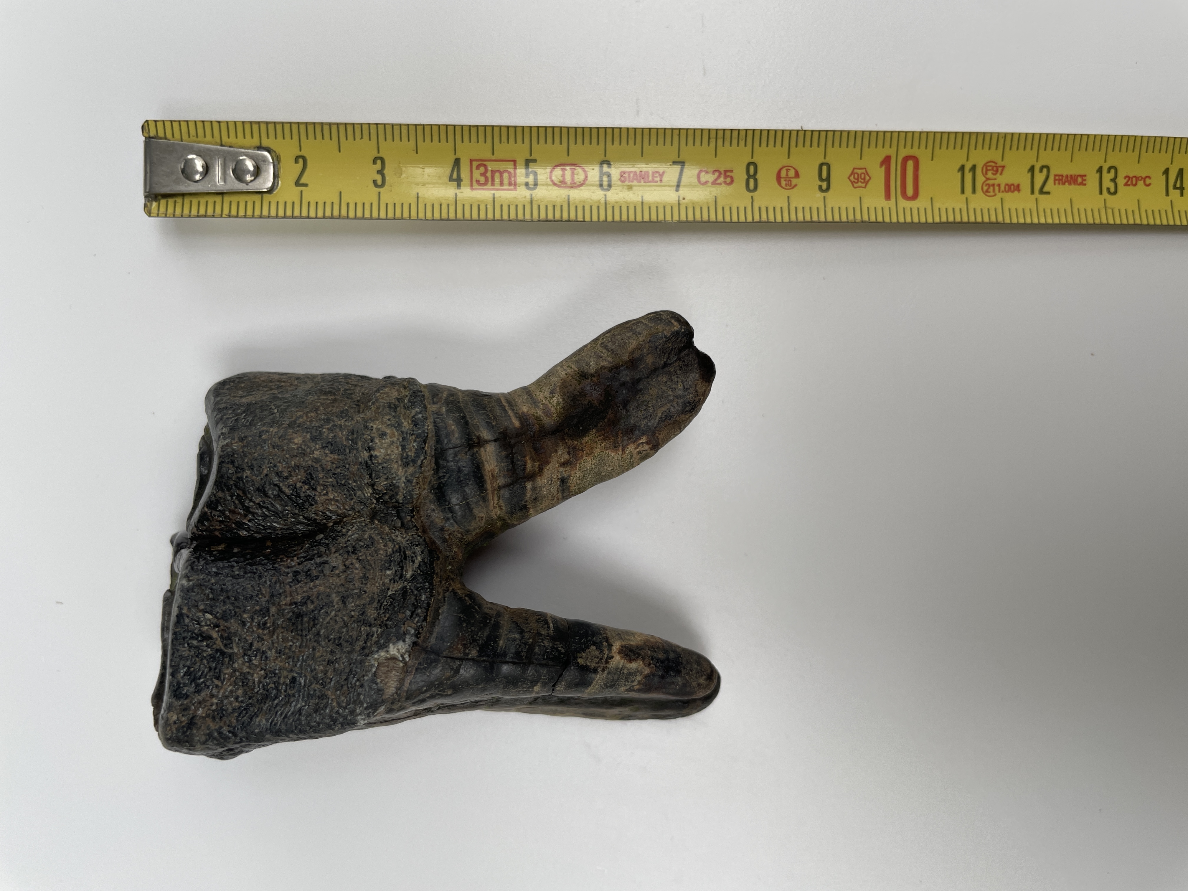 Foto 5,6 en 7: onderkaakse kies wolharige neushoorn (mooie vondst!)