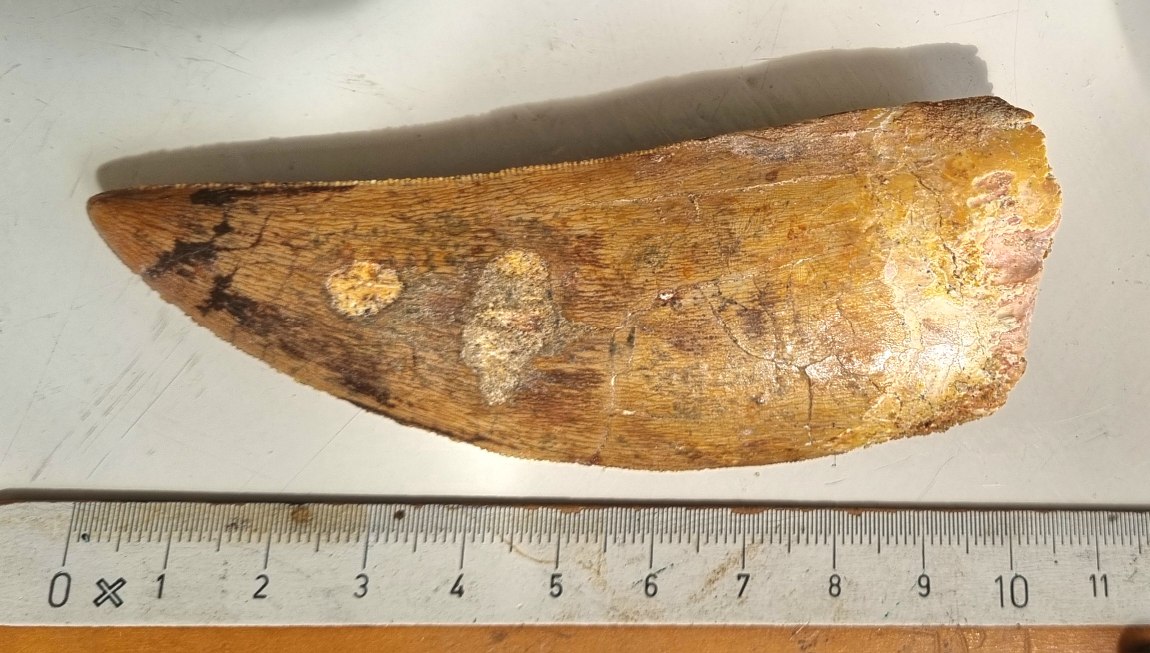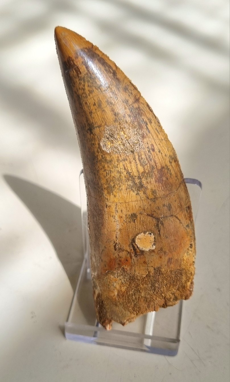 11cm Carcharodontosaurus tooth, Kem Kem 10.jpg