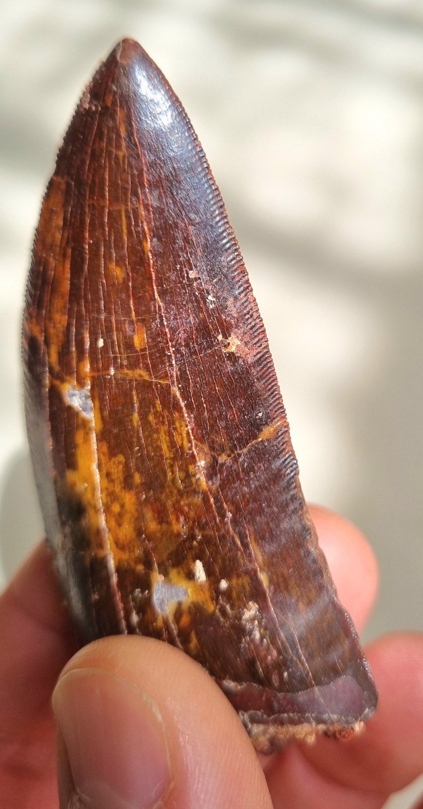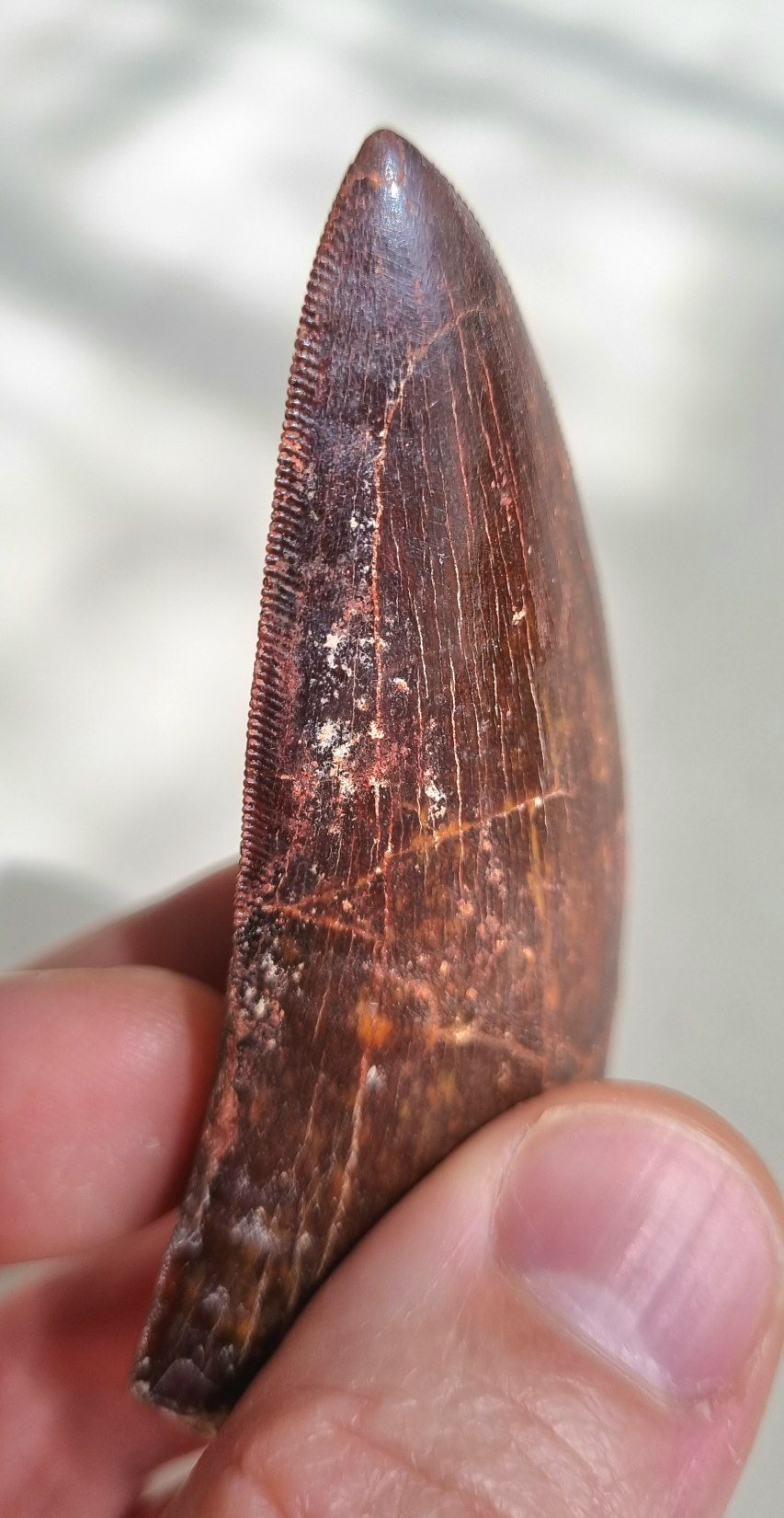 9cm red Carcharodontosaurus sp. tooth 11.jpg