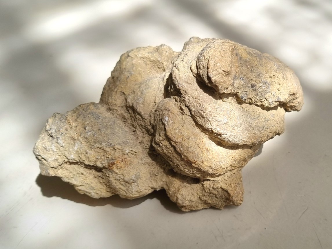 Bijzonder grote en zelden aangeboden, duidelijk gevormde coproliet van een plantenetende dinosaurus (mogelijk Triceratops sp.) uit de Hell Creek Formatie van Wyoming, daarmee daterend tot het Maastrichtiaan van het Laat Krijt. Al 25 jaar in mijn verzameling. €80 VERKOCHT