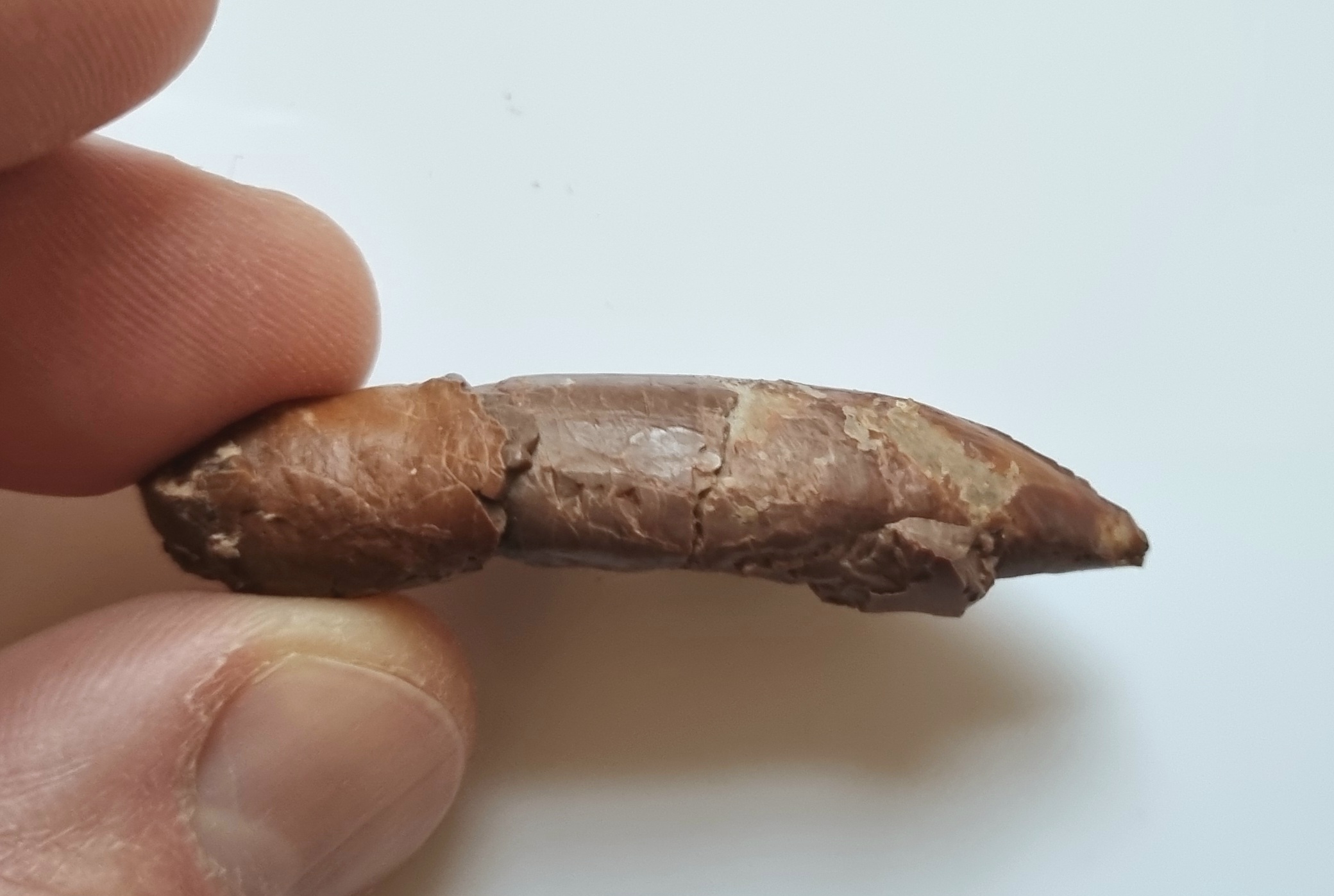 11cm Carcharodontosaurus tooth, Kem Kem 06.jpg