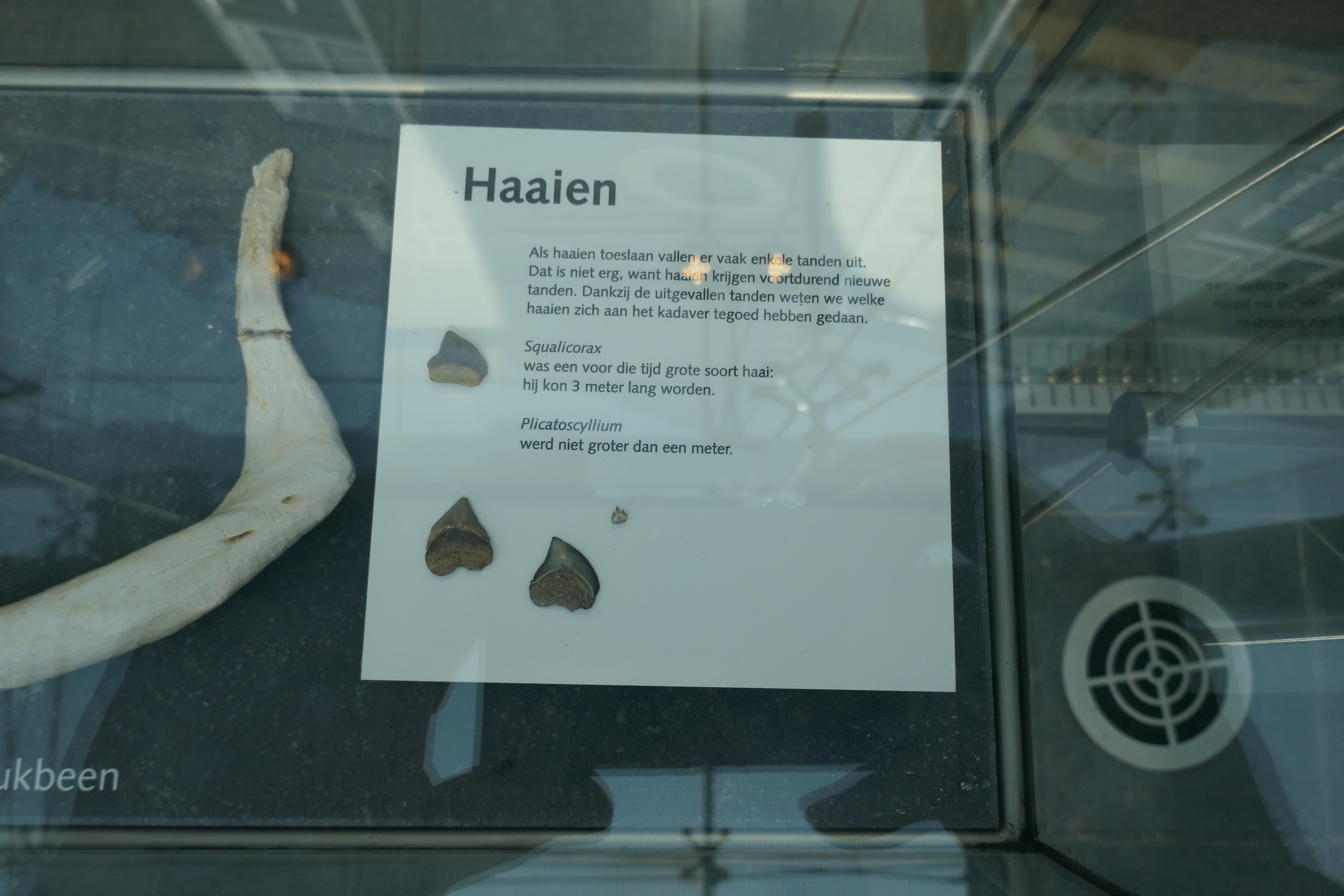 Ook erg gaaf is de vondst van Squalicorax tanden rond het skelet, het directe bewijs dat deze haaien zich te goed hebben gedaan aan de resten van Bèr: