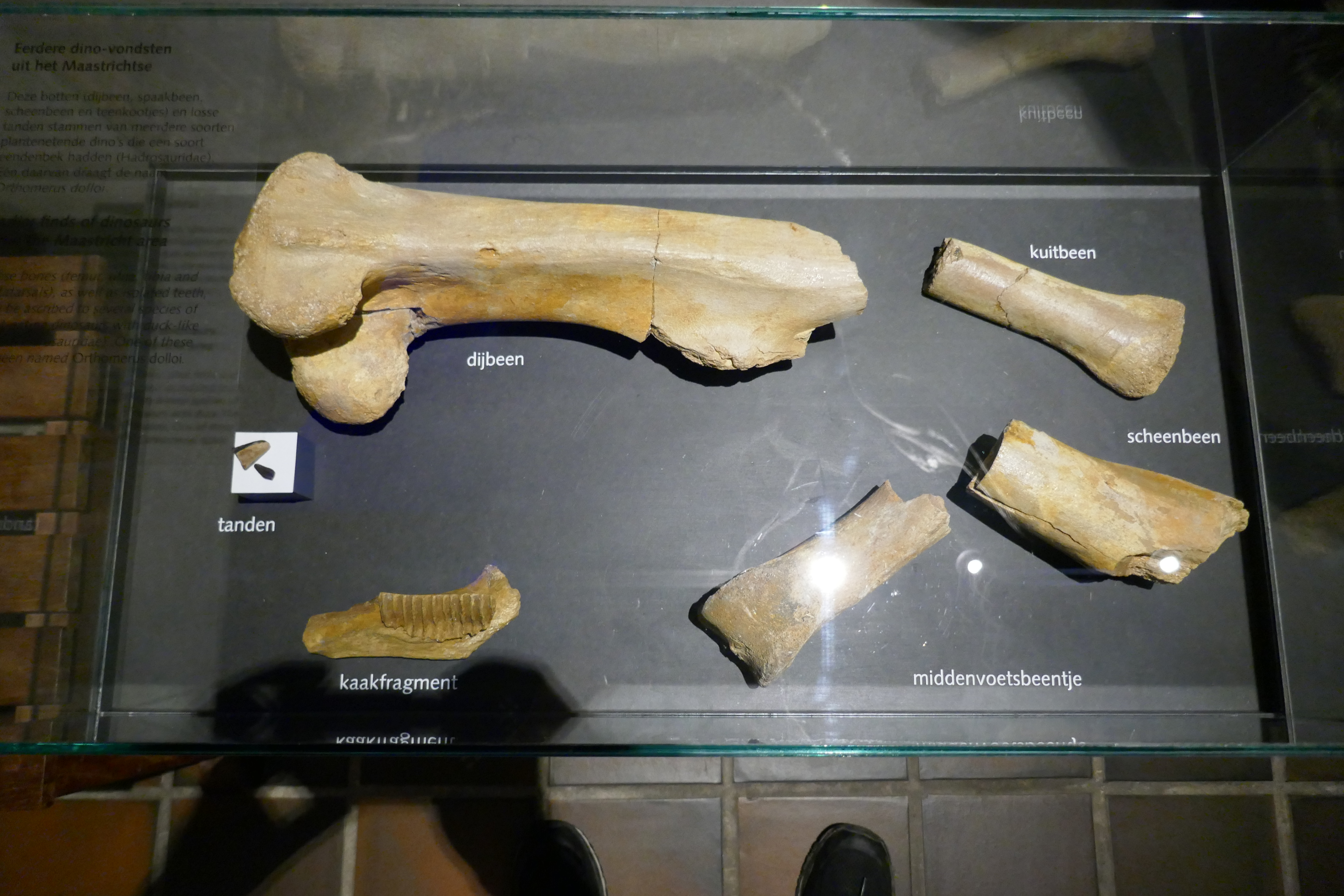 En de Nederlandse dinosaurus vondsten. Ondanks dat dat de kust tientallen kilometers verderop lag, zijn er ook in zee belande botten van een Hadrosaurus-achtige gevonden: