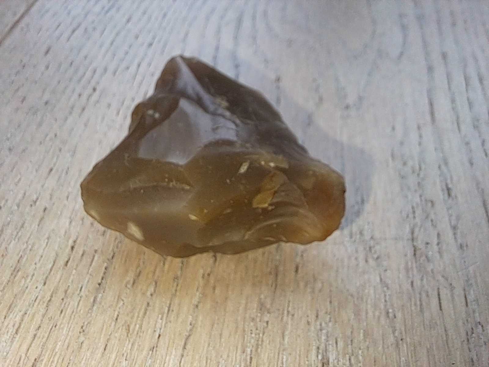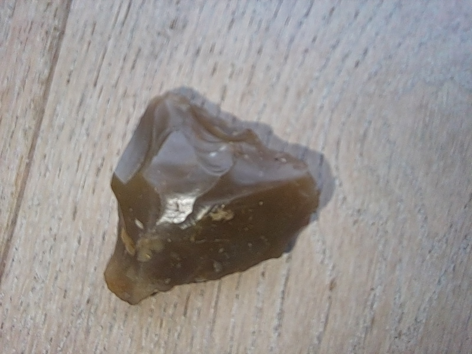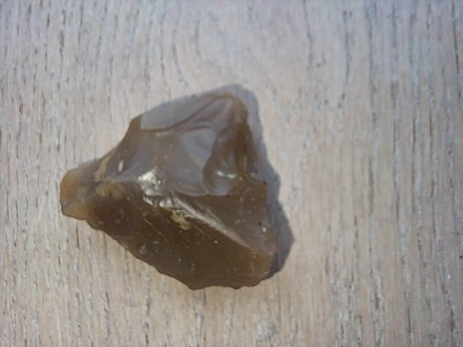 Het is een stukje vuursteen en ziet er (door mensen) bewerkt uit. Ik zal morgen mijn collega's van archeologie naar de foto's laten kijken. Misschien kunnen zij er wat zinnigs over zeggen.