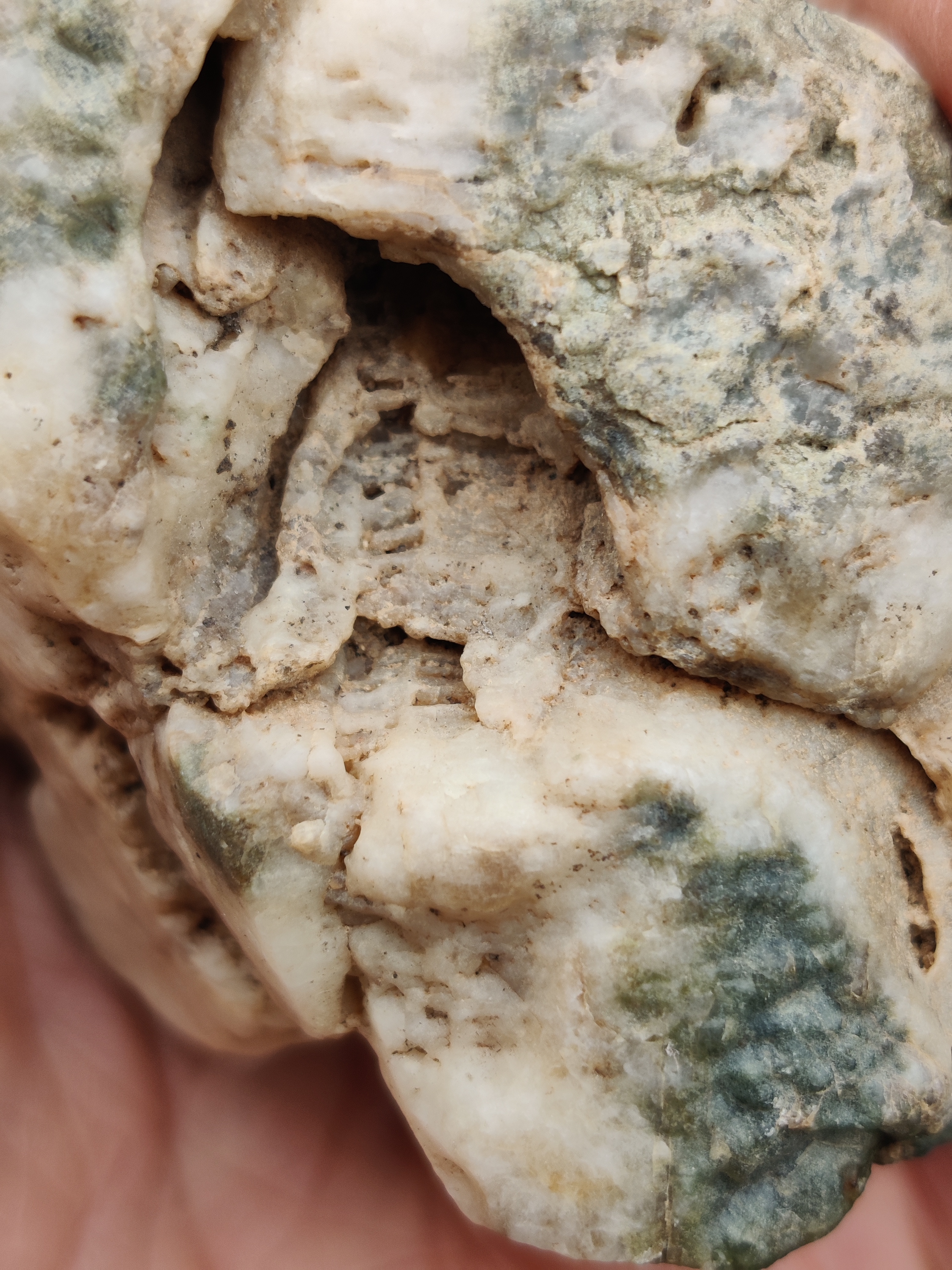 Wat het schelpje betreft: dat is inderdaad best recent, sowieso uit de familie Clausiliidae. Jammer dat de mondopening niet heel is, dat had de determinatie iets makkelijker gemaakt. Weet je nog ongeveer hoe lang het schelpje was? Ongeveer 10 mm of groter richting de 15 - 20 mm?