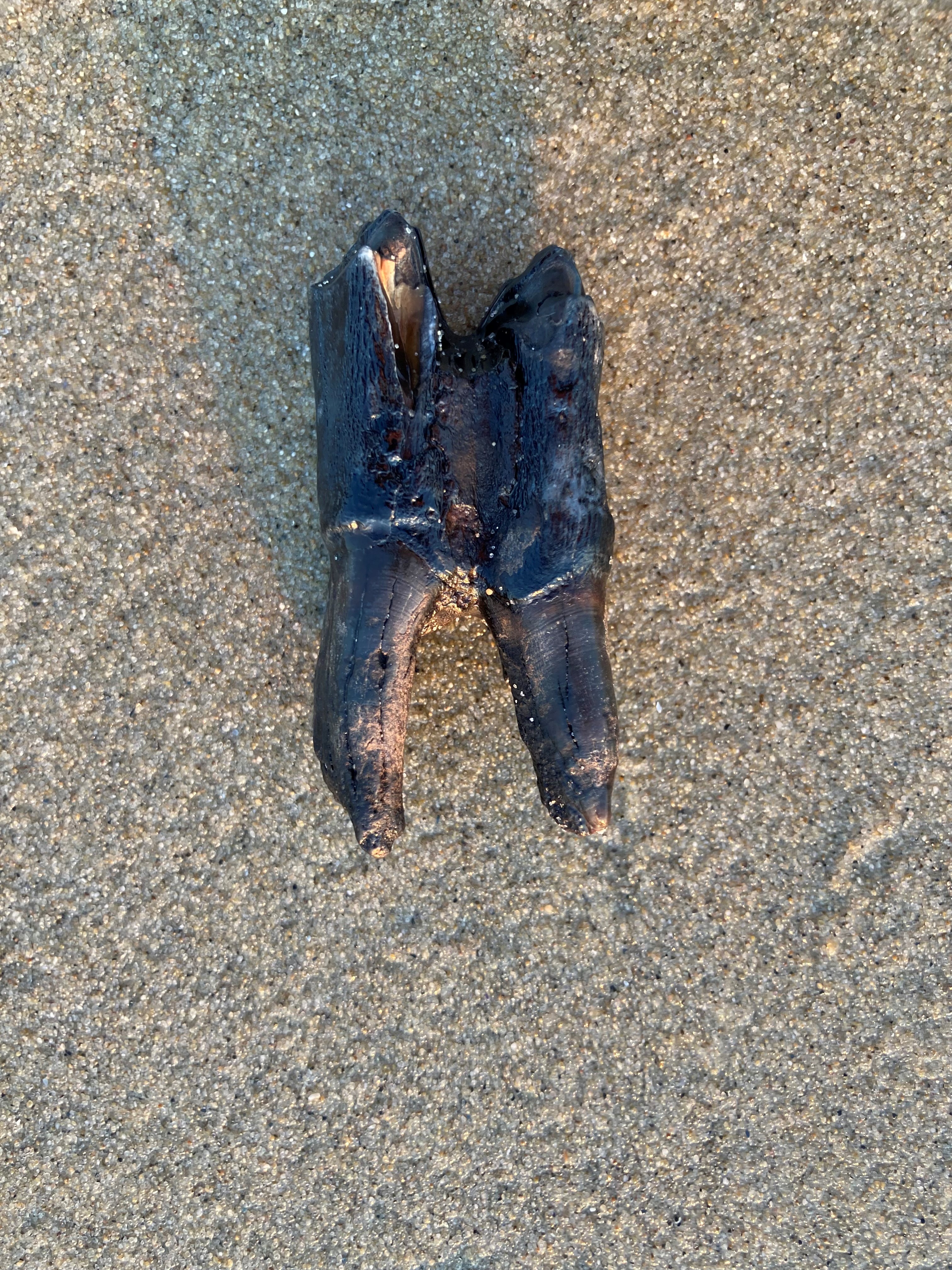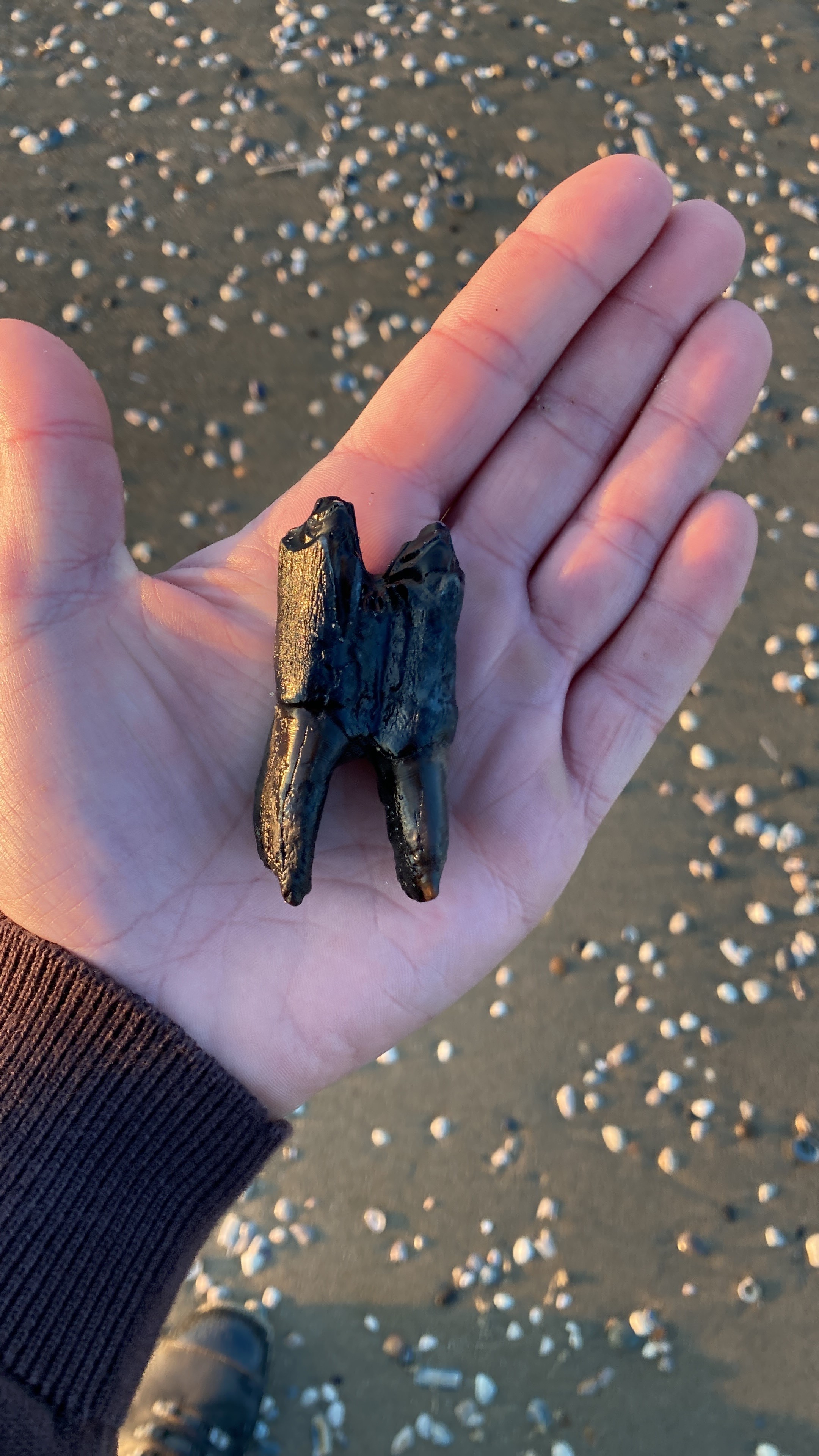 Tijdens dezelfde wandeling van het middenvoetsbeen vond ik ook deze kies op het strand van Texel.