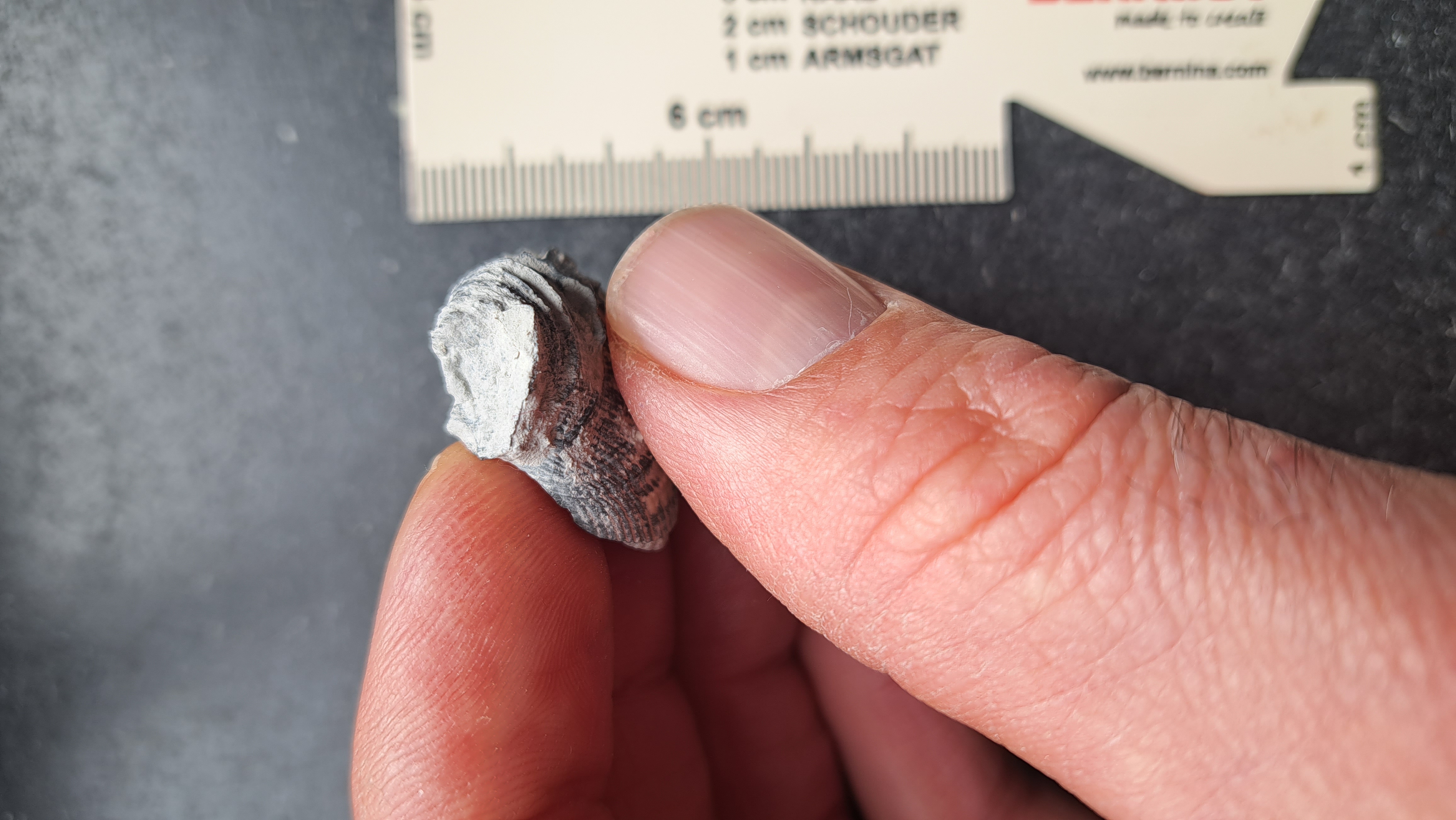 Hier is een vondst uit Cap-blanc-nez. Is er iemand die weet hoe dieze heet? Eerlijk gezegd weet ik ook niet zo zeker wat het juist is. Ik vermoed een brachiopode maar spreek me vooral tegen wanneer het er geen is