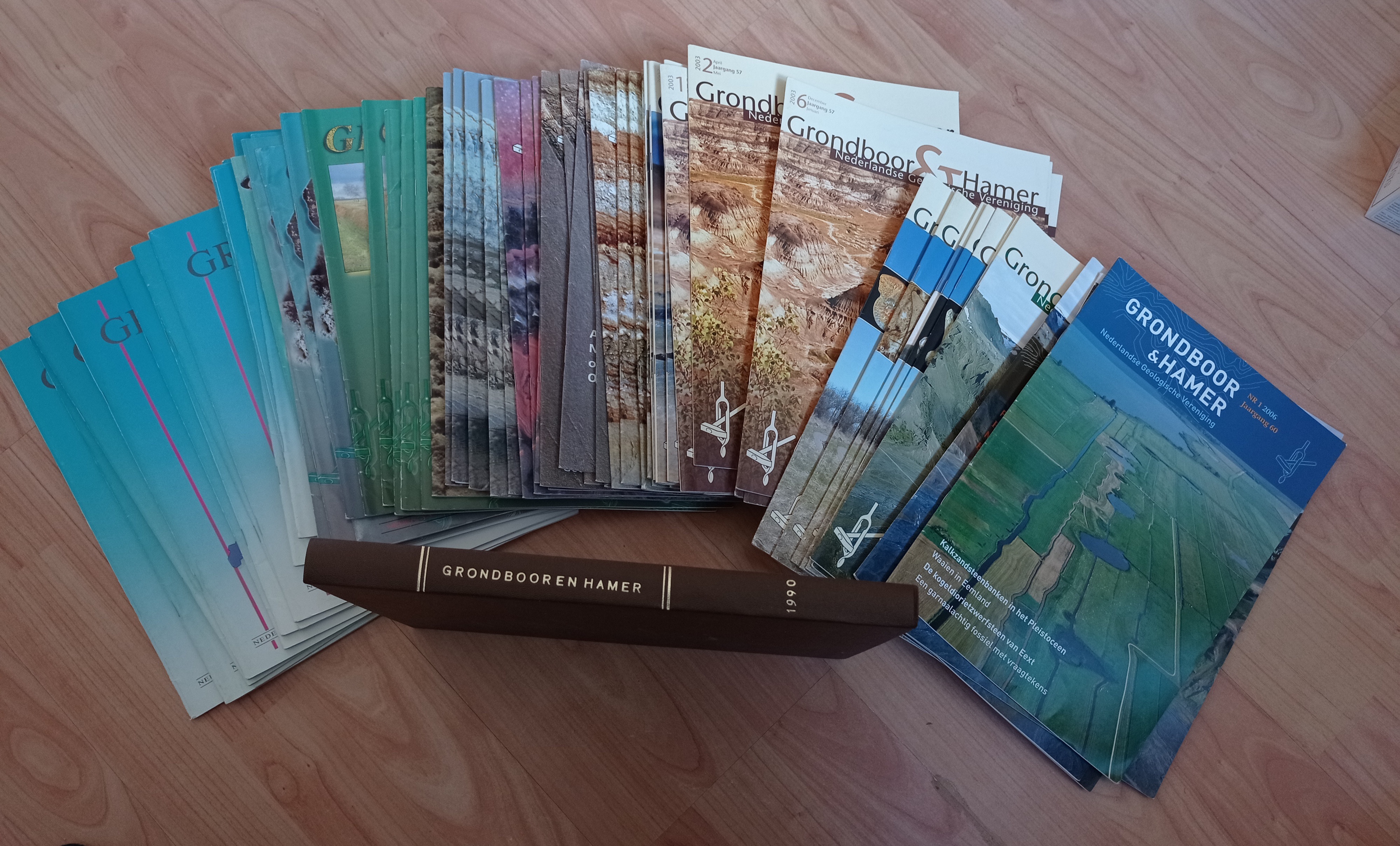 Bovendien een stapel Grondboor & Hamers (tijdschriften van de Nederlandse Geologische Vereniging) vanaf 1990 t/m 1995 compleet en van 1998 t/m 2006 nr. 1 vrijwel (op 2 nummers na) compleet. In totaal, samen 200 tijdschriften!
