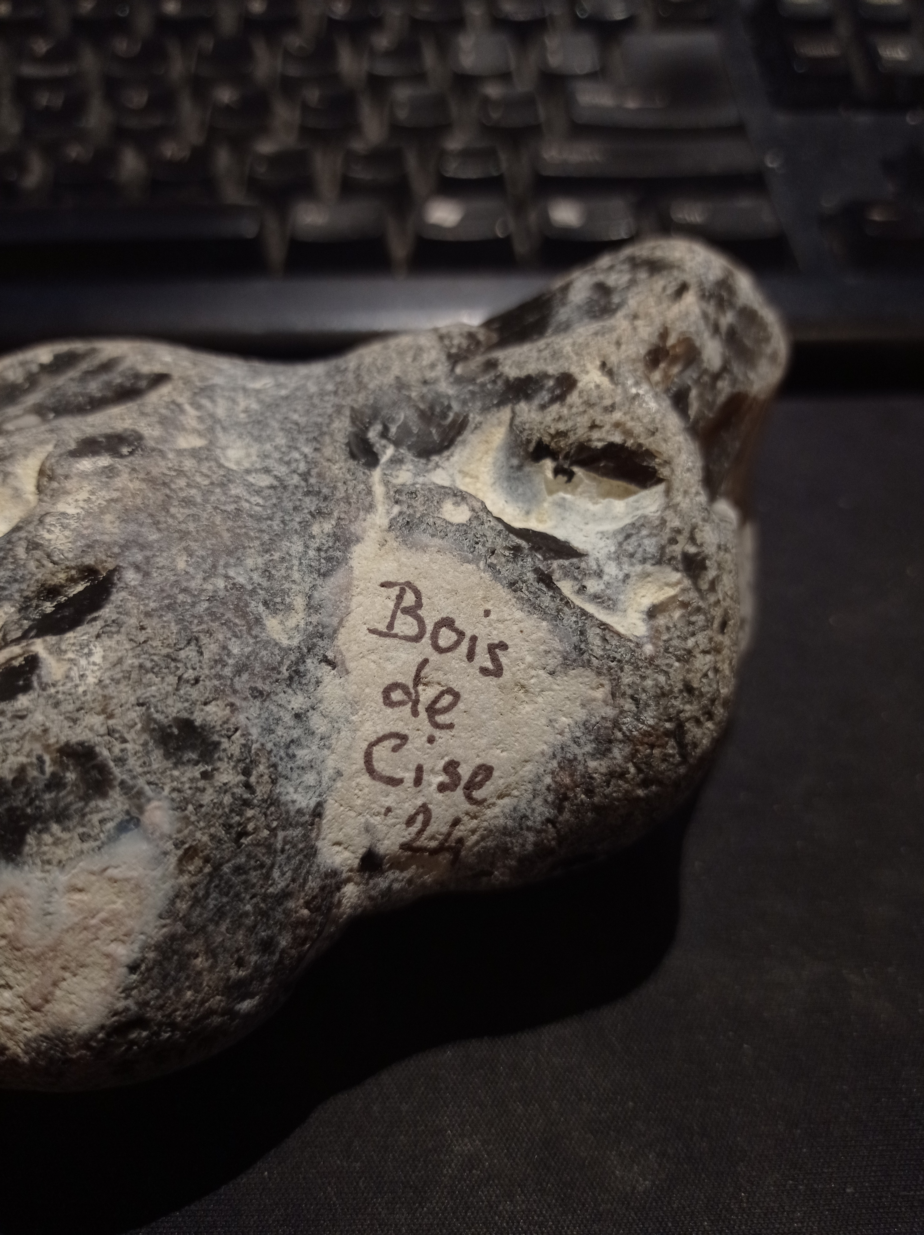De steen lag te wachten in mijn garage en heb ik vorige zomer samen met mijn kleinzoon gevonden bij Bois de Cise (bijna Normandië).