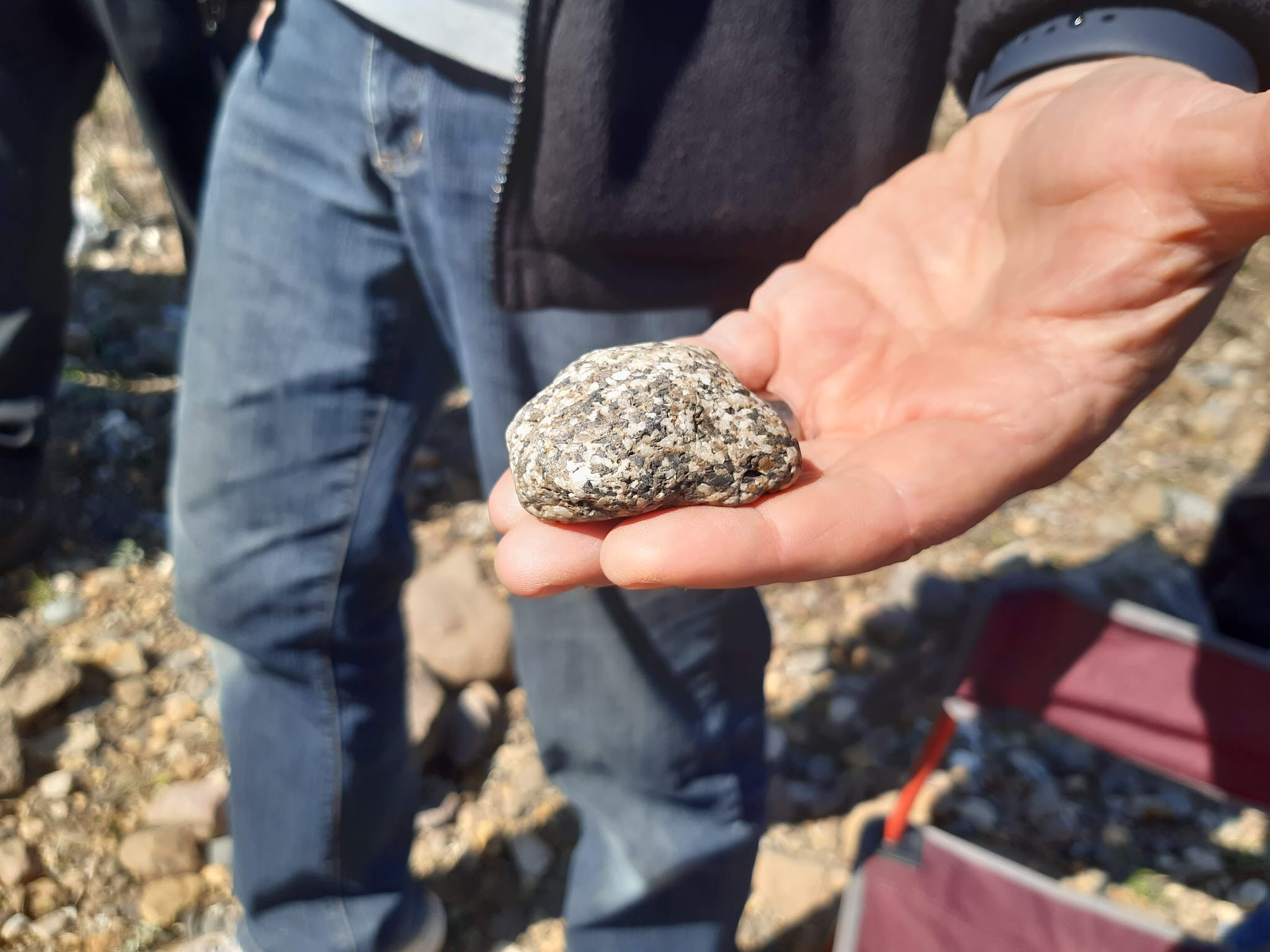 Daar werd er in het Maasgrind naar conglomeraten gezocht. Deze worden later nog onderzocht door er slijpplaatjes van te maken. Verschillende soorten werden netjes in hoopjes gesorteerd.