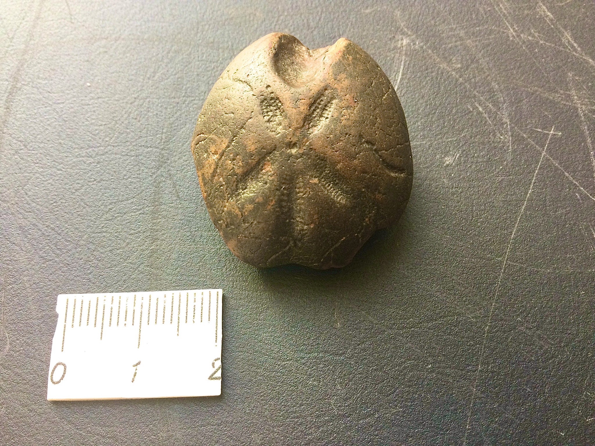 Een mooi zee egeltje (Micraster?) bestaande uit vuursteen. Wel een beetje beschadigd, maar toch het hoogtepunt van de dag voor mij. Verder werd er geen enkel fossiel gevonden, dus toch weer geluk gehad.