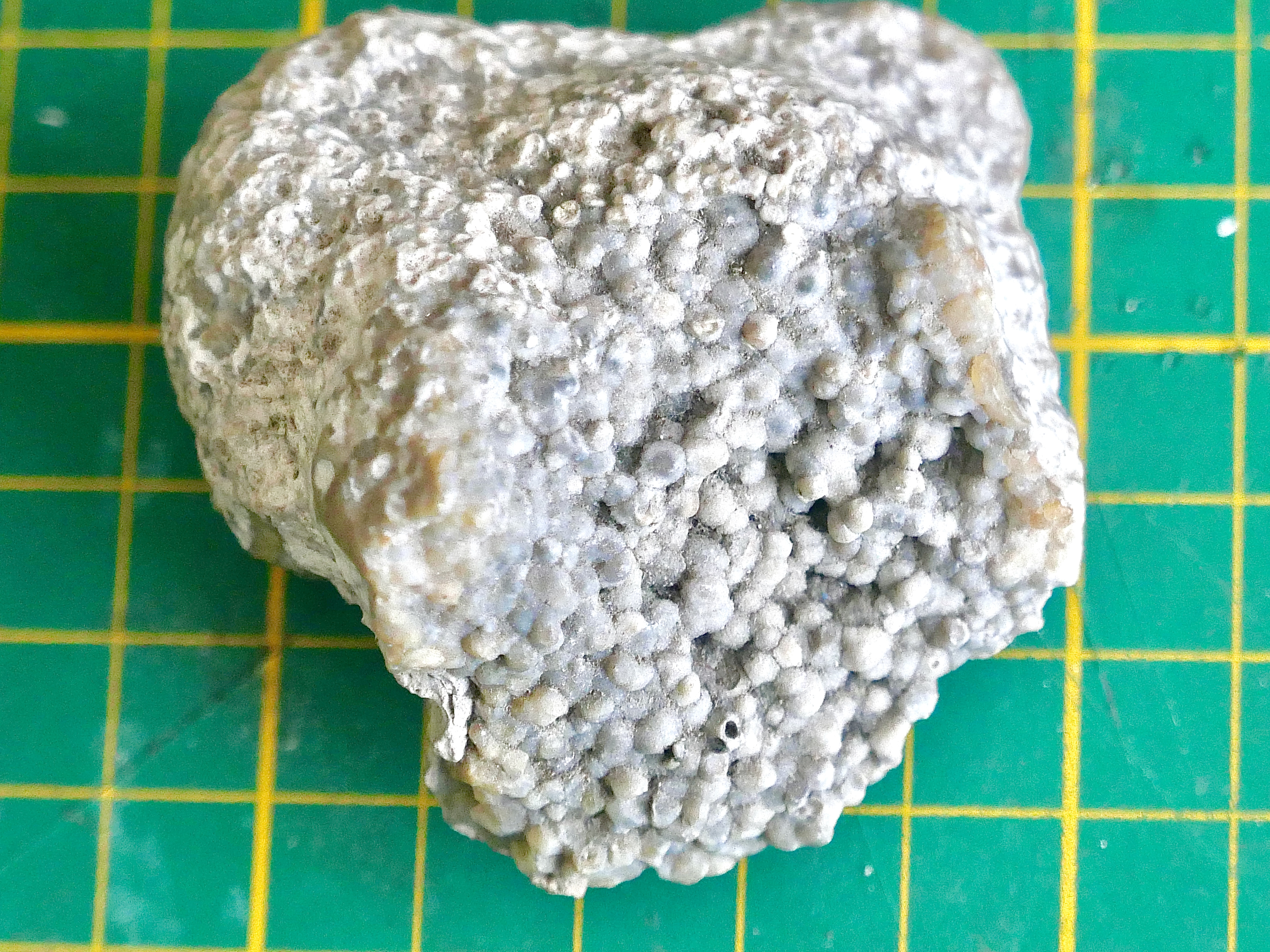 Lijkt eerder mineralogisch, misschien chalcedoon-bolletjes / ook i.v.m. de blauwige kleur.