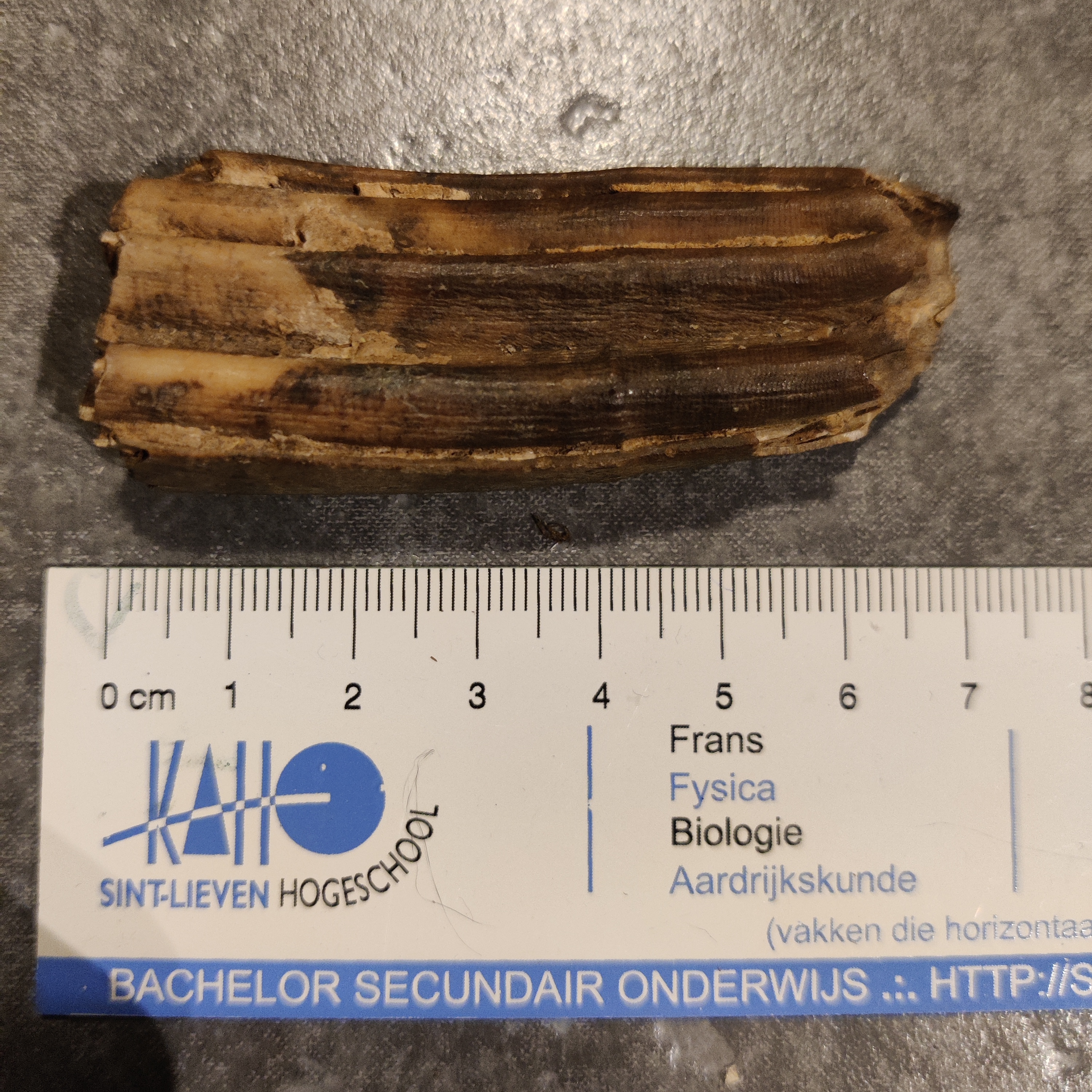 Afgelopen weekend zijn we gaan wandelen in omgeving Mullerthal, Luxemburg. Daar heeft mijn zoontje dit fossiel gevonden in een rivierbedding. Iemand een idee? Ik dacht aan een plant (paardenstaart). Alvast bedankt voor jullie hulp.