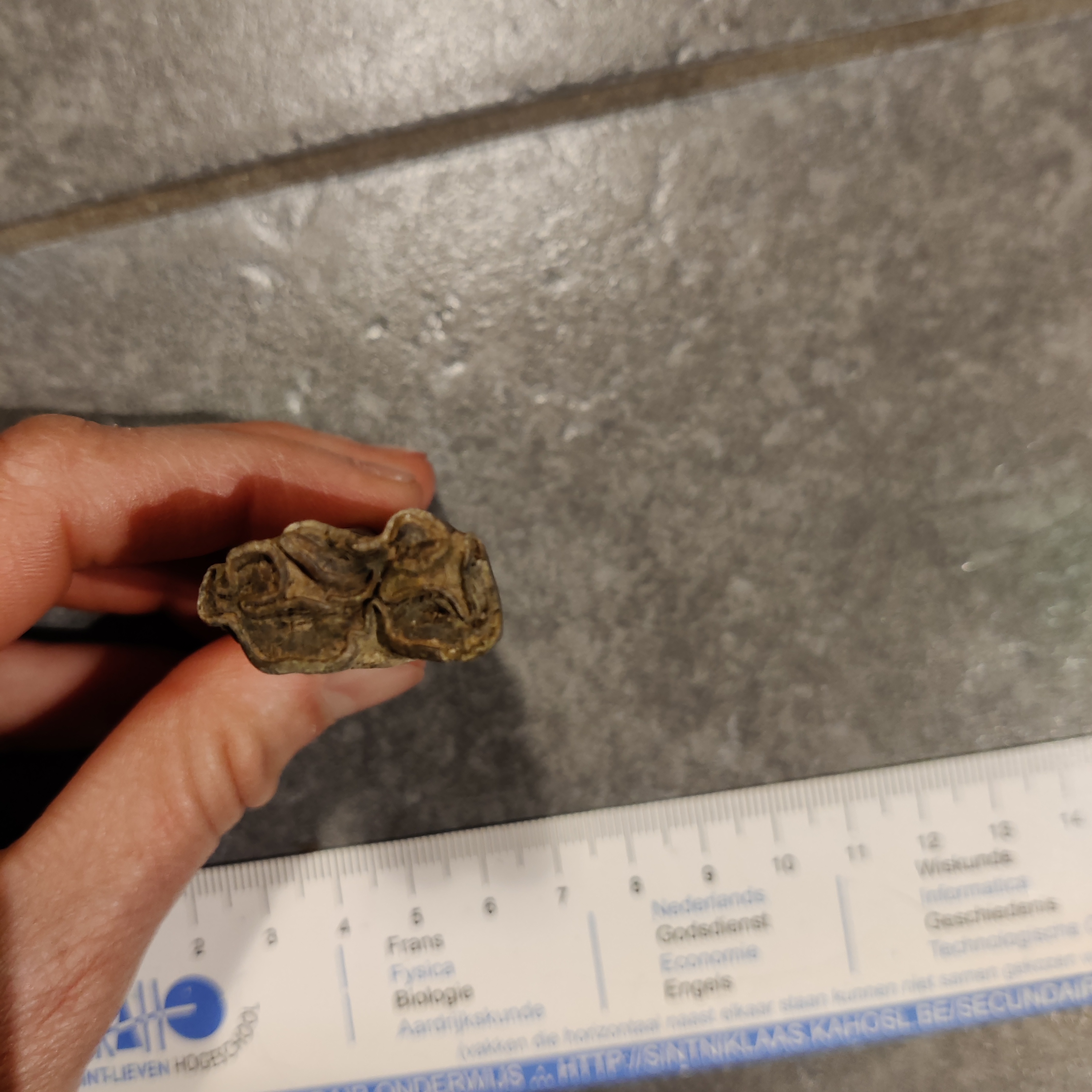 Ik durf, wanneer ik de het kauwvlak zie, niet met zekerheid te zeggen of het een fossiel is. Maar een mooie aanwinst voor de vitrine.