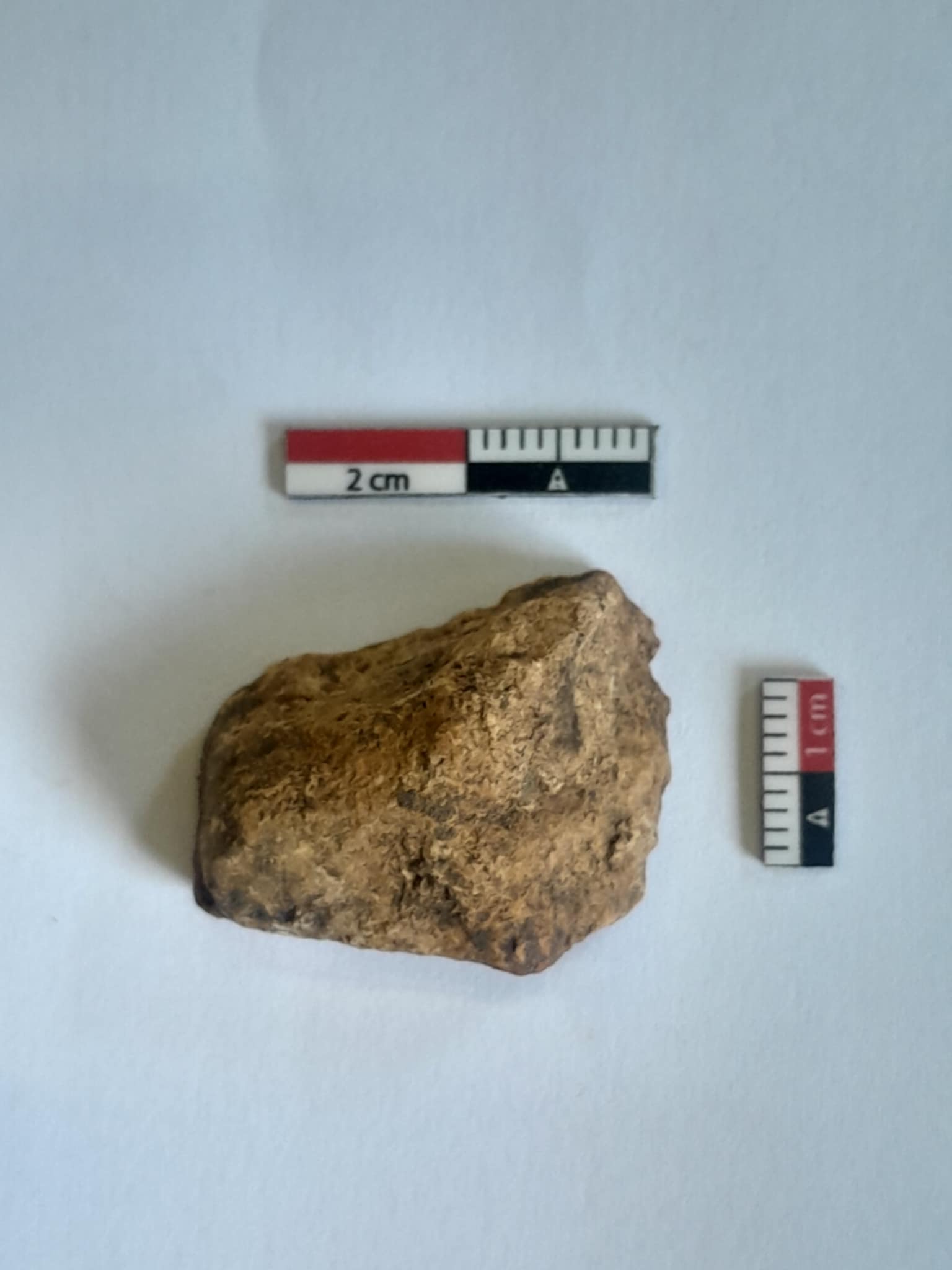 Op de archeologische site is veel mergel aanwezig, ik vermoed dan ook dat het brokje met de mergel mee vervoerd werd.
