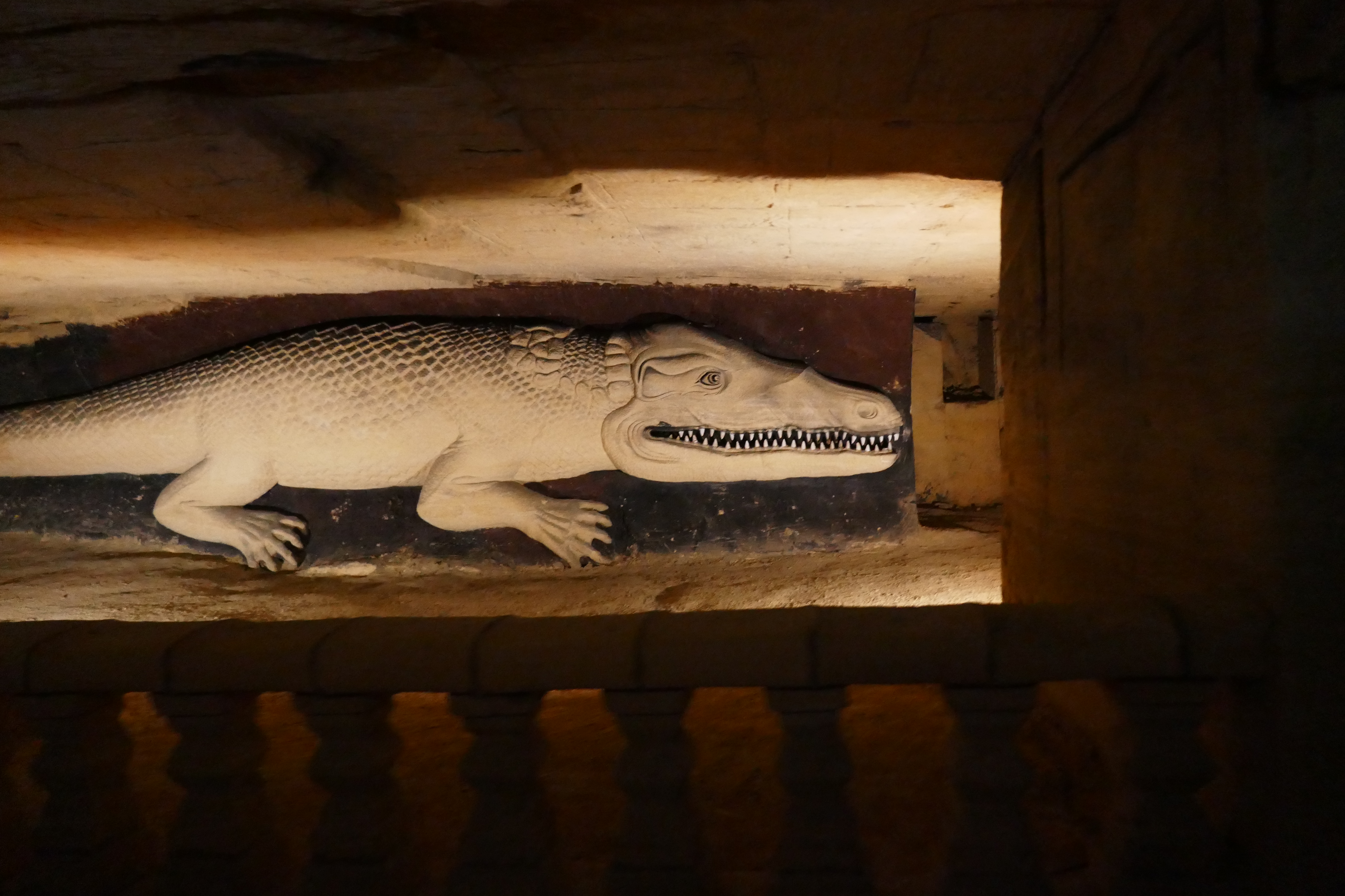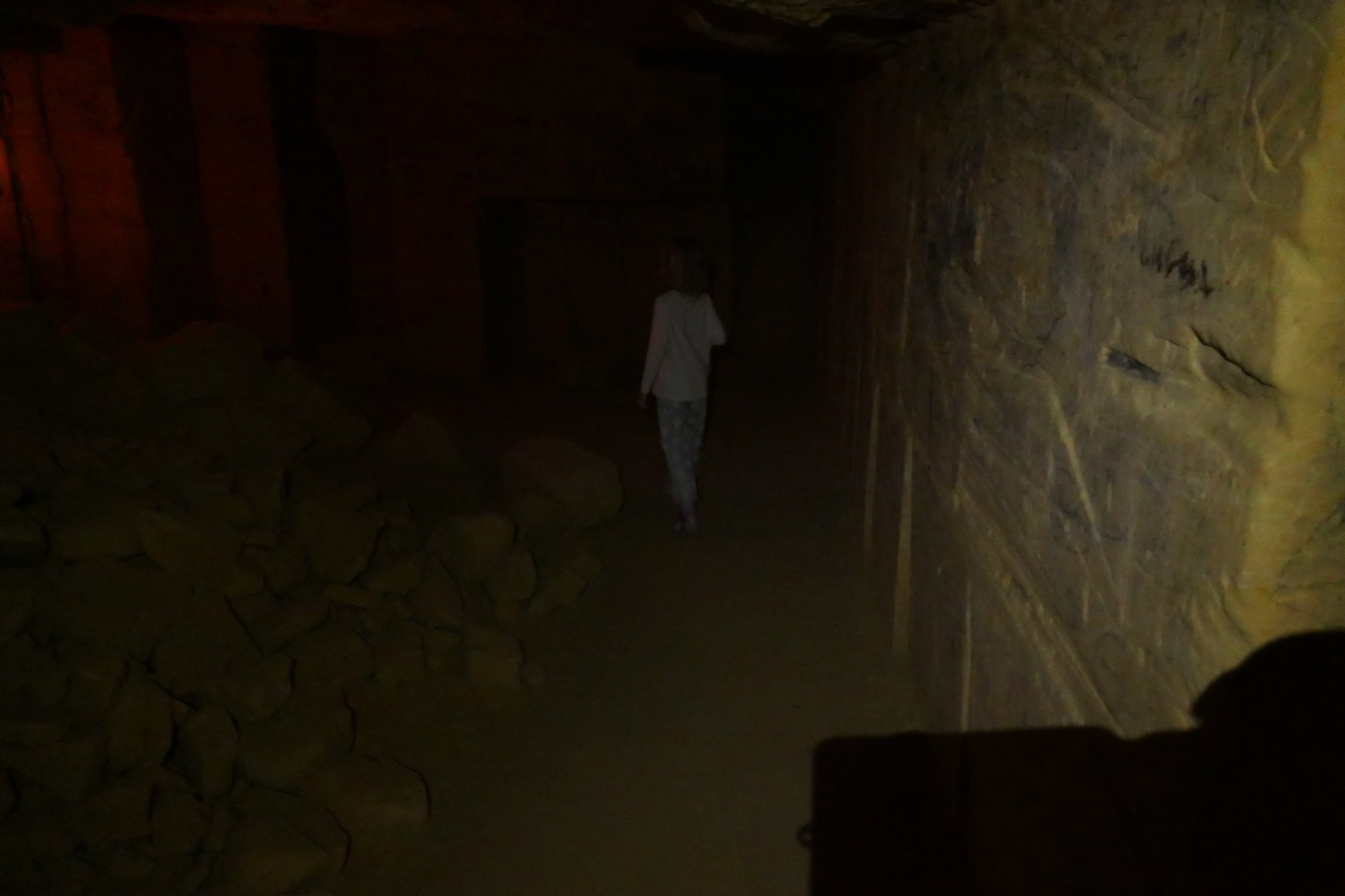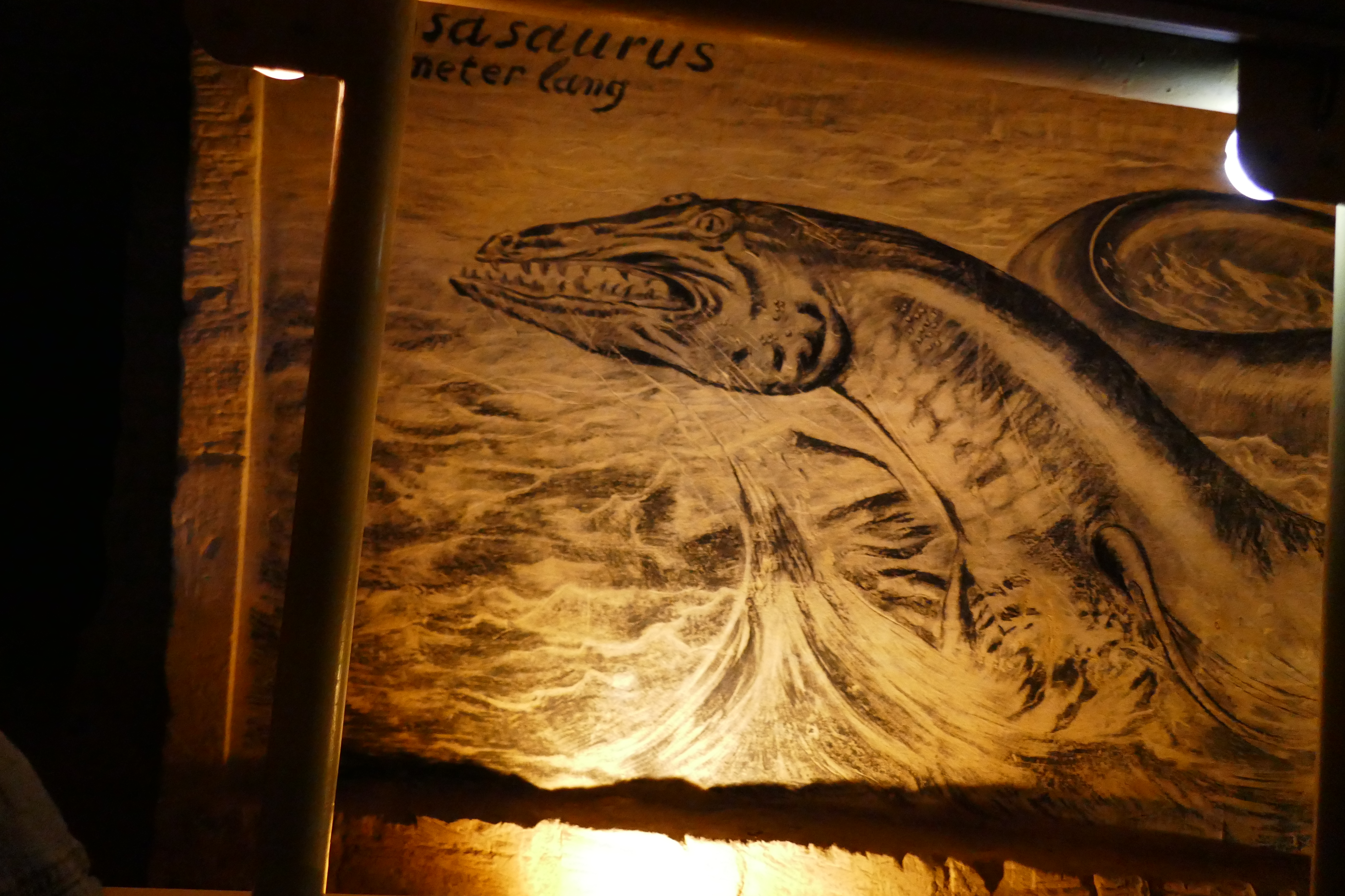 Het donkere gedeelte achterin geeft natuurlijk de meest echte ervaring van een mergelgroeve. Gelukkig vond mijn dochter dat ook niet eng.