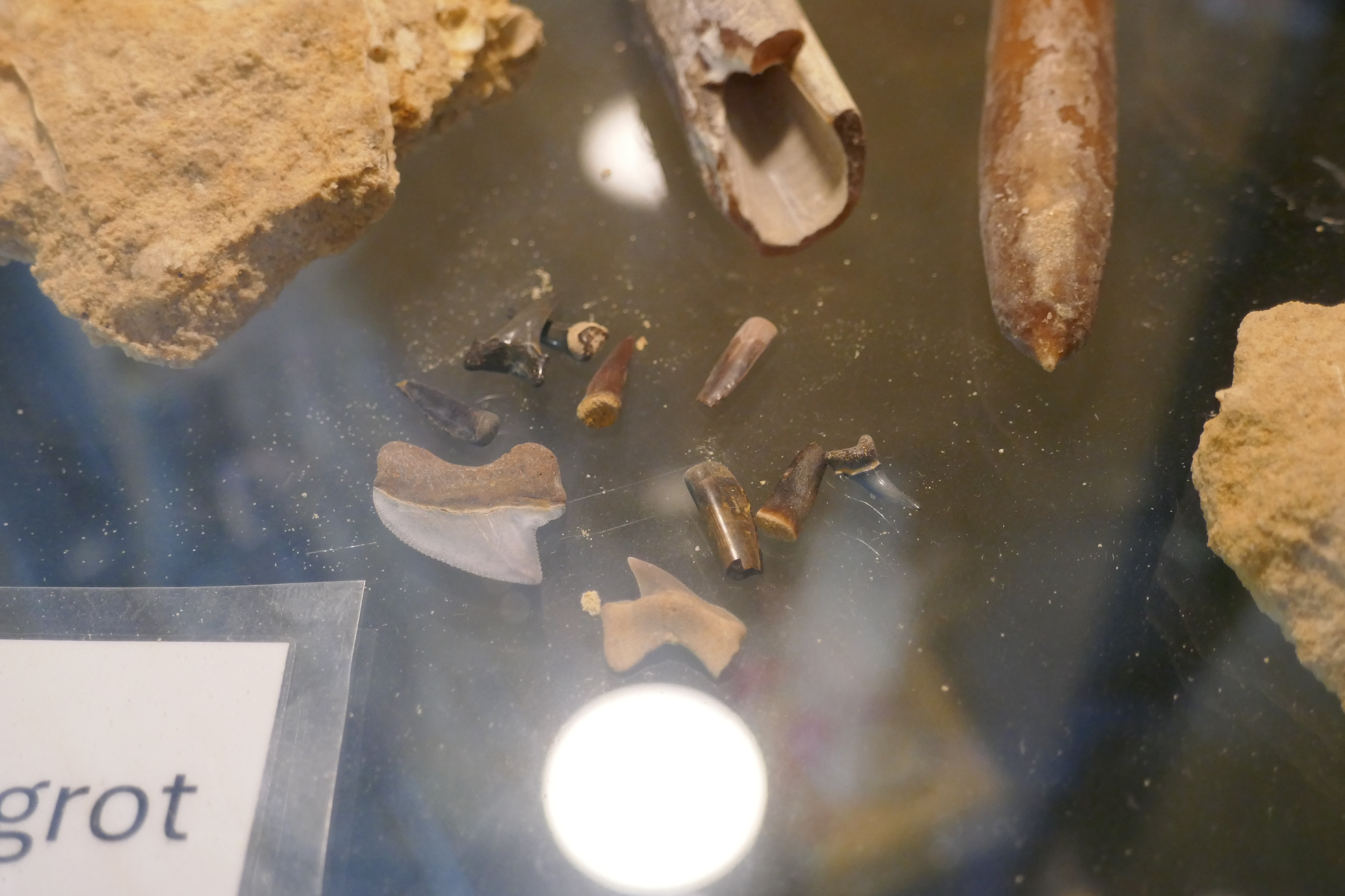 Leuk om een kleine selectie fossielen te zien bij de ingang, die in de groeve zijn gevonden: