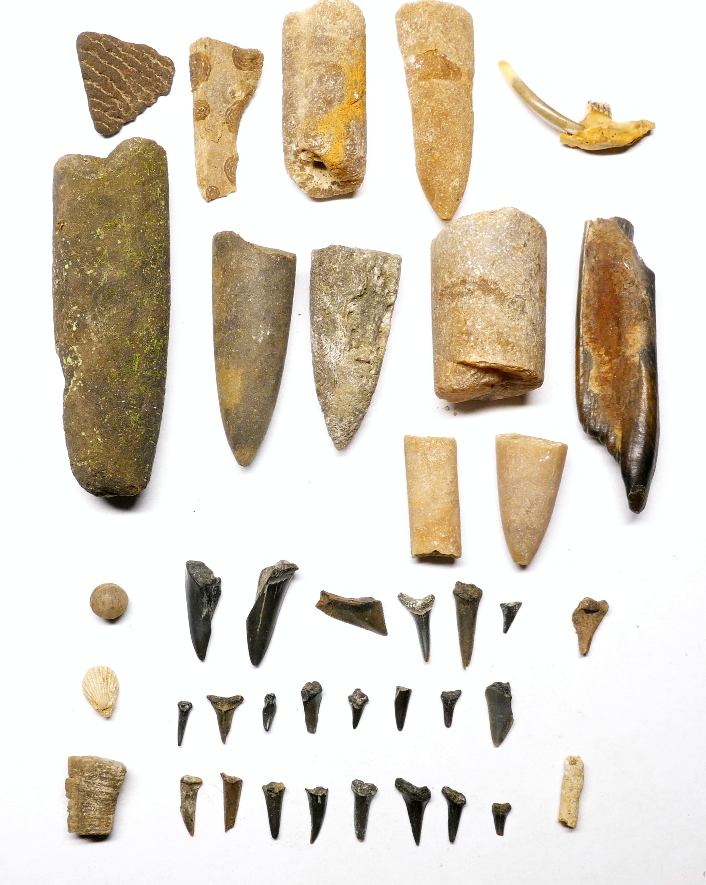 De belemnieten hebben interessante sporen van andere organismes, zoals kokerwormen, doorboringen etc. Het laat zien dat ze wel een tijdje op de zeebodem hebben gelegen voor ze werden bedekt: