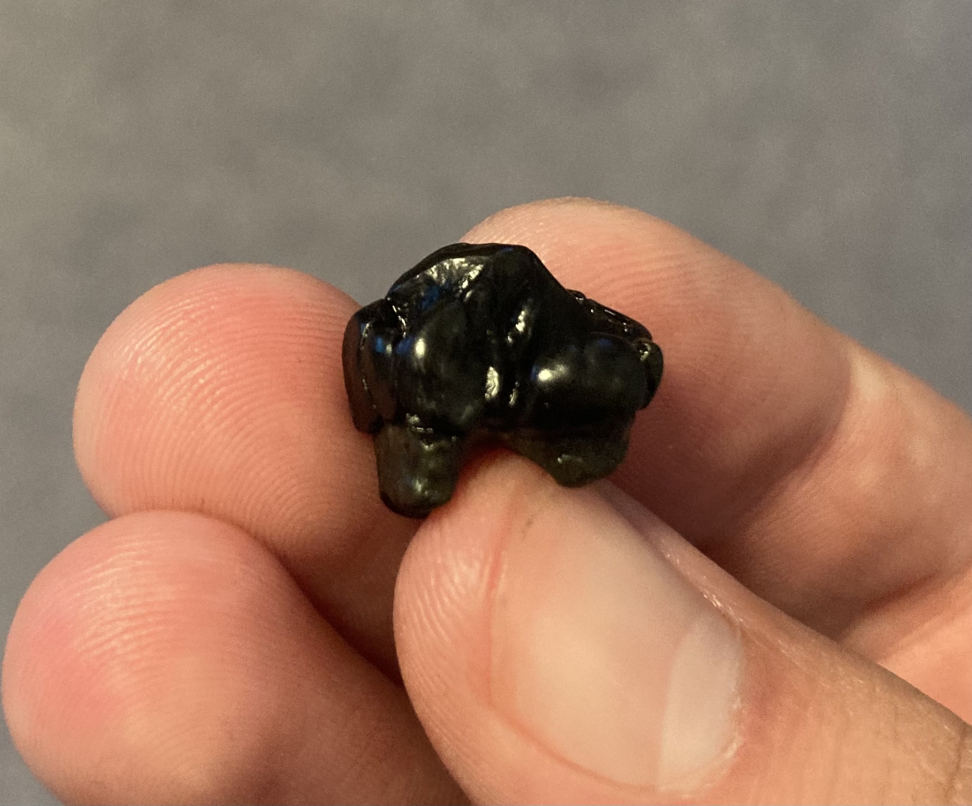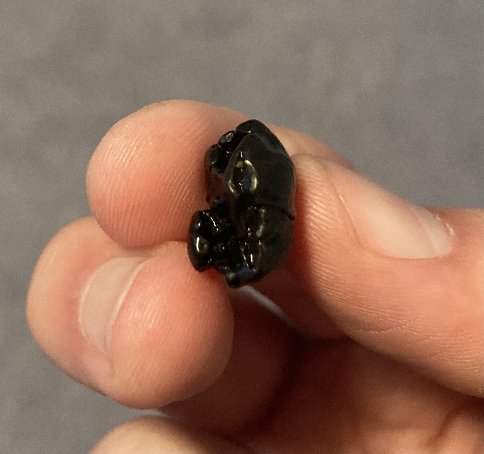 Ik zal morgen wat betere foto’s maken, maar het is moeilijk om het kiesje scherp op beeld te krijgen omdat het een best klein kiesje is. Ik zat zelf aan zwijn te denken vanwege de knobbels op de kies