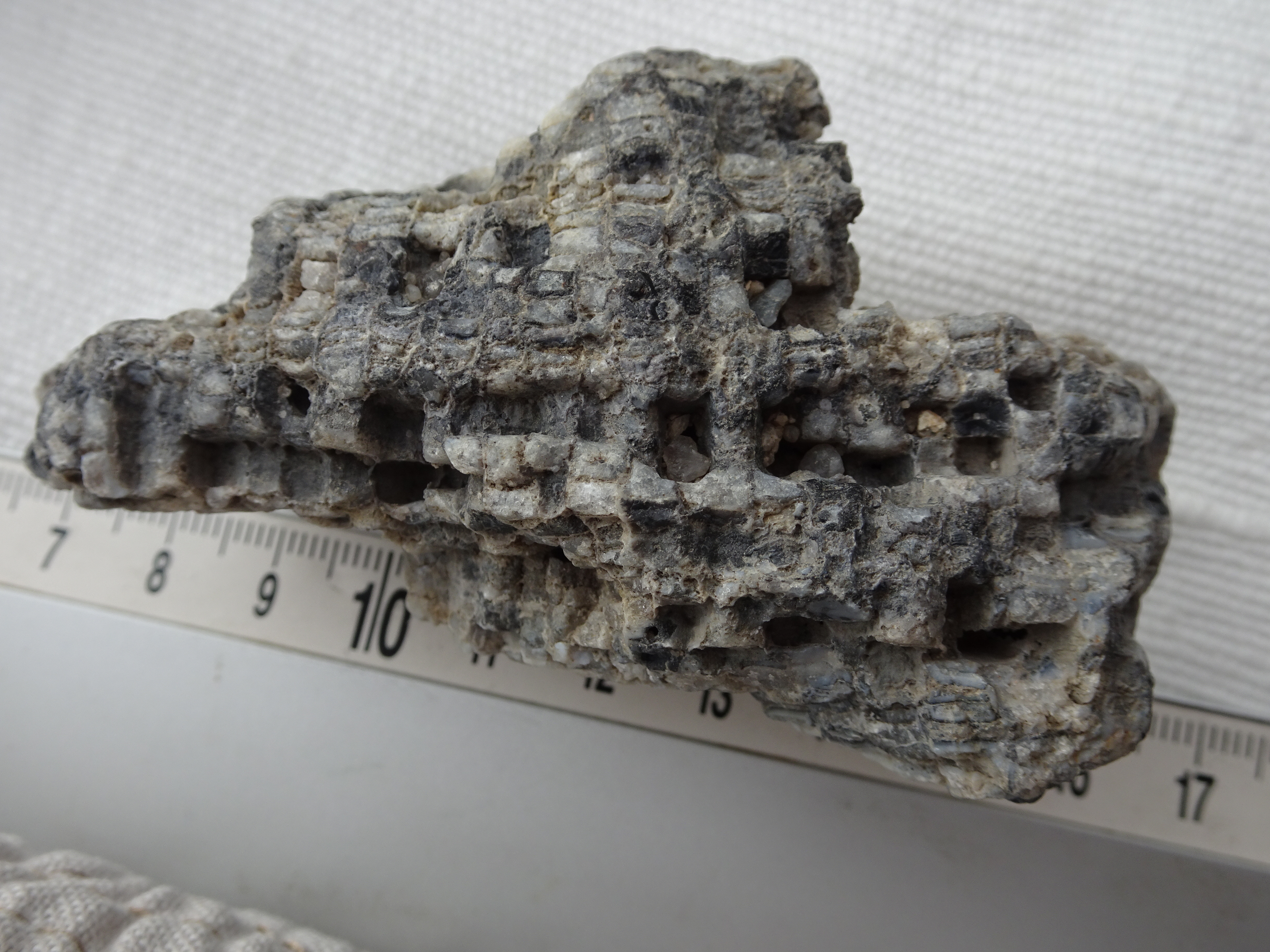 Ik heb in de loop van de jaren aardig wat exemplaren van de paleozoische koraal Favosites gevonden, plaatseigen maar ook als zwerfsteen. Meestal lag de doorsnede van de corallieten tussen 1,5 en 3 mm. Maar afgelopen voorjaar vond ik in een zandzuigerij in Kloosterhaar een opvallend veel grover exemplaar met corallieten van 4 a 5 mm doorsnede, zie bijgaande foto's. Is dat een speciale soort, of hoort dit tot de normale variatie?