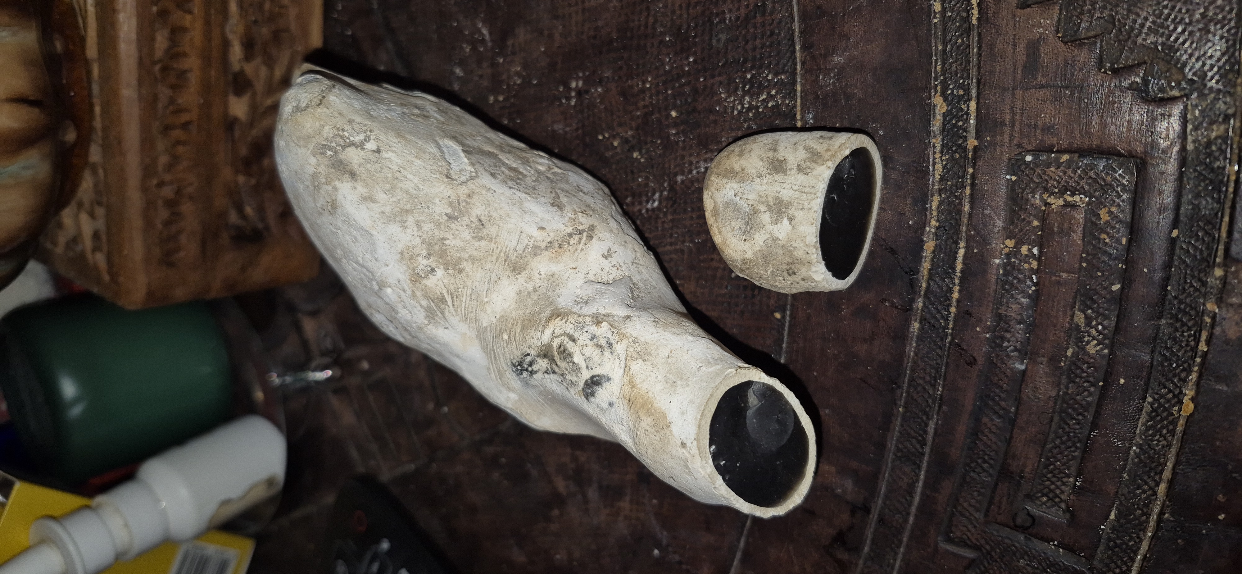 Vond dit in t park in Haarlem, , ik gaf een tikje erop en een stukje brak af , wat resulteerde in een zwarte binnenkant met een witte buitenrand die perfecte afmetingen heeft als rand , het. Object is erg zwaar voor zijn formaat, weegt; 548 gram en is een vuist groot de binnenkant is een soort gesteente lijkt marmerachtig qua structuur en is zwart van kleur de buitenrand lijkt poreus te zijn en vormt een exact 1 mm brede rand om het zwarte gesteente heen dus de zwarte massa word door wit poreus spul met een 1 mm dikte ingekapseld